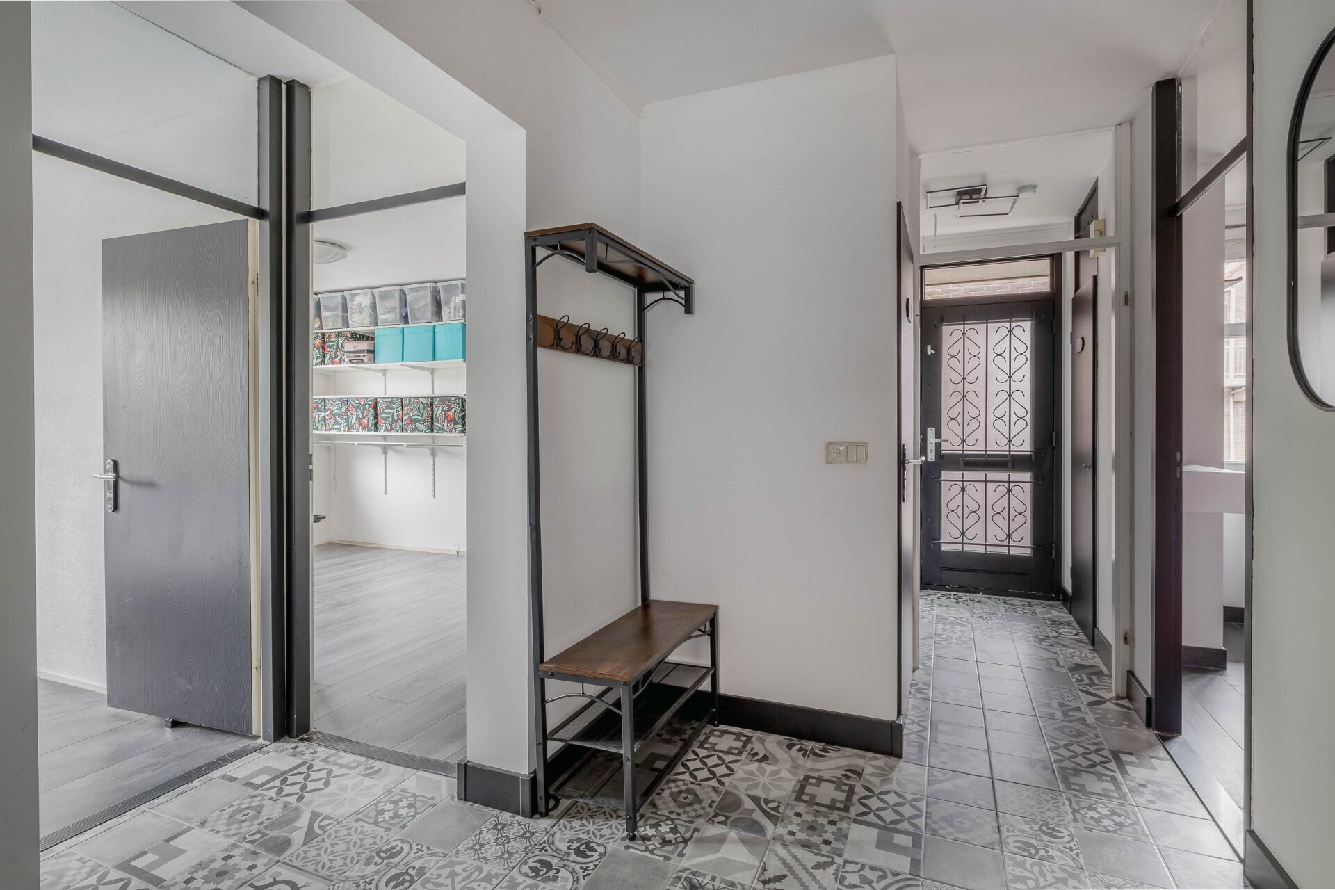 Entree op de 1e etage; gang, voorzien van modern toilet met fontein, meterkast (volledig vernieuwd in 2023) en kast met opstelplaats voor wasmachine en droger; slaapkamer 1 aan de voorzijde; slaapkamer 2 aan de voorzijde; moderne badkamer, voorzien van inloopdouche, wastafelmeubel en prachtige natuurstenen vloer; slaapkamer 3; ruime woon- eetkamer, voorzien van moderne open keuken met magnetron, vaatwasser, hete luchtoven, inductiekookplaat en afzuigkap; master bedroom, voorzien van ligbad, prachtige natuurstenen vloer en toegang tot het zonneterras; berging in de onderbouw.