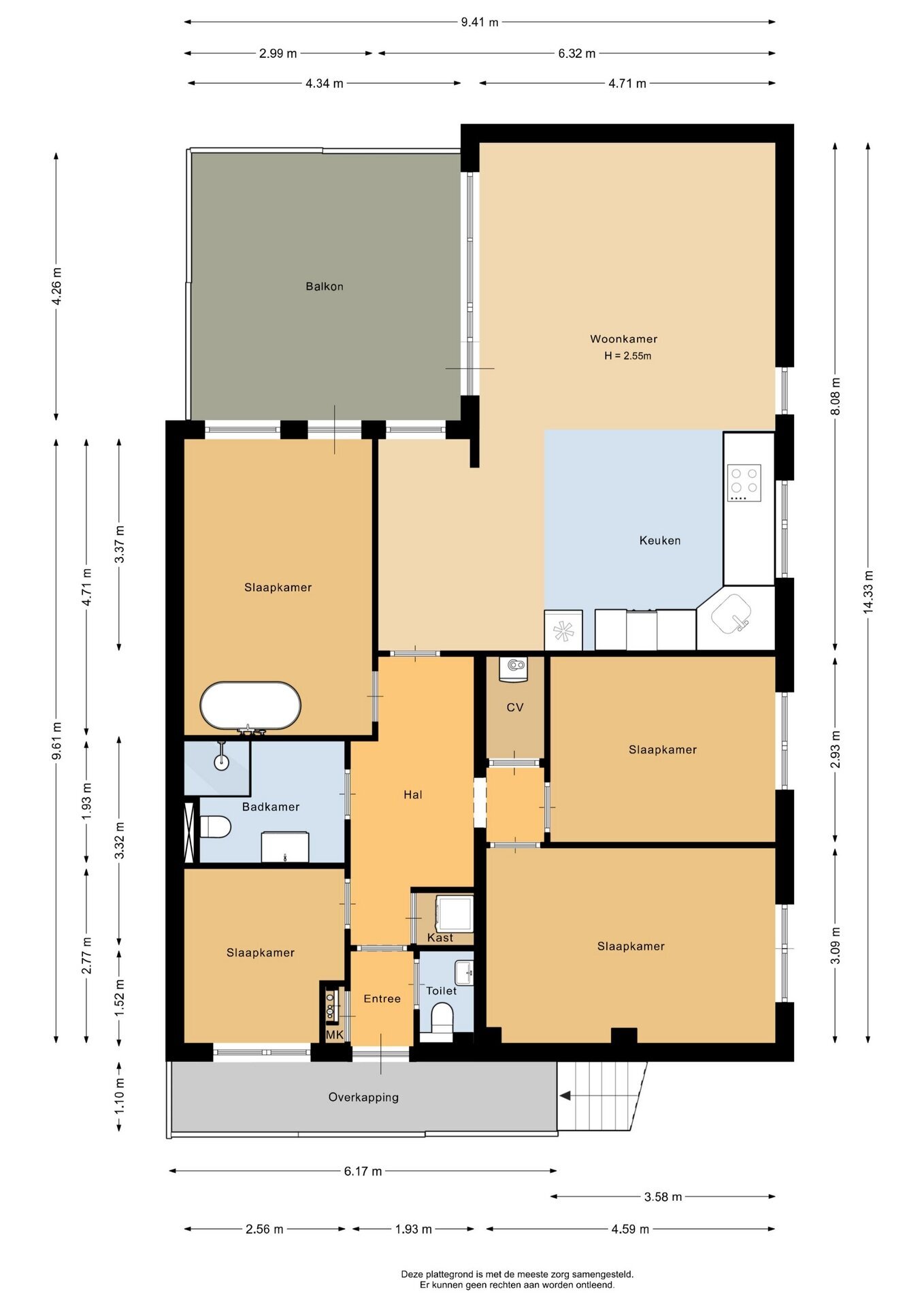 “Deze informatie is door ons met de nodige zorgvuldigheid samengesteld. Onzerzijds wordt echter geen enkele aansprakelijkheid aanvaard voor enige onvolledigheid, onjuistheid of anderszins, dan wel de gevolgen daarvan. Alle opgegeven maten en oppervlakten zijn indicatief.”