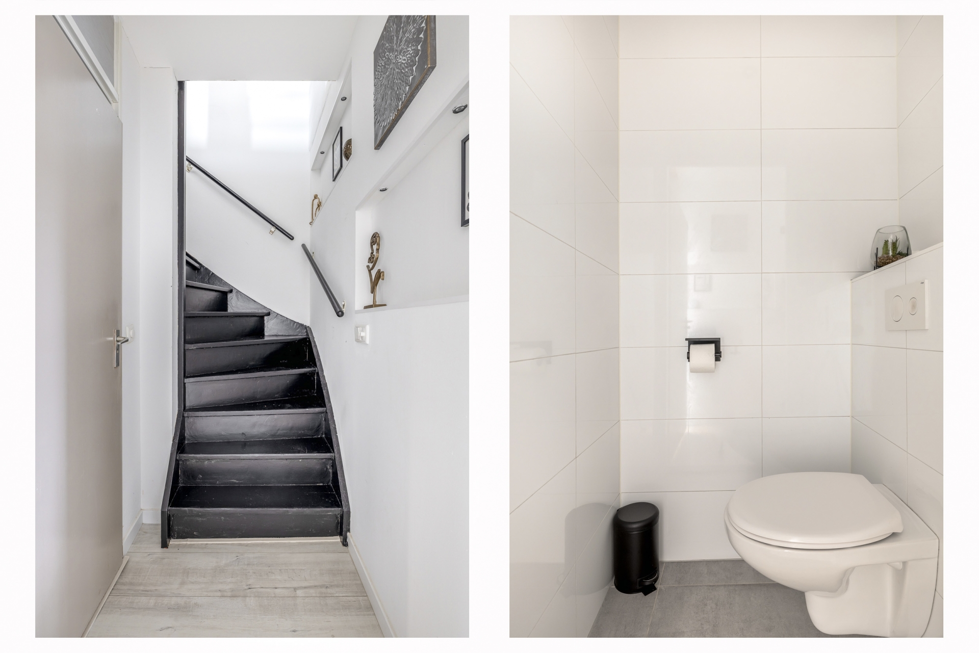 Naast de keuken is er in de hal een modern toilet, en via de trap bereik je de eerste verdieping.