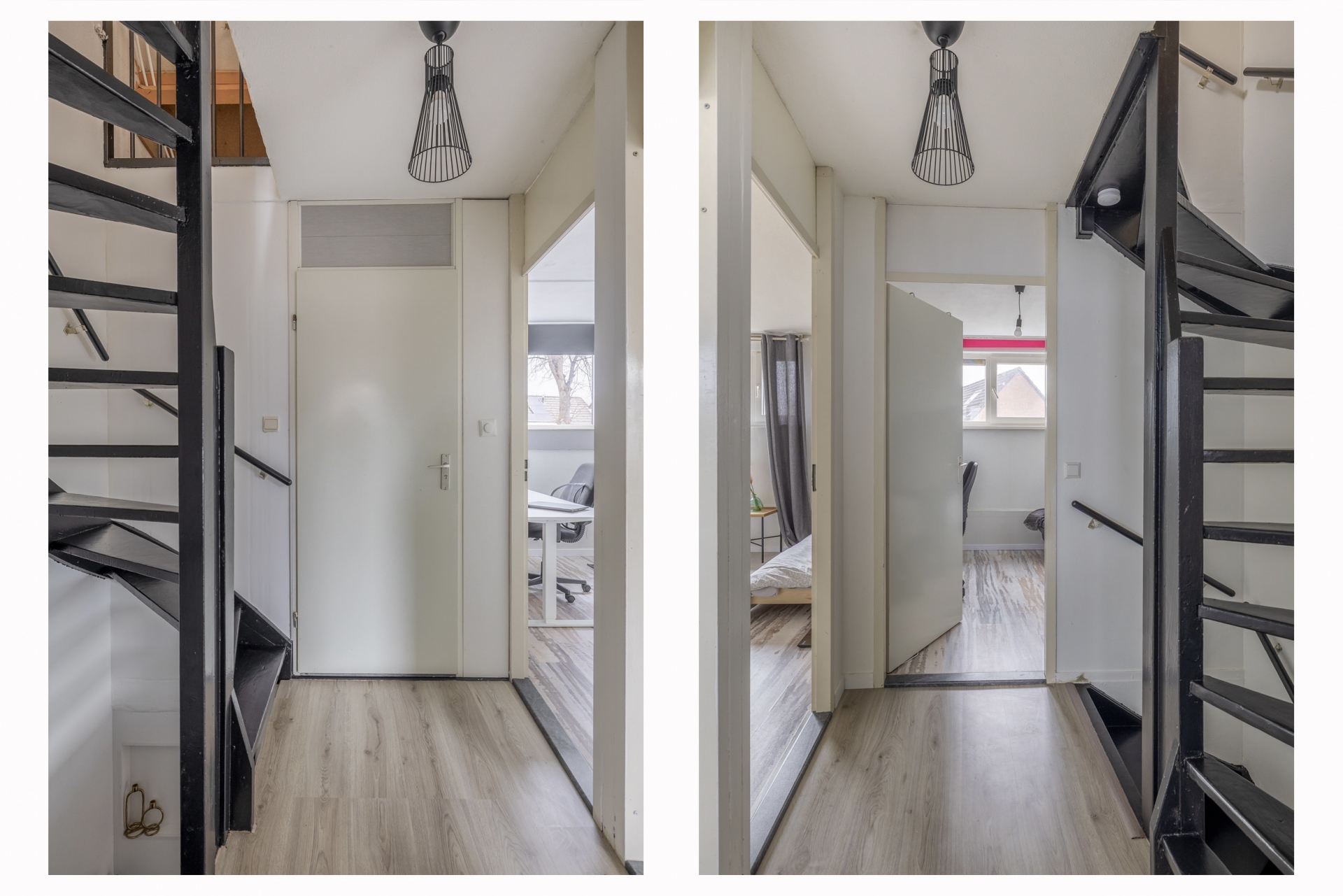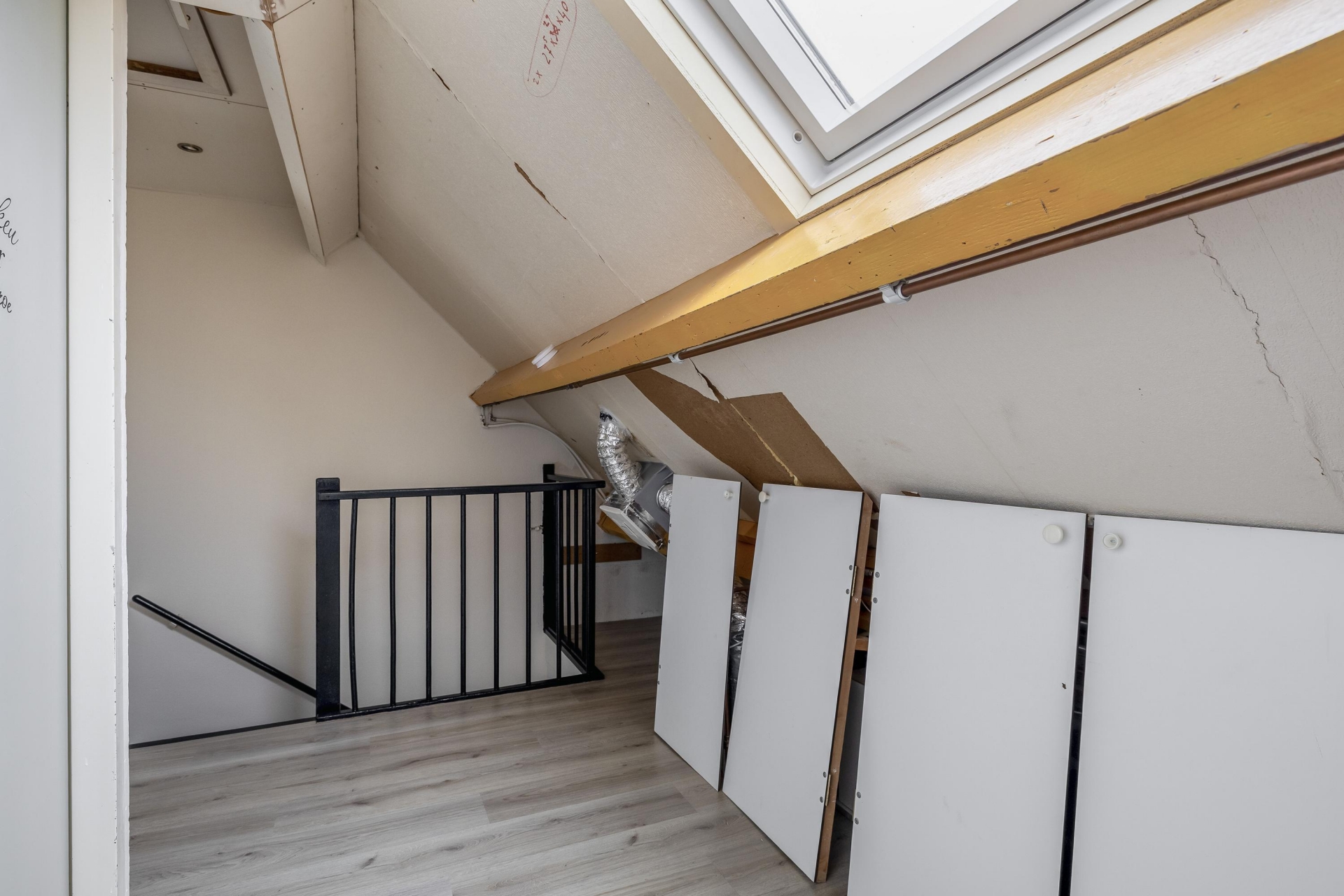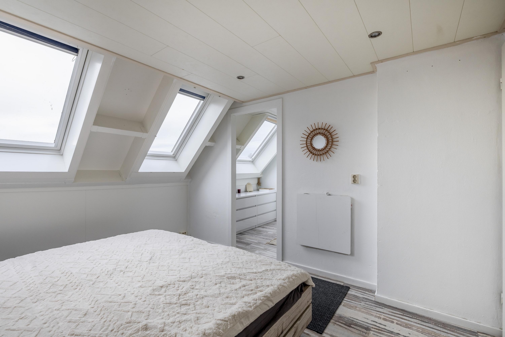 De tweede verdieping is ruim opgezet en v.v. vernieuwde Velux dakramen. Hier vind je nog twee extra slaapkamers. De tweede slaapkamers is thans in gebruik als walk-in closet. Tevens is er op de overloop een praktische wasruimte met de opstelling cv combiketel Remeha HR. Ook deze verdieping is fraai afgewerkt met een lichte vloer, strak plafond en bergruimte onder de schuine kap. De tweed