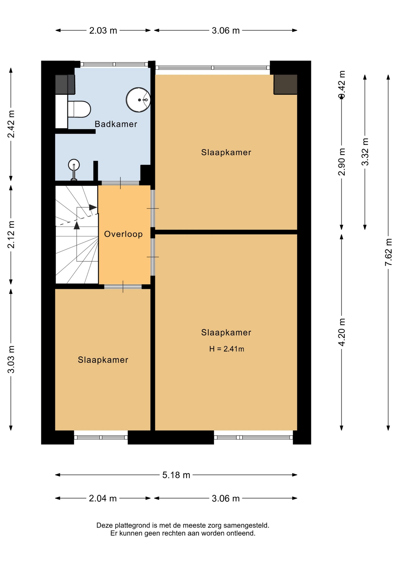 Op de eerste verdieping vind je drie slaapkamers in verschillende formaten, waarbij de grootste kamer zich aan de achterzijde bevindt en is voorzien van een dakkapel over de volle breedte van de woning. Alle ruimtes zijn netjes afgewerkt, en dankzij de kunststof kozijnen met draai-/kiepramen is het onderhoud minimaal. De badkamer is, net als de keuken, vernieuwd in 2022 en voorzien van een inloopdouche, tweede toilet en wastafelmeubel.