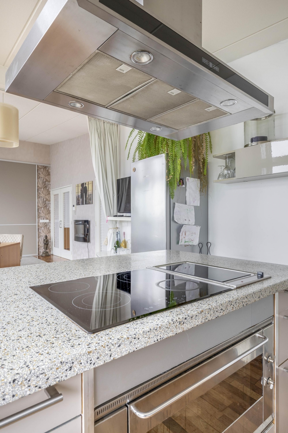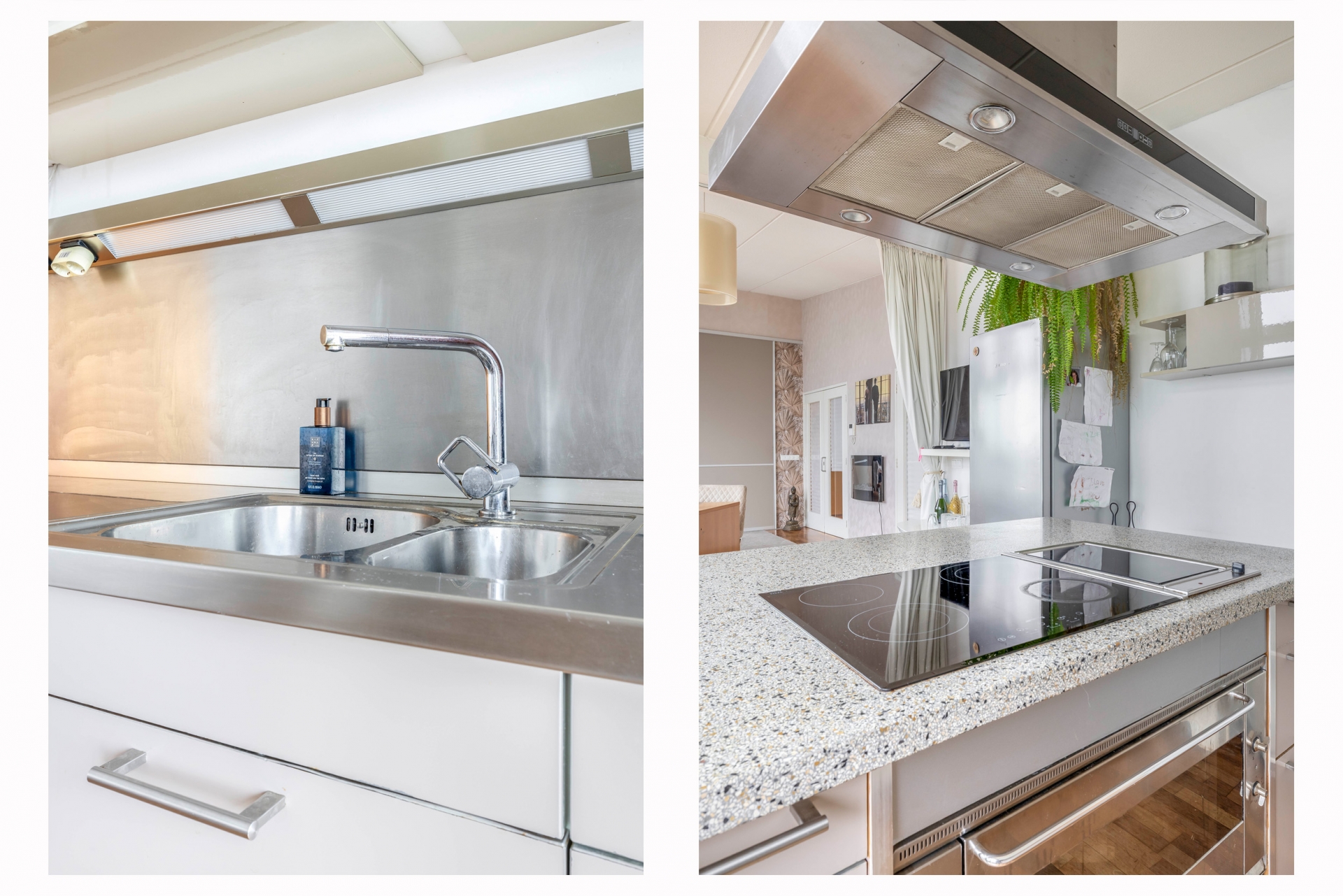 De keuken is zowel praktisch als stijlvol en voorzien van alle benodigde inbouwapparatuur. Direct aangrenzend vind je een bijkeuken voor extra opslag en wasruimte.