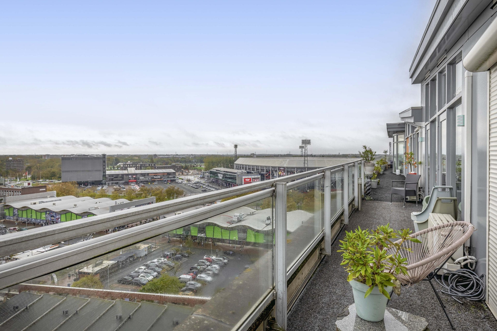 Wonen op hoog niveau, letterlijk én figuurlijk. Dit royale penthouse van ca. 163 m² in de geliefde wijk De Veranda combineert ruimte, licht en comfort met een panoramisch uitzicht dat élke dag opnieuw indruk maakt. Plafondhoge raampartijen, een sfeervolle open haard, eigen parkeerplaats, drie slaapkamers en twee badkamers zorgen voor een uitzonderlijk wooncomfort. Het absolute hoogtepunt? Het zuidgerichte dakterras van ca. 63 m², over de volle lengte van circa 30 meter. Hier leef je mee met het licht en het uitzicht – van zonsopkomst tot zwoele zomeravond.