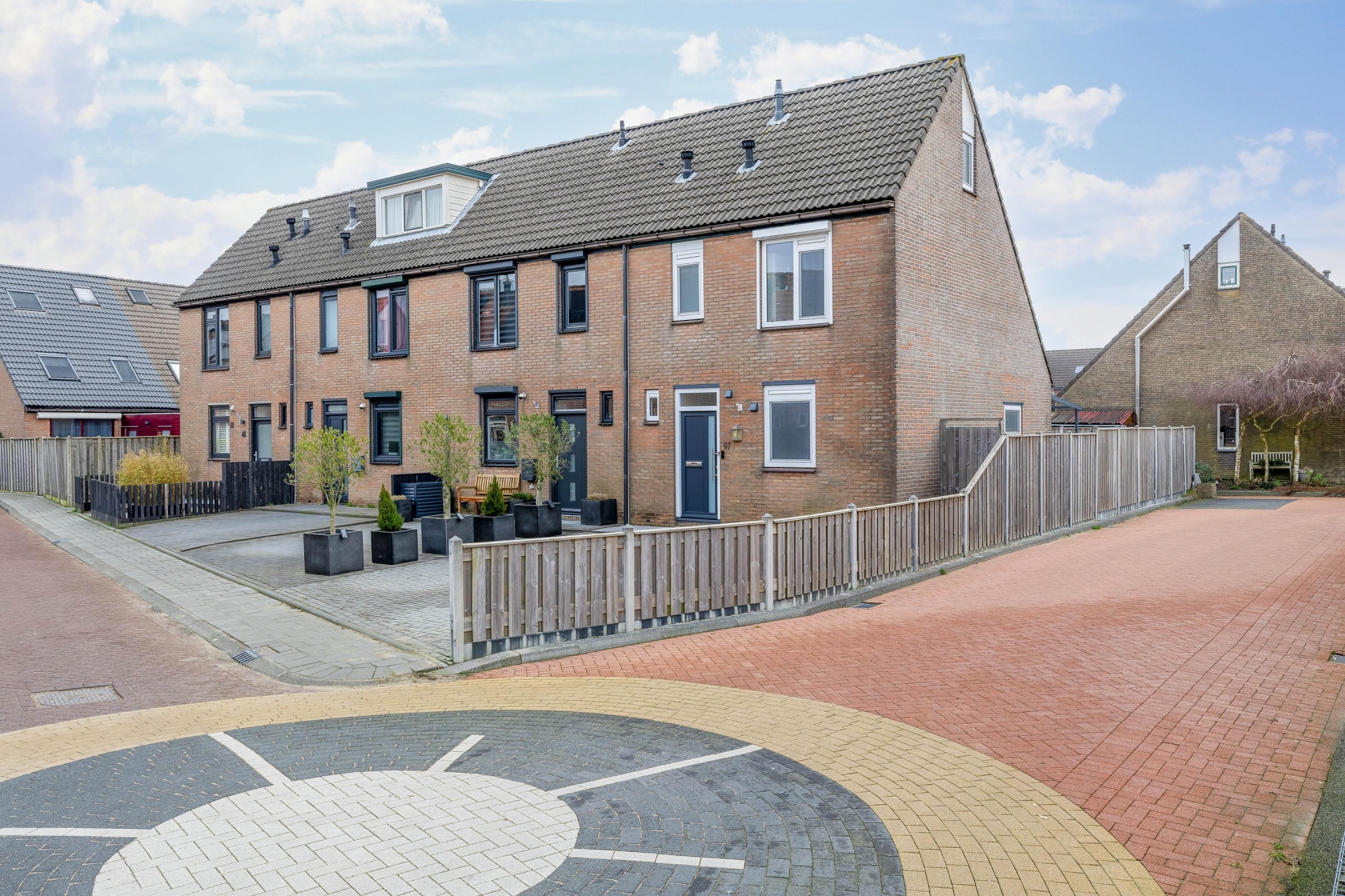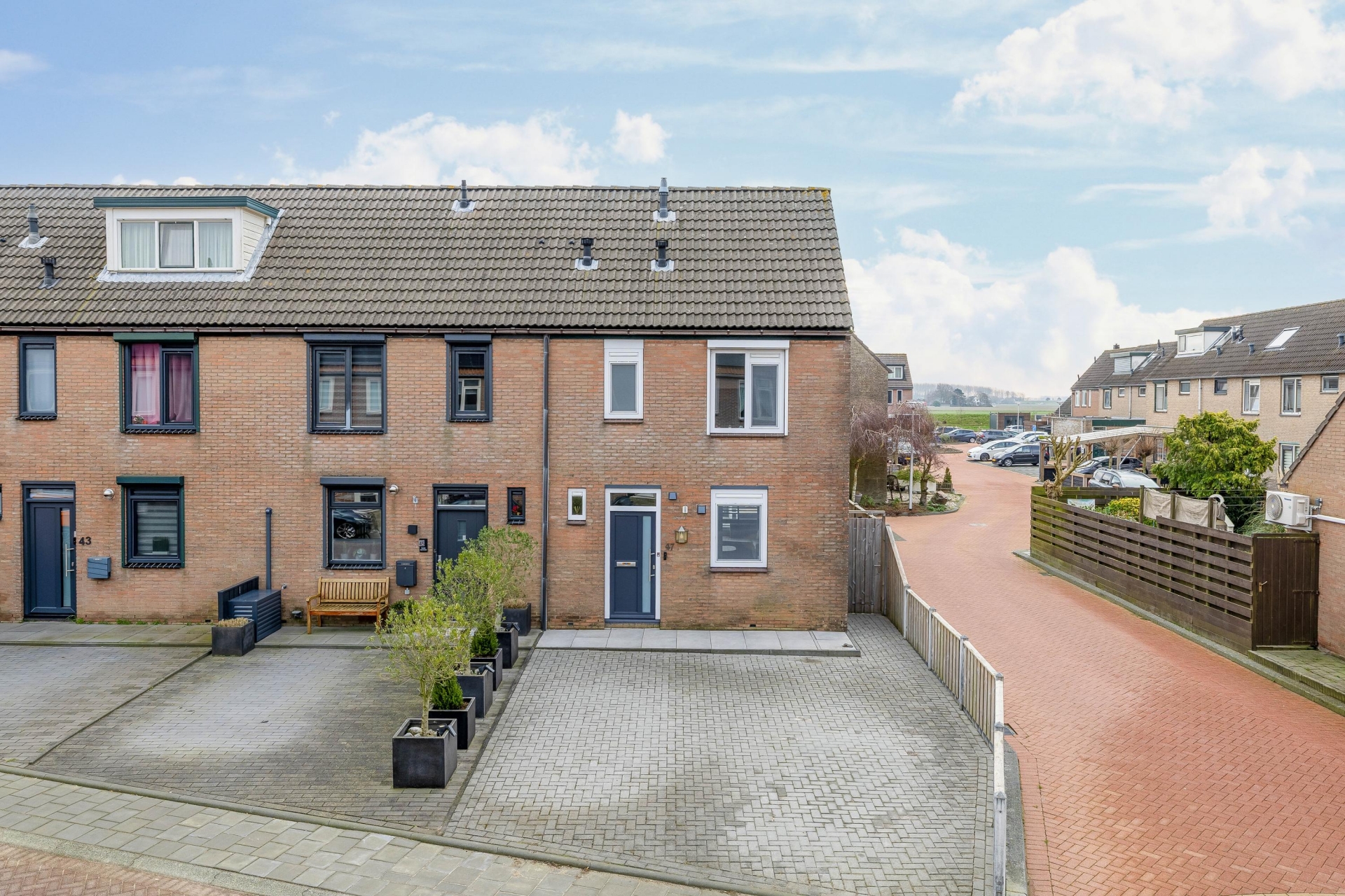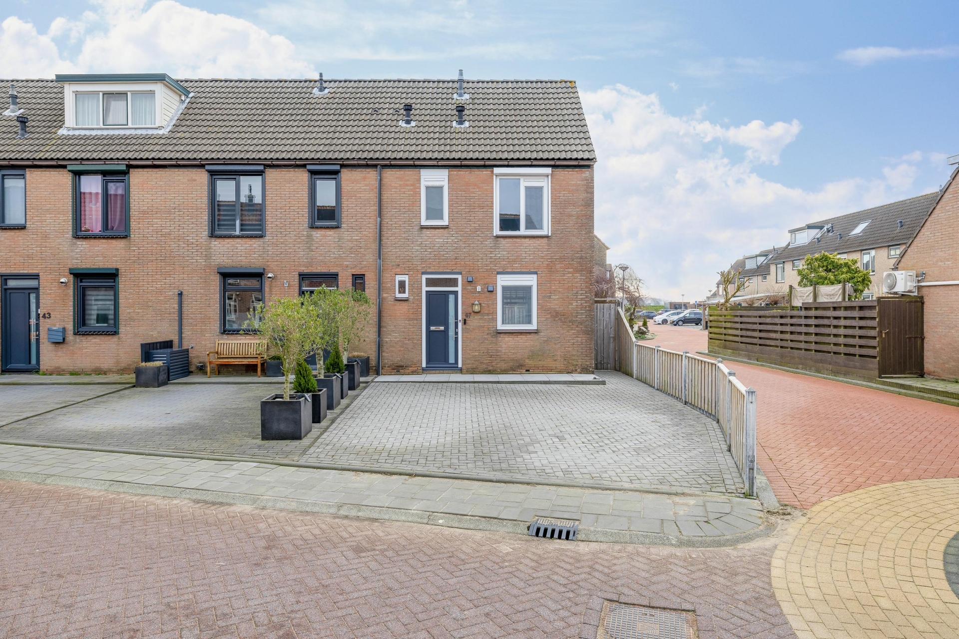 Aan de voorzijde van het huis bevindt zich een ruime oprit met parkeerplaats voor twee auto’s op eigen terrein. Dat is in deze wijk een groot voordeel en zorgt ervoor dat je altijd dichtbij huis kunt parkeren.