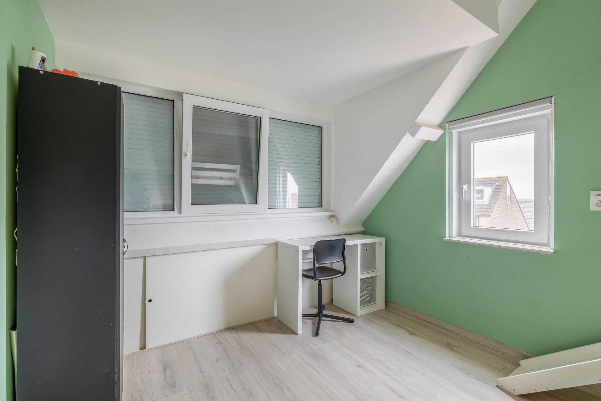 De tweede verdieping is dankzij het tweede kunststof dakkapel nog een vierde ruime slaapkamer. Op de overloop is veel bergruimte aanwezig en stata de opstelling cv combiketel HR (Vaillant 2021).