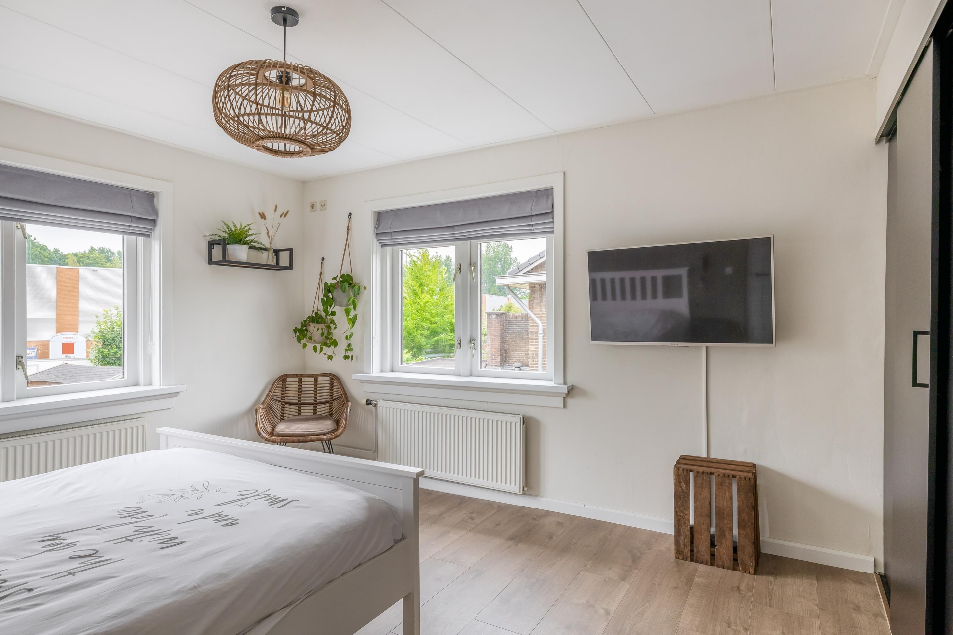 Via een vaste trap bereik je de ruime voorzolder, die praktische opbergruimte biedt. Aansluitend bevindt zich de vierde slaapkamer, voorzien van een Velux-dakraam en een nette laminaatvloer.