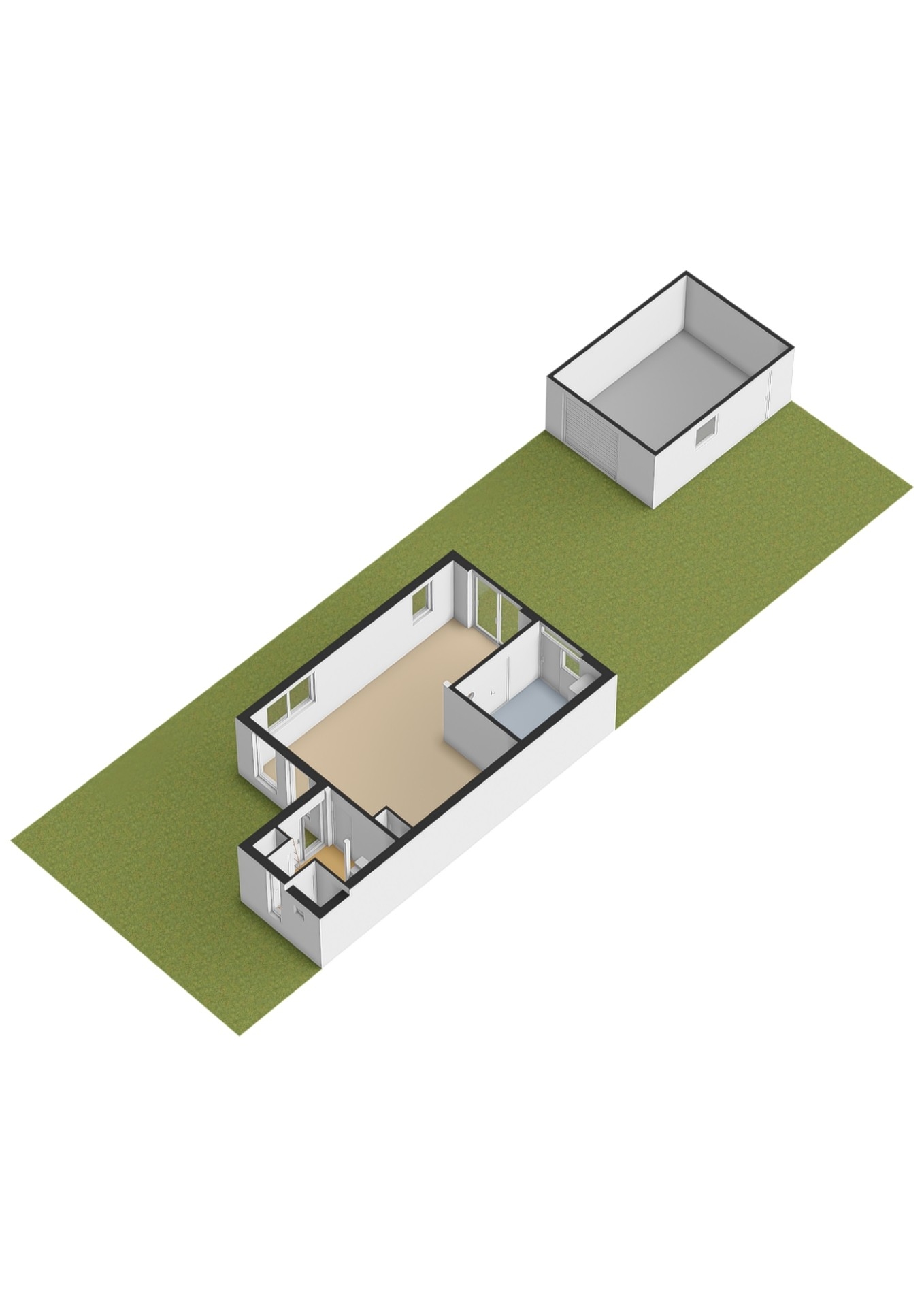 Achterin de tuin bevindt zich een vrijstaande garage/berging, ideaal voor het stallen van fietsen, gereedschap of als extra opslagruimte. De gedeelde oprit aan de voorzijde maakt het geheel compleet.