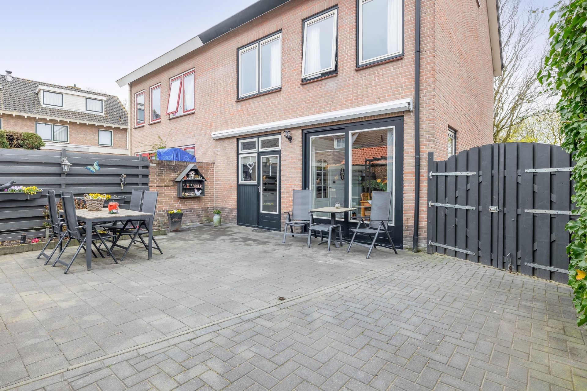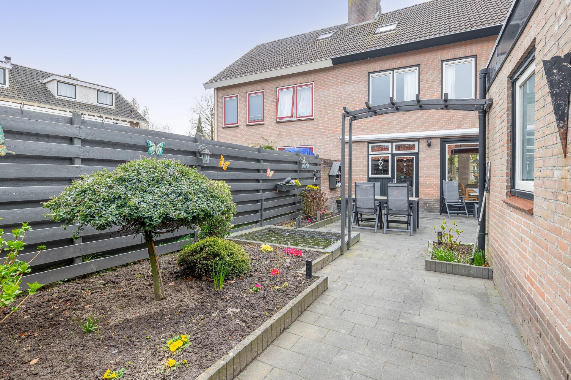 De achtertuin is onderhoudsvriendelijk aangelegd en ligt op het oosten. Dat betekent dat je hier al vroeg op de dag kunt genieten van de zon, perfect voor een kop koffie in de ochtend of een ontspannen start van je dag. De tuin is ruim opgezet en biedt voldoende plek voor een eettafel, loungehoek of speelruimte voor kinderen.