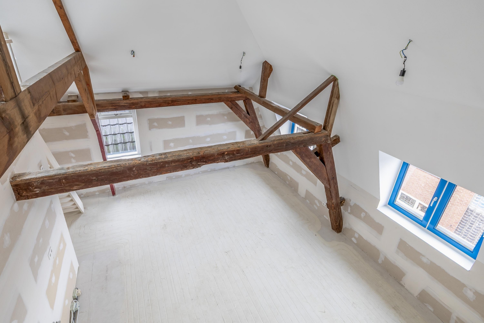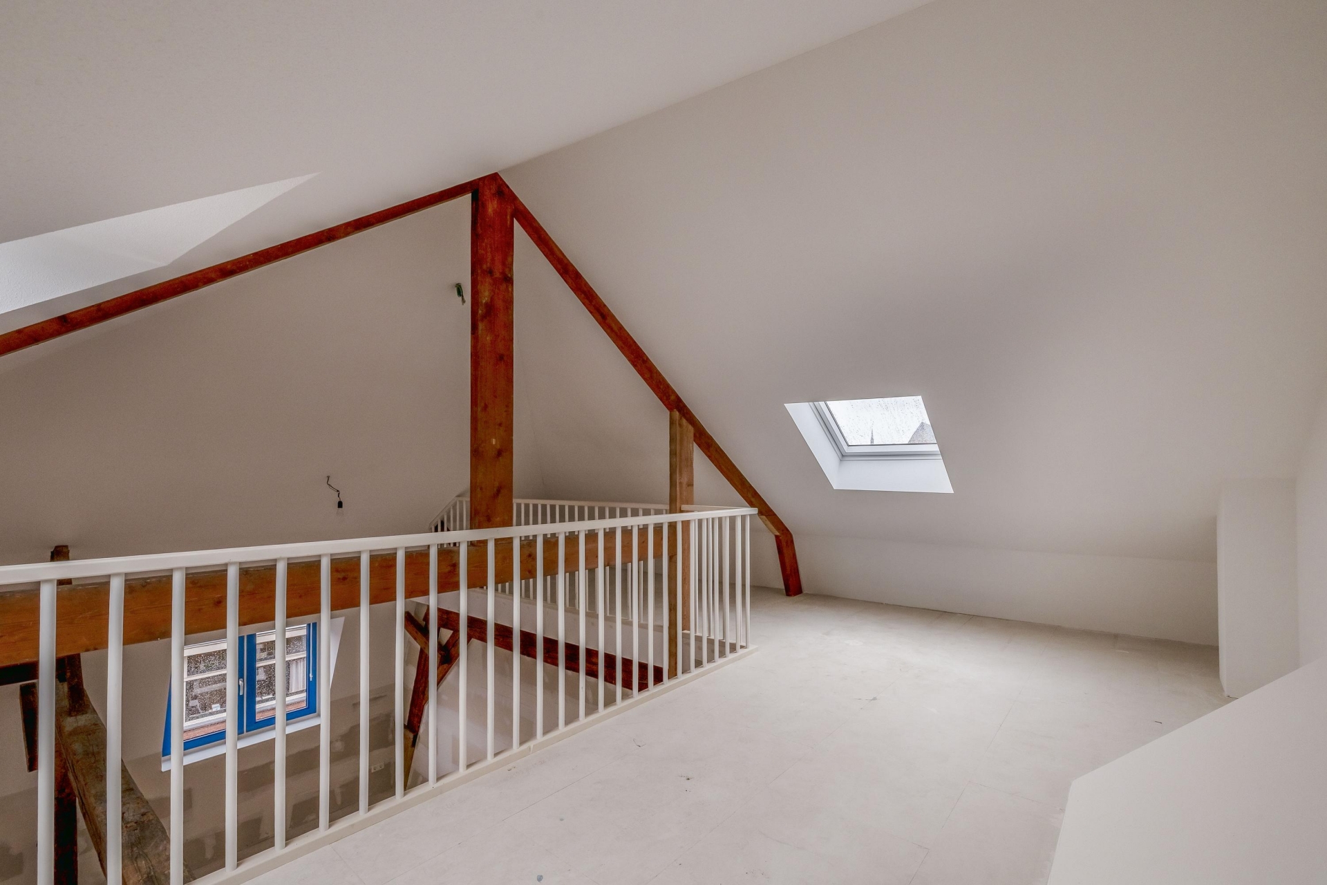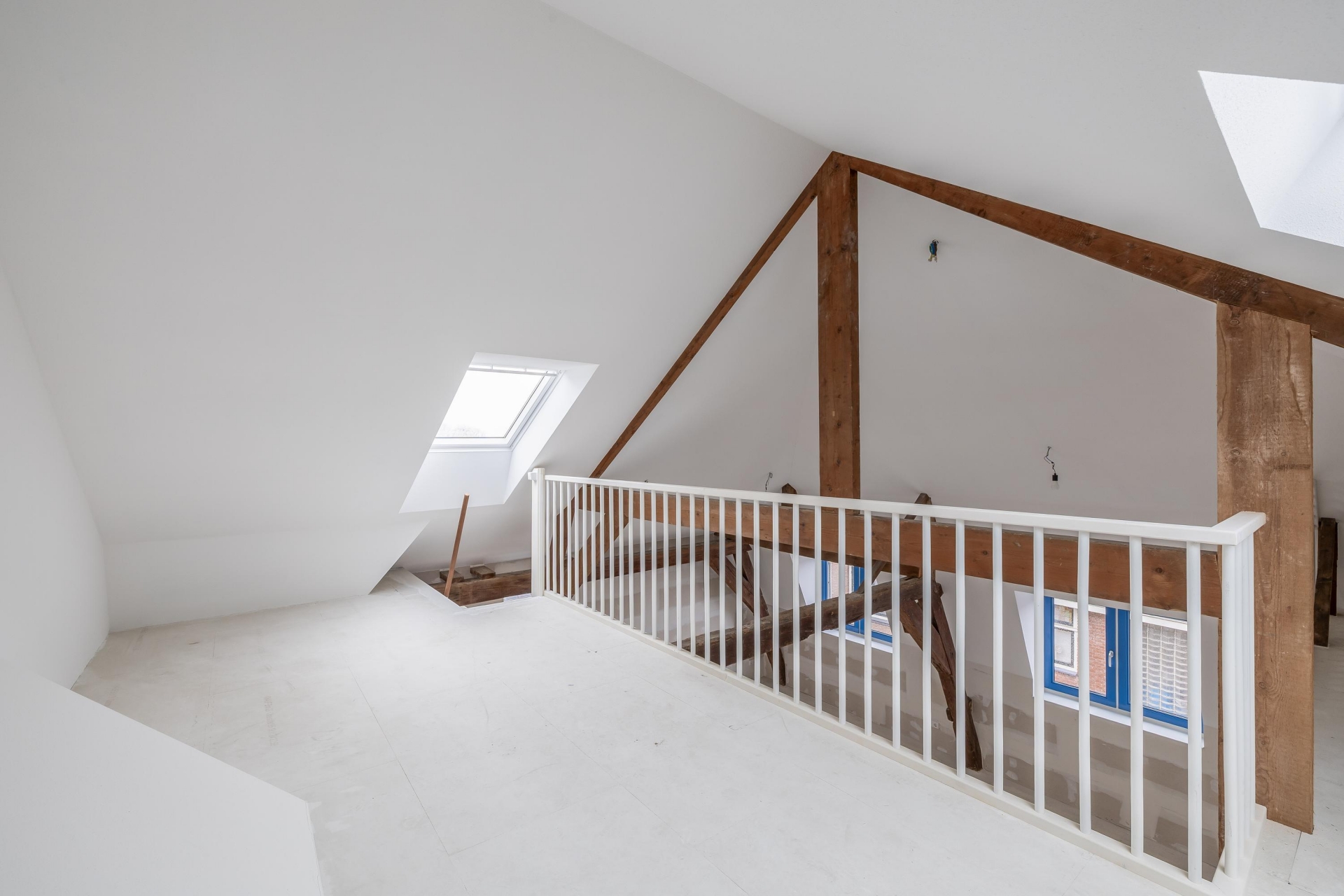 De woonruimte is licht, strak afgewerkt en helemaal klaar om jouw eigen stijl aan te geven. De wanden zijn behangklaar, de keuken is nog vrij in te richten (aansluitingen zijn aanwezig) en de fraaie entresol zorgt voor een extra dimensie in de ruimte, perfect als werkplek, hobbyruimte of logeerplek. De houten balken en de hoge vide geven echt karakter aan het appartement!