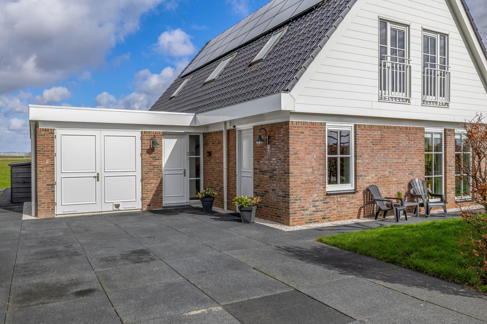 Het perceel van 1.280 m² biedt een gevoel van vrijheid dat je zelden tegenkomt. De tuin ligt rondom het huis en is verzorgd aangelegd, met meerdere plekken om te genieten van zon, rust en uitzicht. De ligging aan het water en het open landschap versterken het gevoel van exclusiviteit.