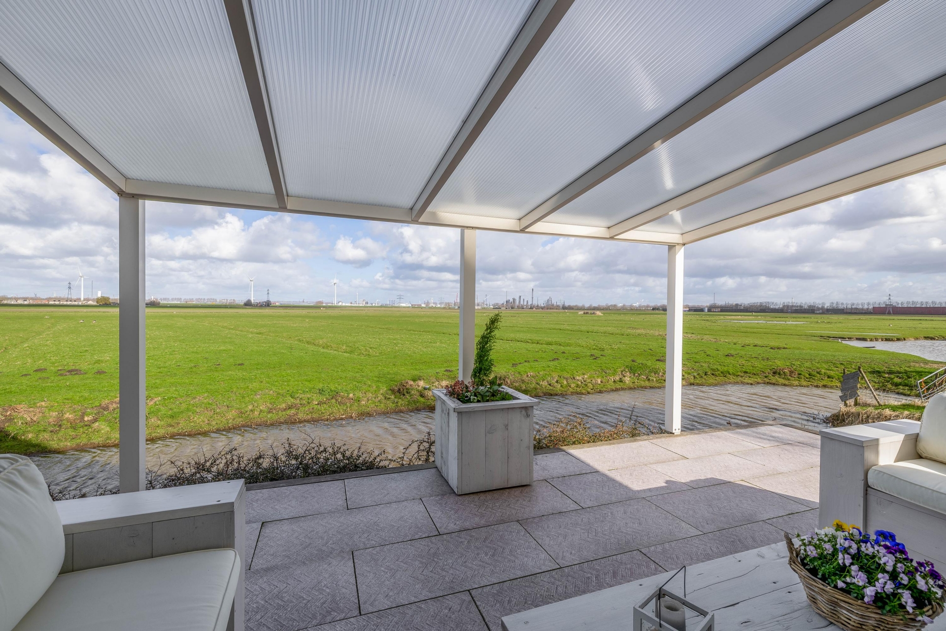 - Ligging Aan water, aan rustige weg, vrij uitzicht, open ligging, landelijk gelegen