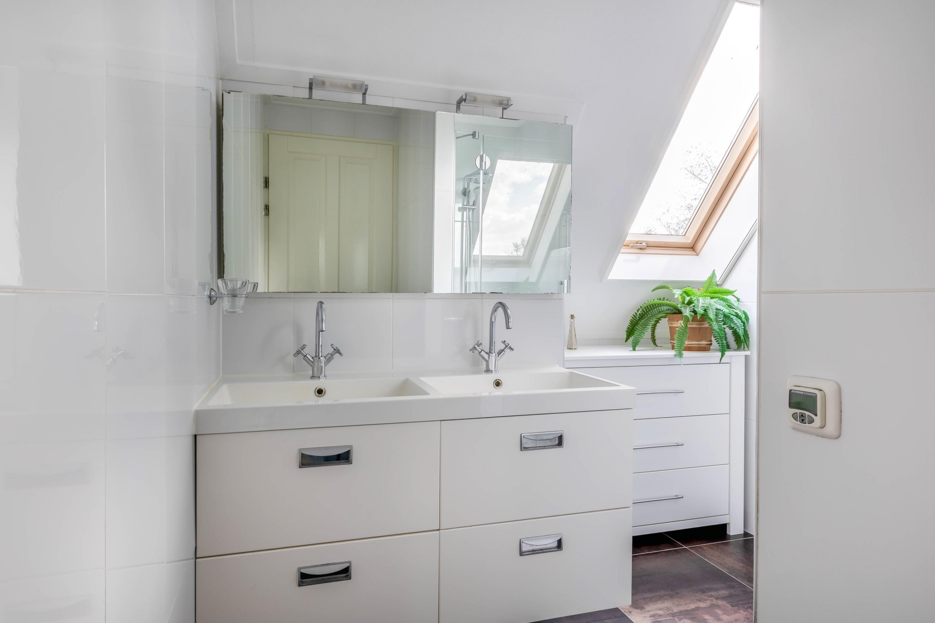 Op de eerste verdieping vind je drie ruime slaapkamers, waarbij de grootste kamer zich uitstekend leent als master bedroom. De badkamer is compleet uitgevoerd en voorzien van een dubbele wastafel met meubel, douche, toilet en bidet. Daarnaast is er een praktische inloopkast aanwezig.