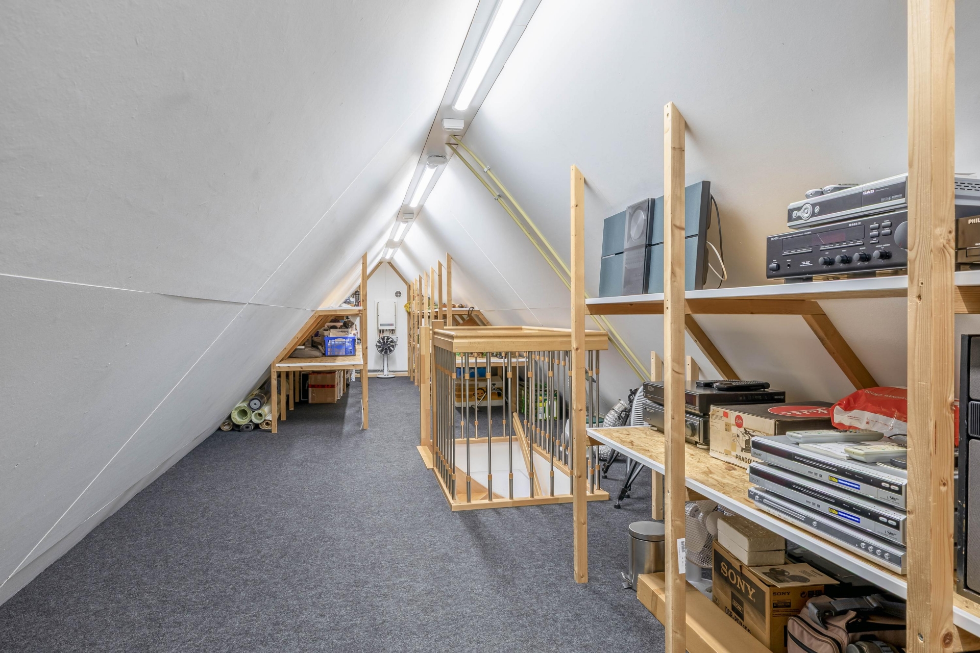De zolder biedt bijzonder veel bergruimte op stahoogte en mogelijkheden voor verdere invulling.