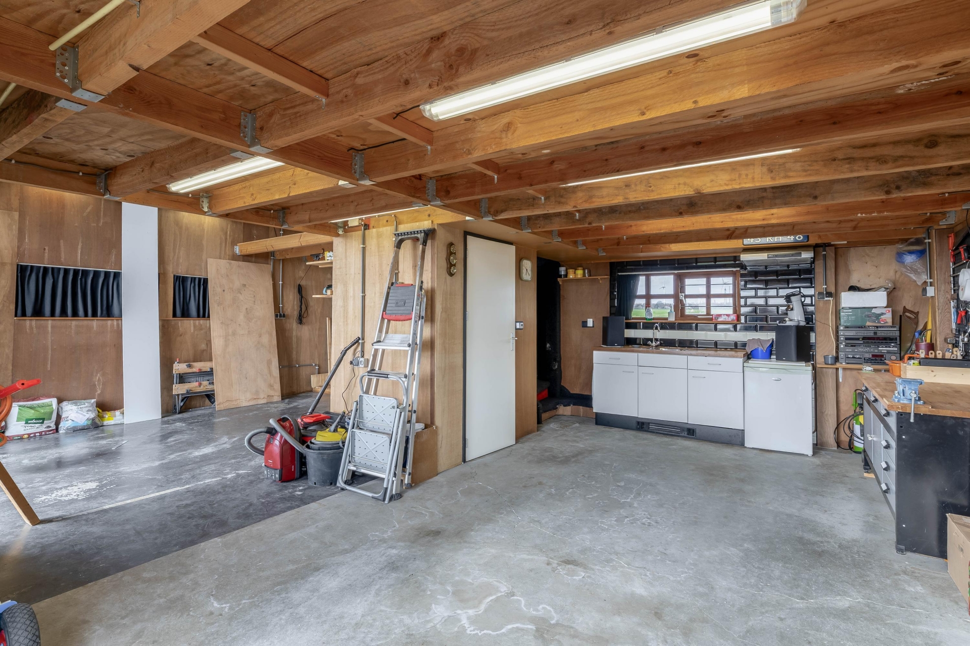 De vrijstaande dubbele garage van circa 47 m² is meer dan alleen een plek voor auto’s. Deze ruimte is volledig uitgerust met elektra, water, een pantry en een eigen douche met toilet. In combinatie met de aanwezige zolder biedt dit volop mogelijkheden voor bijvoorbeeld een zelfstandige ruimte voor kinderen, een gastenverblijf of een combinatie van hobby en werk aan huis.