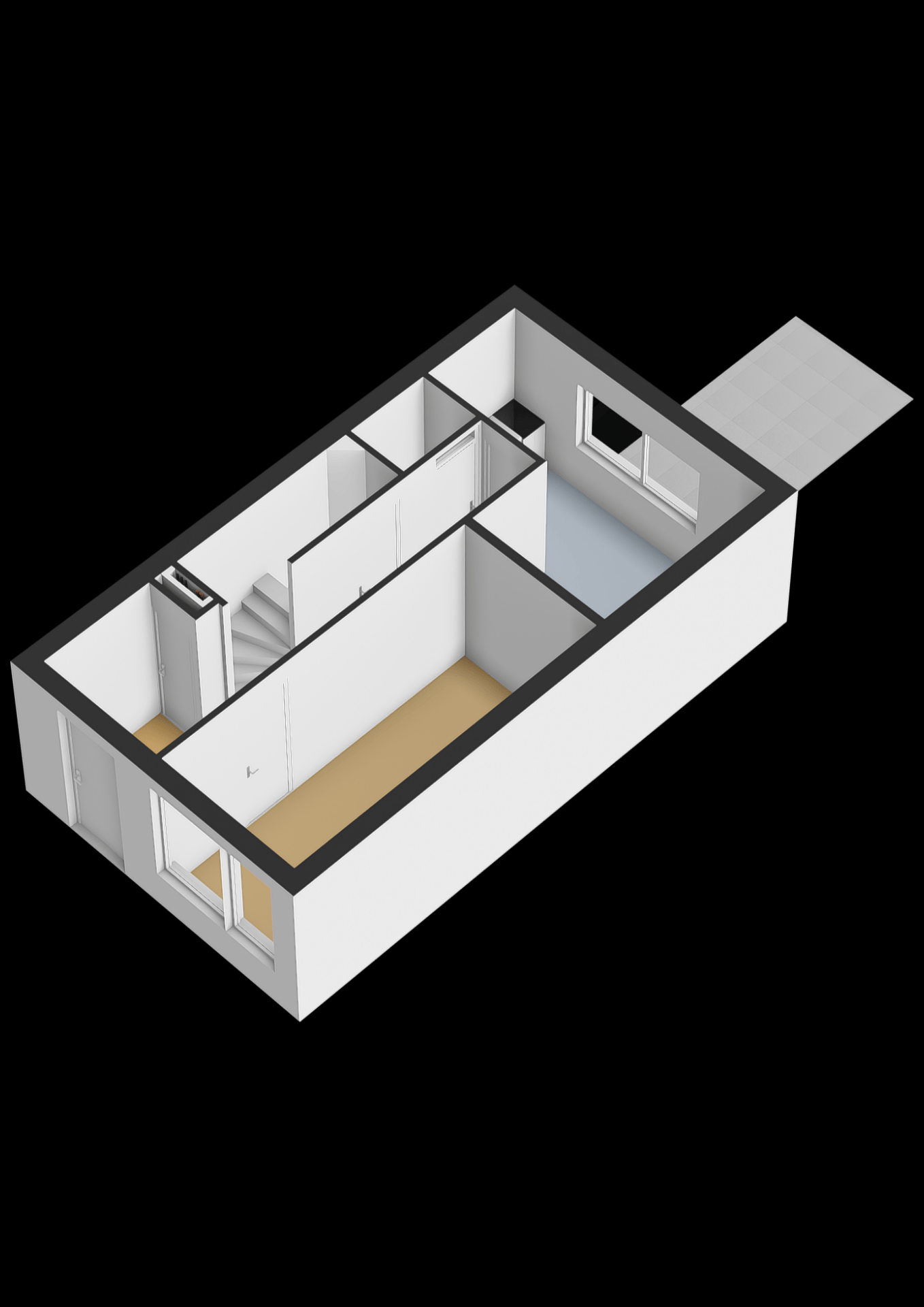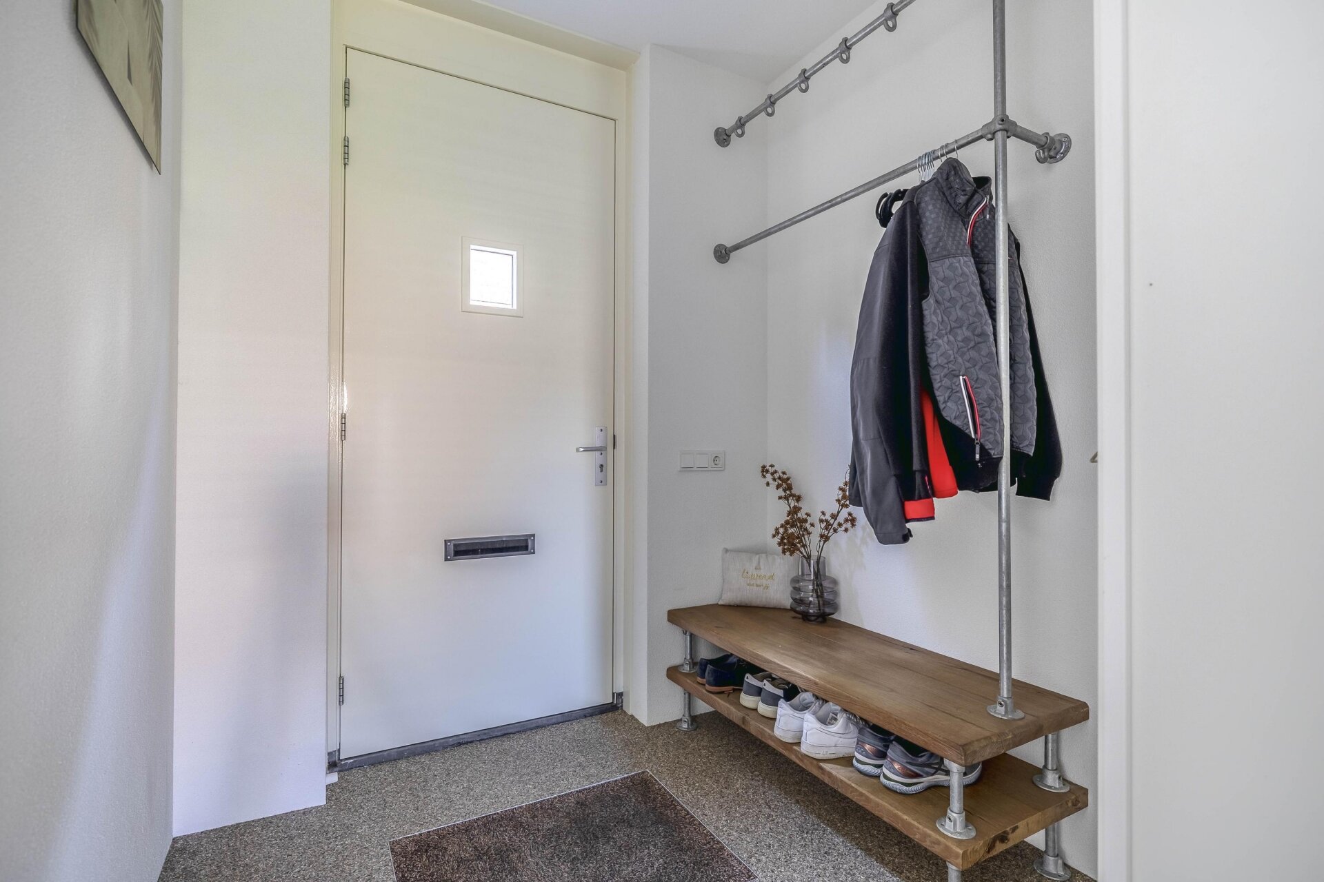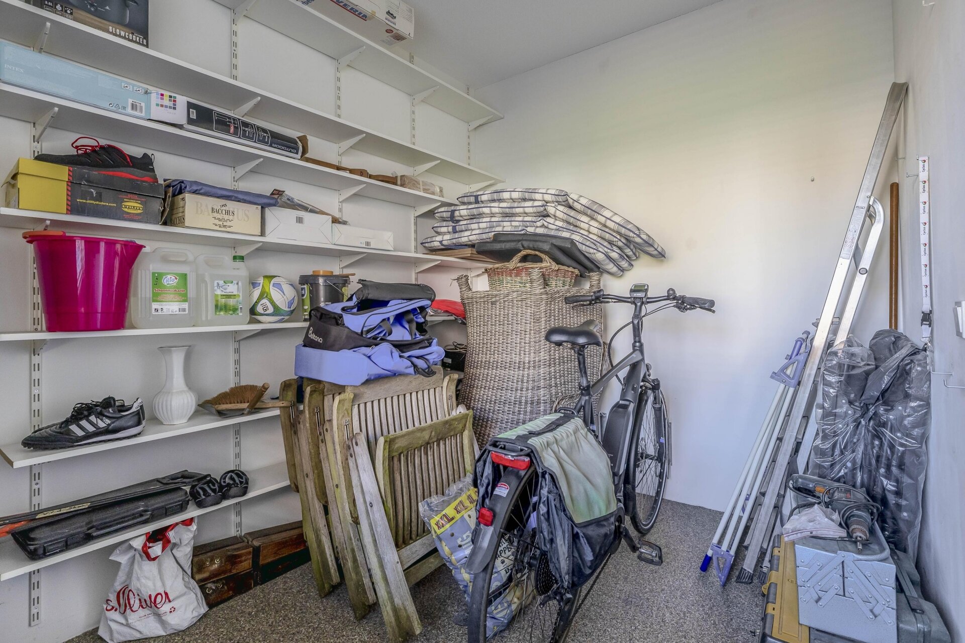 We komen binnen in een royale hal met rechts op de begane grond een comfortabele slaapkamer die ook heel makkelijk kan dienen als werkkamer, sportruimte e.d., voorzien van grote ramen en een nette afwerking. Als we verder lopen komen we in de royale bijkeuken of berging te noemen, ideaal voor opslag en fietsen en nog genoeg ruimte waar je de wasmachine en droger kwijt kunt. Dankzij deze indeling is het huis niet alleen bijzonder, maar ook nog eens heel praktisch.