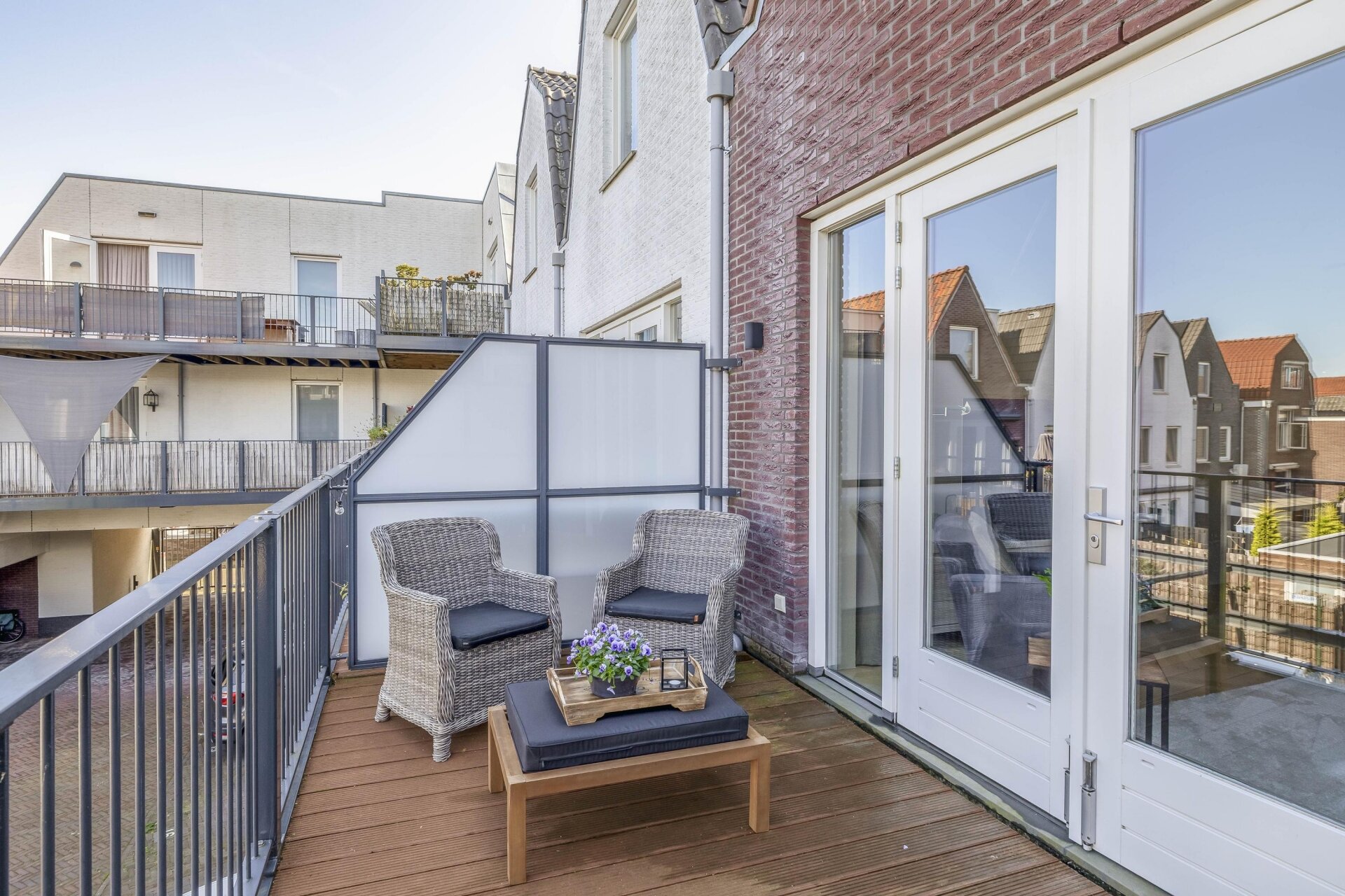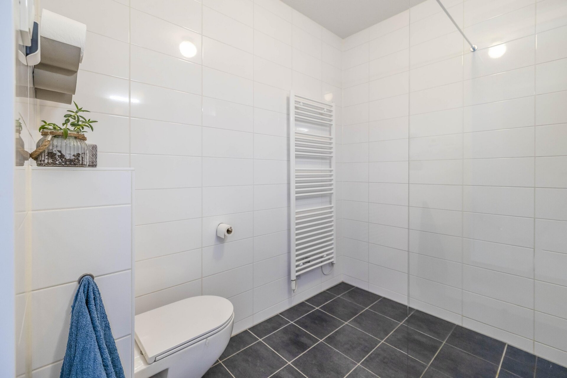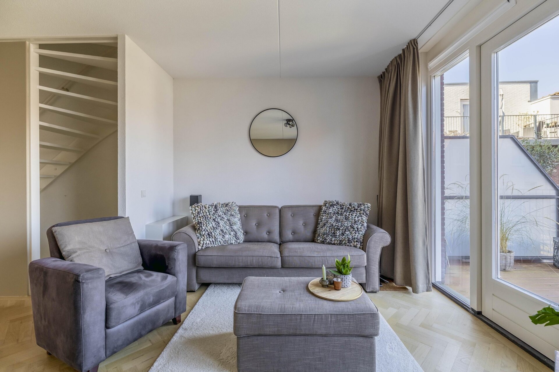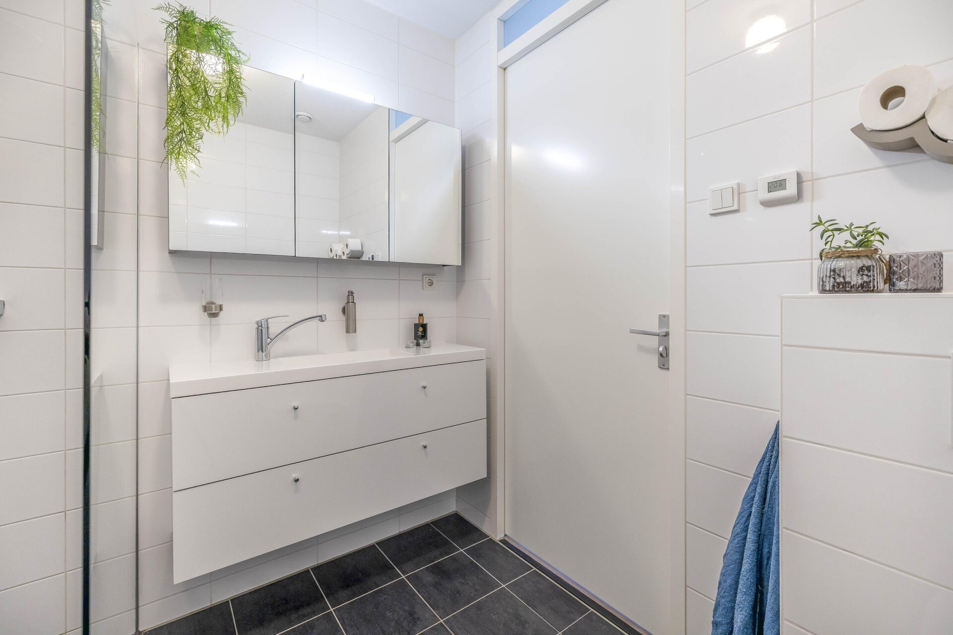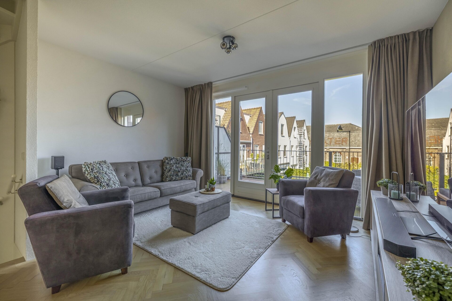 Wat direct opvalt zodra je de trap op loopt naar de 1e verdieping, is de prettige lichtinval. De woonkamer is ruim, fris en heeft een fijne indeling en is voorzien van een prachtige eiken parket visgraat vloer. De openslaande deuren geven toegang tot een knus terras waar je al snel lekker beschut zit. De open keuken sluit hier perfect op aan en is uitgevoerd in een rustige, moderne stijl met inbouwapparatuur waaronder een vaatwasser, Quooker, afzuigkap, koel-/vriescombi en een magnetron en voldoende werkruimte.