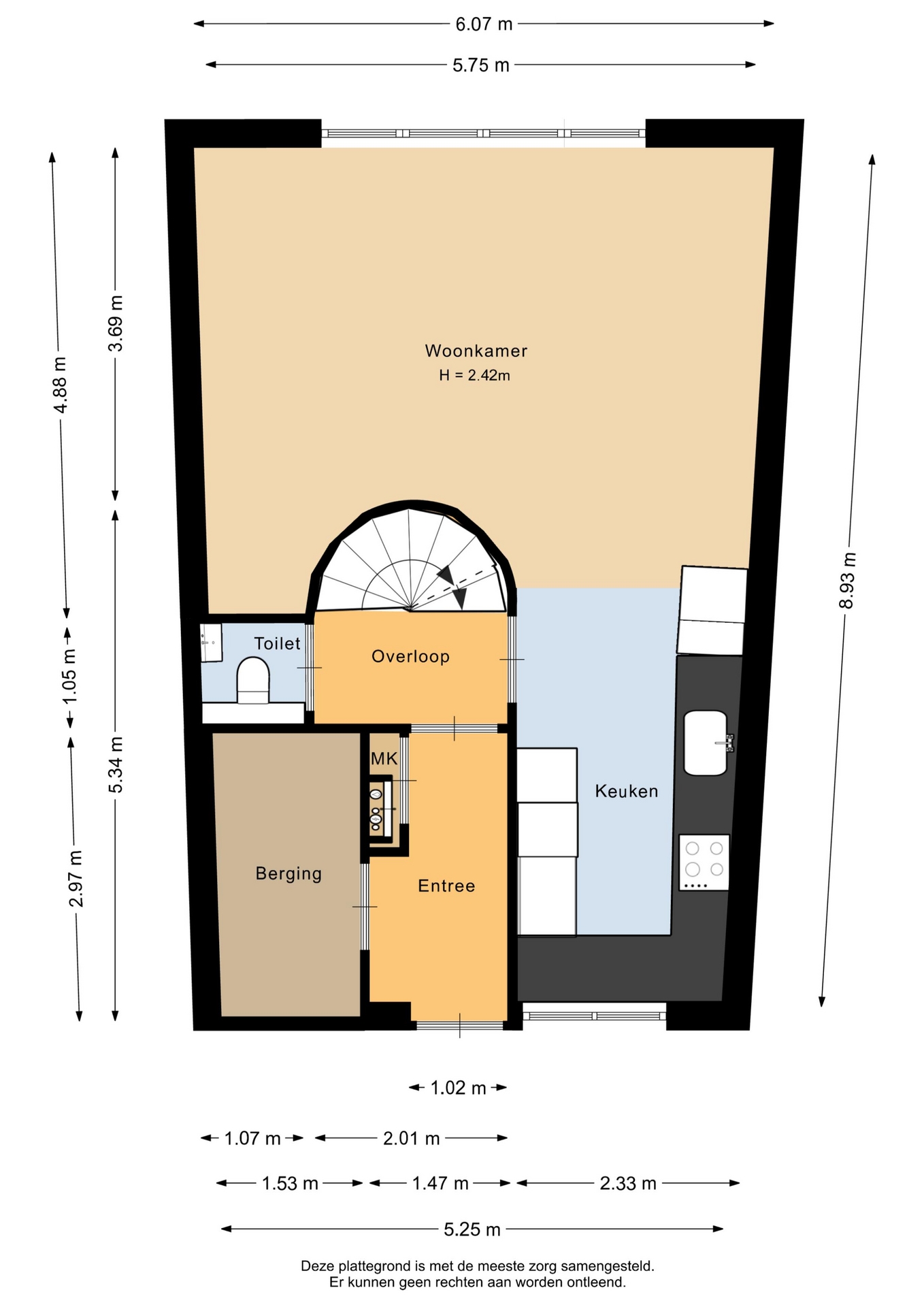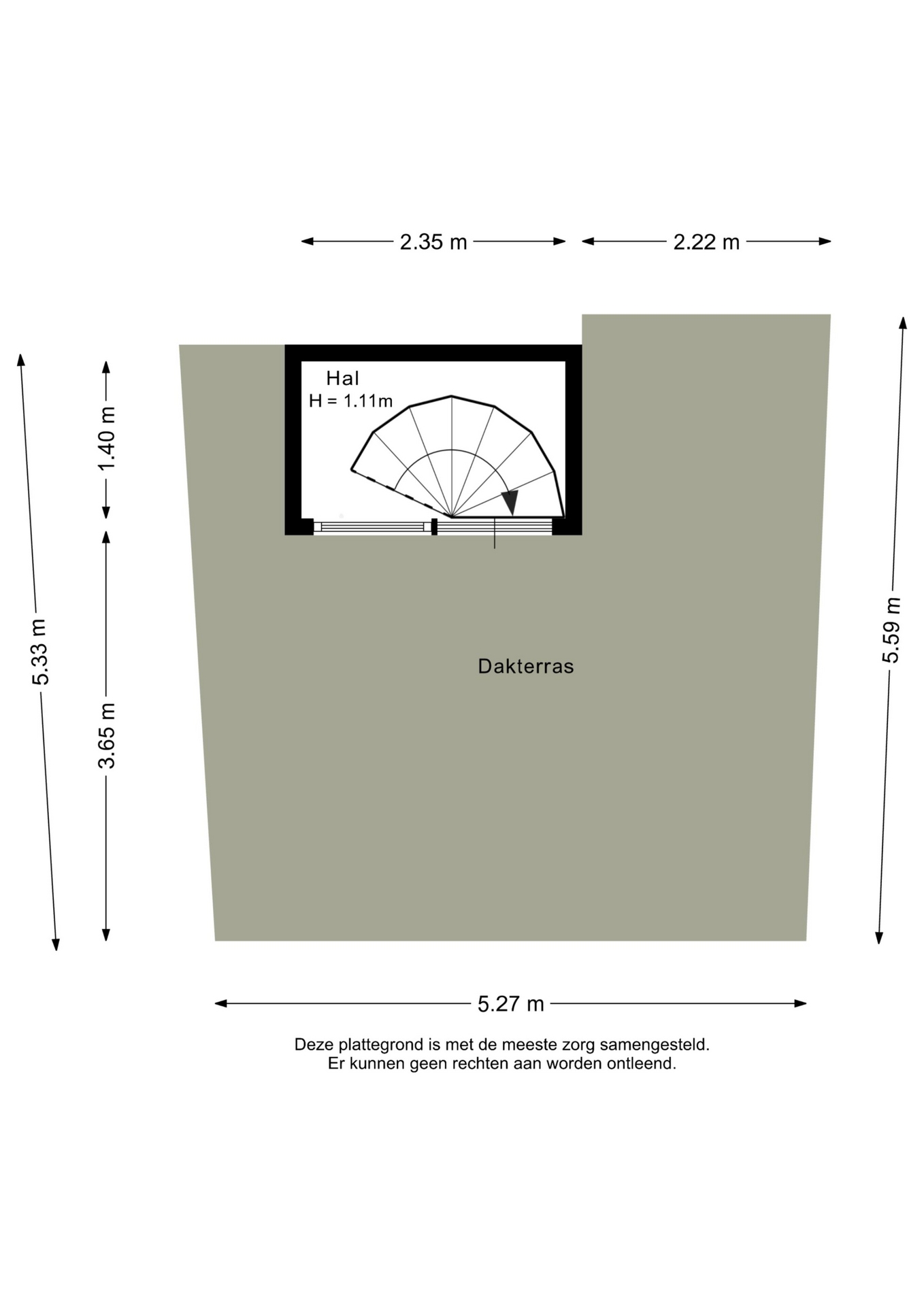 “Deze informatie is door ons met de nodige zorgvuldigheid samengesteld. Onzerzijds wordt echter geen enkele aansprakelijkheid aanvaard voor enige onvolledigheid, onjuistheid of anderszins, dan wel de gevolgen daarvan. Alle opgegeven maten en oppervlakten zijn indicatief.”
