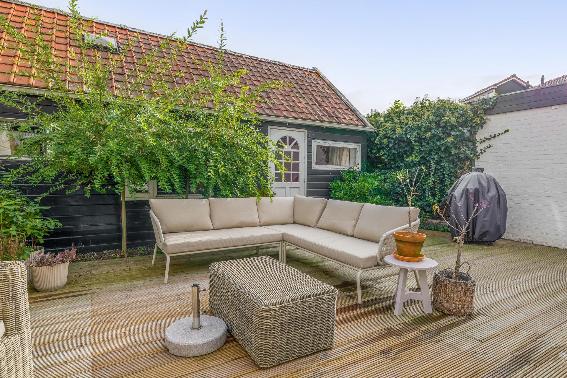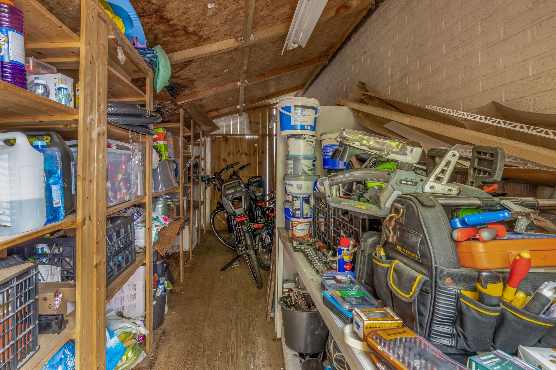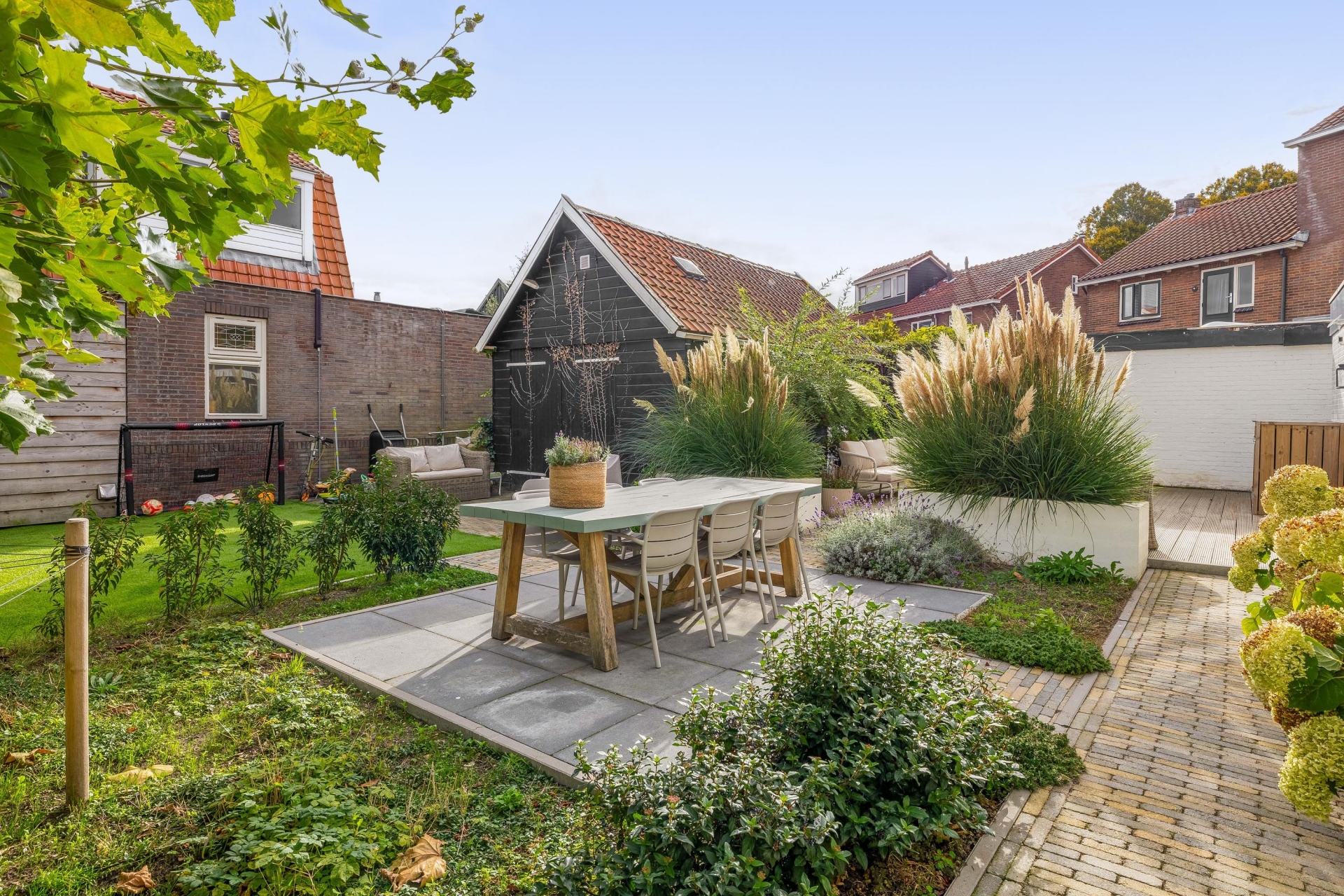 In de prachtig aangelegde tuin bevindt zich een vrijstaand bijgebouw van circa 22 m². Deze ruimte is voorzien van een eigen CV ketel, wateraansluiting en elektra, volledig vrijstaand en kan op allerlei manieren worden benut: als atelier, thuiskantoor, hobbyruimte, sportruimte of zelfs als gastenverblijf. De tuin loopt rondom het huis en is keurig onderhouden, met diverse zitplekken, borders, een fijn terras én een eigen oprit waar je kunt parkeren op eigen grond – een zeldzaamheid op deze locatie.