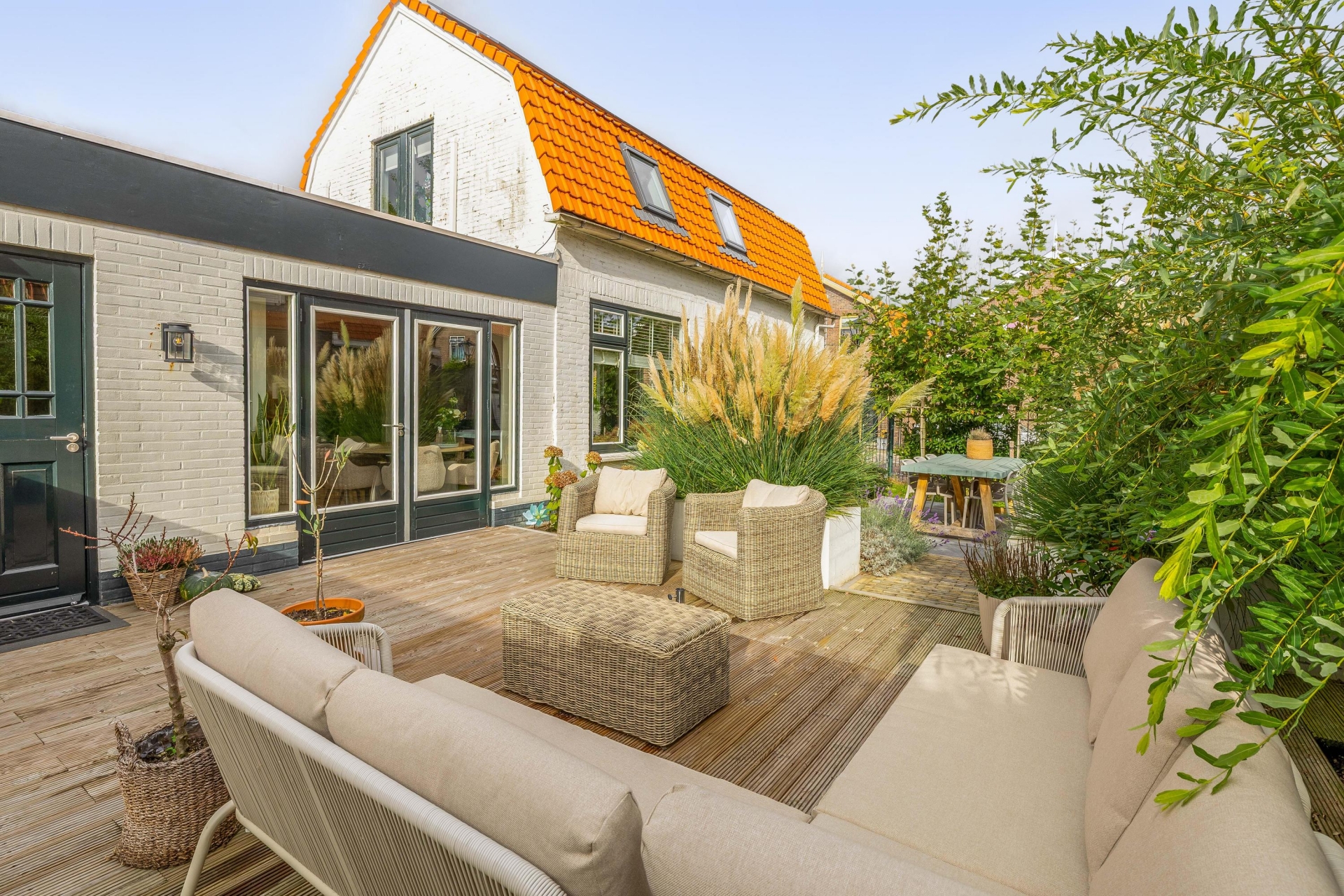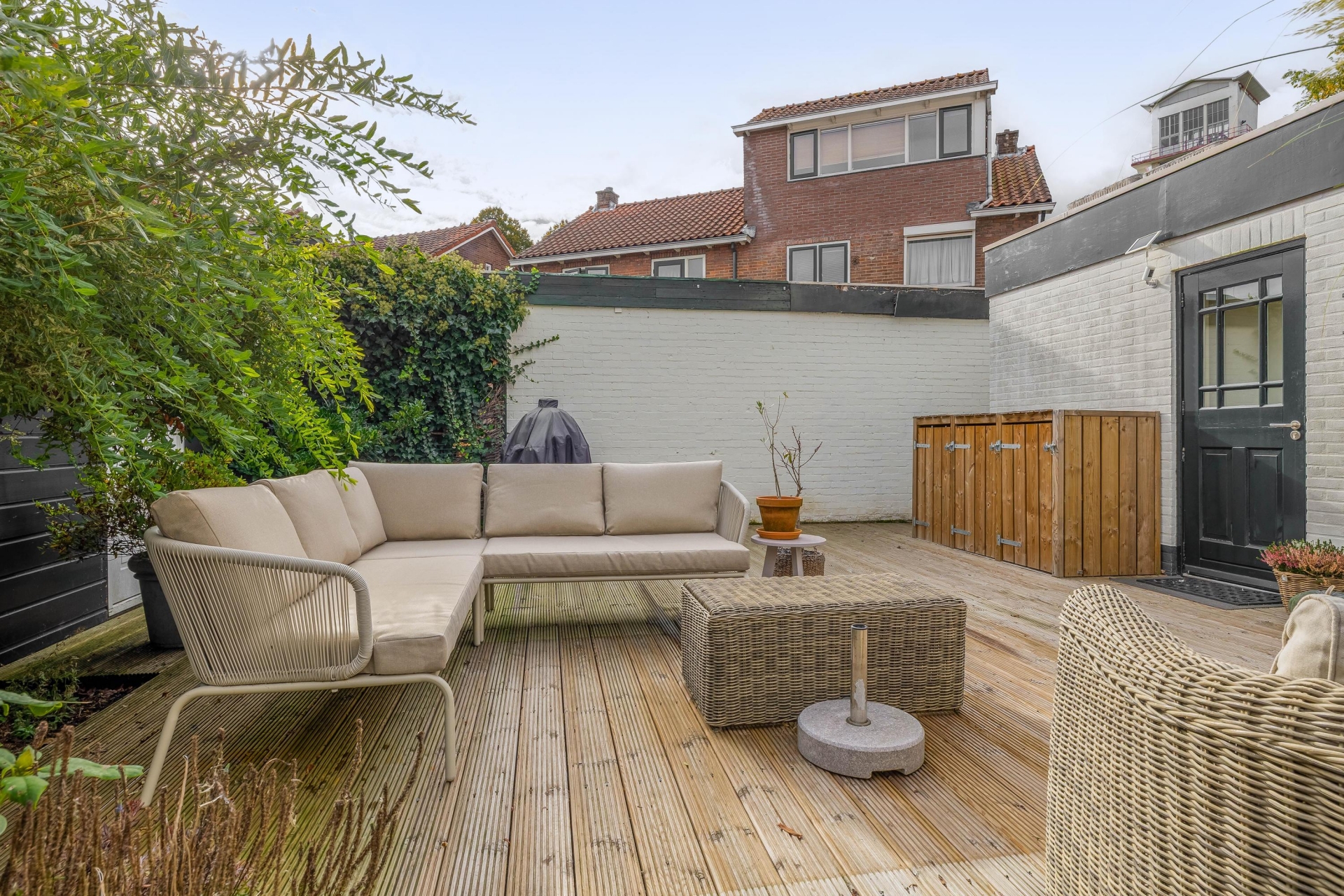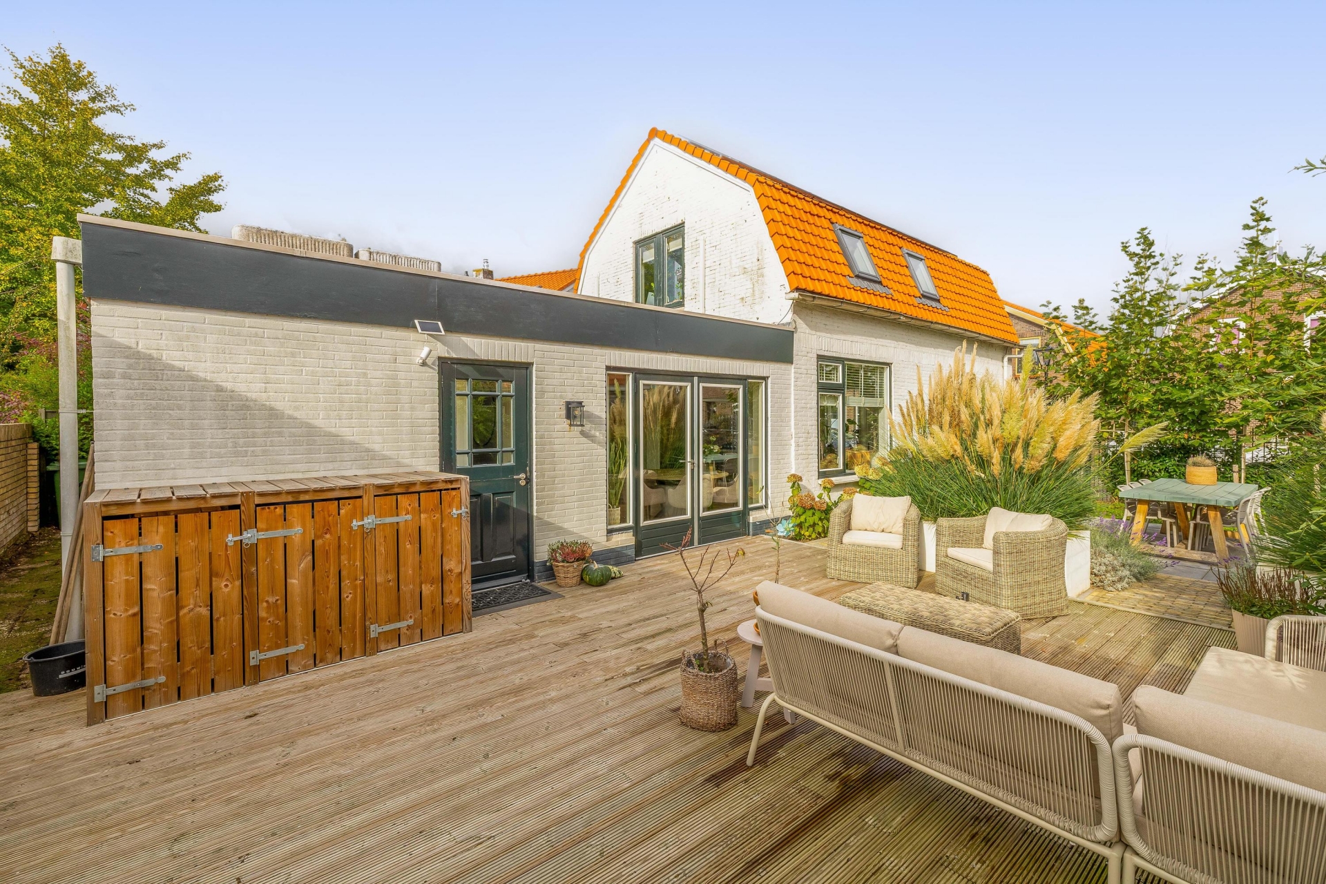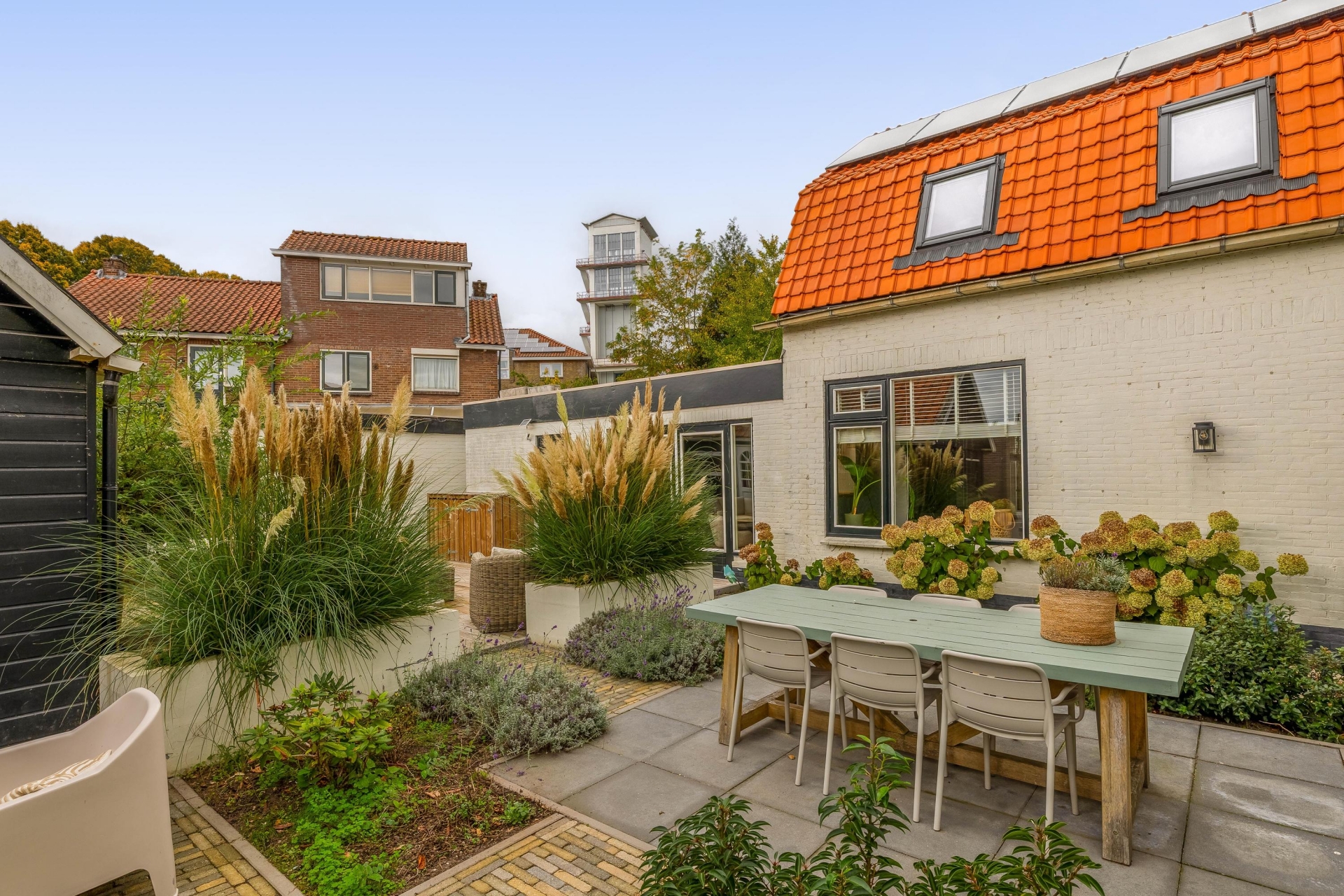 In de prachtig aangelegde tuin bevindt zich een vrijstaand bijgebouw van circa 22 m². Deze ruimte is voorzien van een eigen CV ketel, wateraansluiting en elektra, volledig vrijstaand en kan op allerlei manieren worden benut: als atelier, thuiskantoor, hobbyruimte, sportruimte of zelfs als gastenverblijf. De tuin loopt rondom het huis en is keurig onderhouden, met diverse zitplekken, borders, een fijn terras én een eigen oprit waar je kunt parkeren op eigen grond – een zeldzaamheid op deze locatie.
