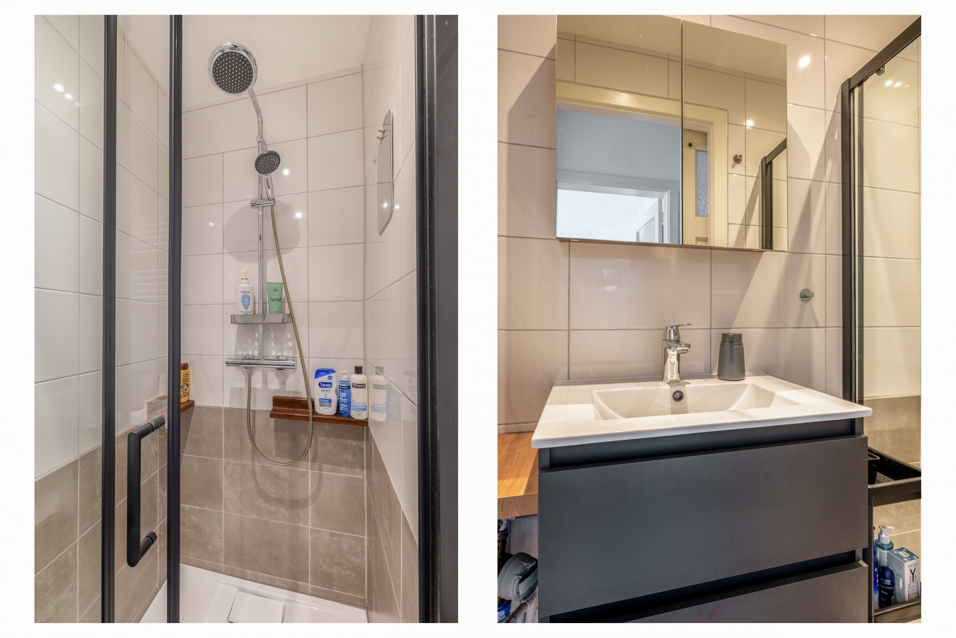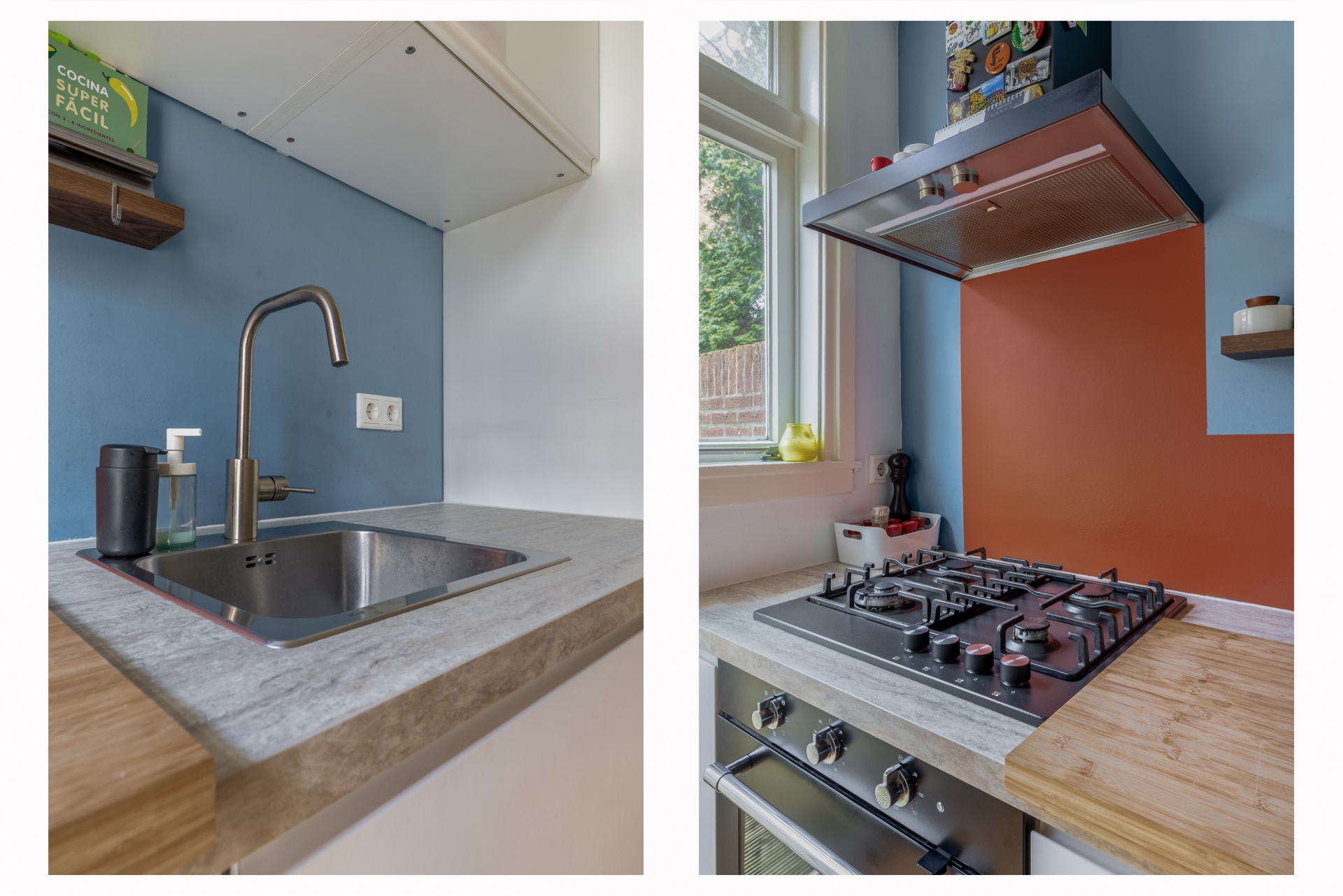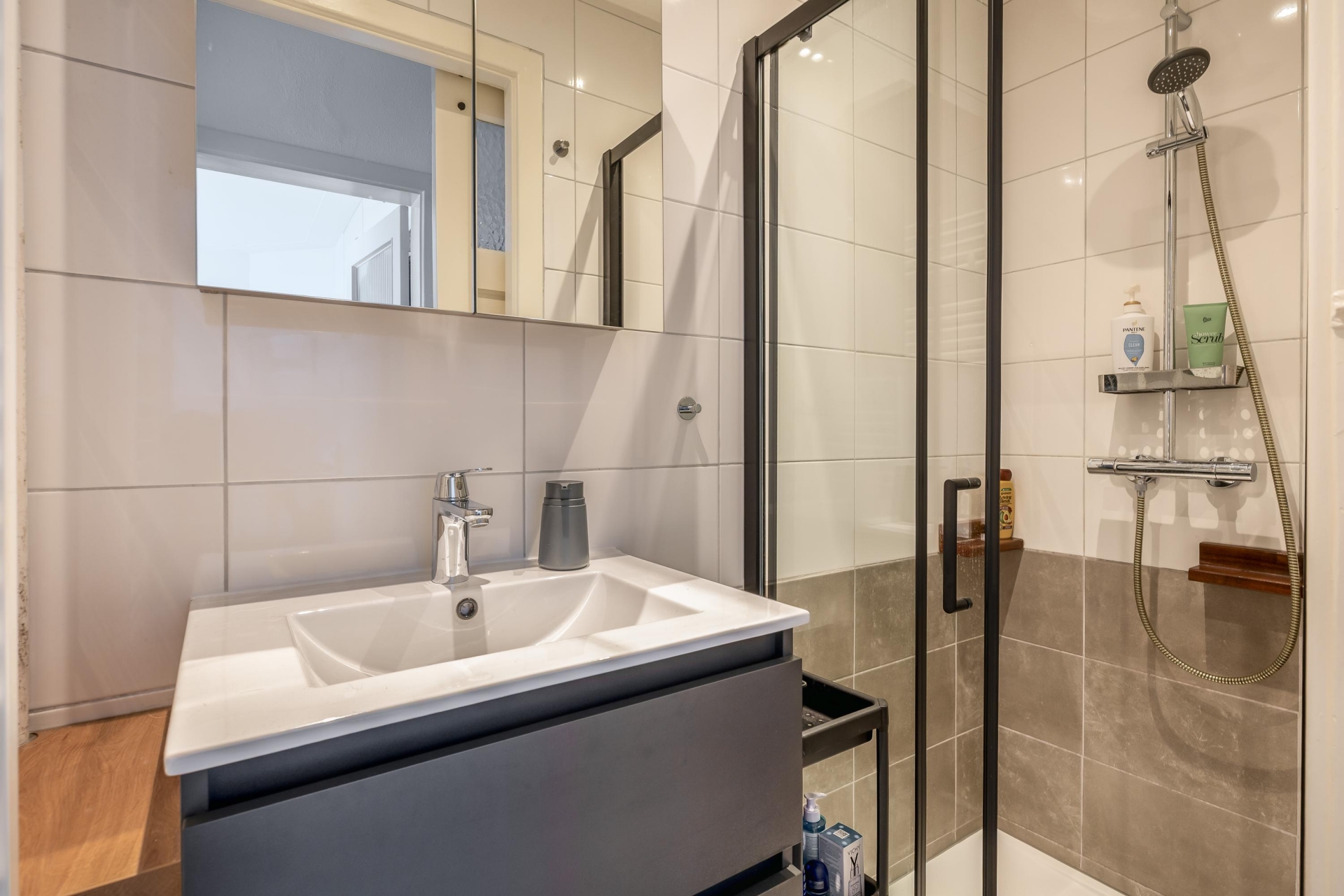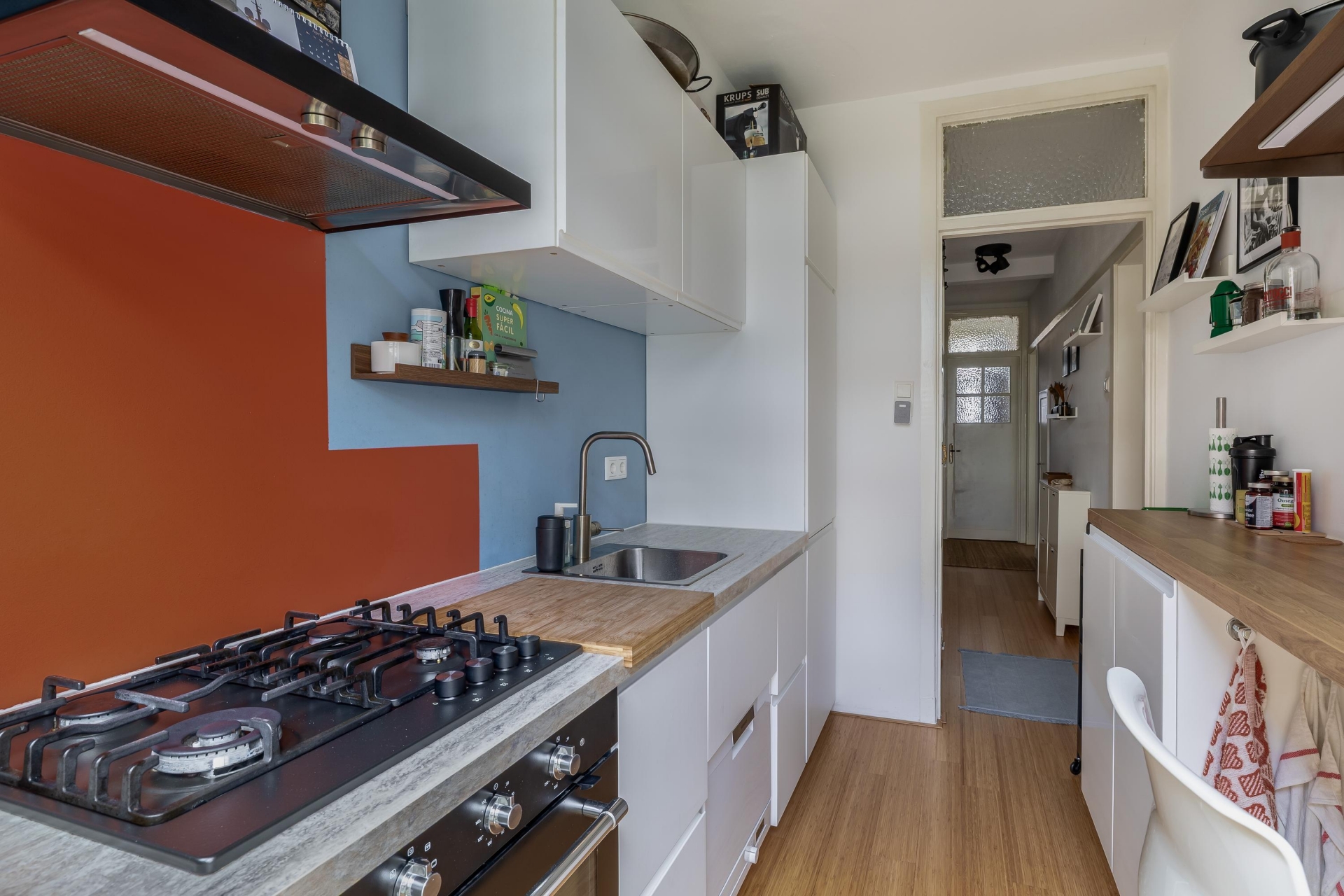 De keuken bevindt zich eveneens aan de achterzijde en is uitgevoerd in een lichte opstelling met een modern werkblad. Hier heb je alles bij de hand voor dagelijks gebruik. De keuken is praktisch ingericht en biedt voldoende werk- en opbergruimte. Vanuit de keuken stap je zo de tuin in, wat het contact tussen binnen en buiten erg prettig maakt. De badkamer is compact maar functioneel ingericht en voorzien van een douche en wastafel. Daarnaast is er een separaat toilet aanwezig, wat zorgt voor extra comfort.
