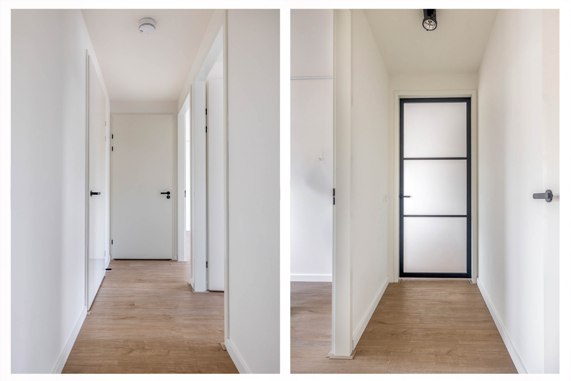 Vanuit de entree heeft u toegang tot alle vertrekken in het appartement. Direct aan uw rechterhand vindt u de toiletruimte welke is voorzien van een hangend closet en fonteintje. Vanuit hier loopt u door naar de bijzonder ruime woonkamer welke is voorzien vloerverwarming, een keurige pvc vloer en grote raampartijen met een heerlijke lichtinval. Tevens vindt u in deze heerlijke ruimte de moderne, open keuken welke is uitgevoerd met een beige kleurstelling en beschikt over diverse inbouwapparatuur te weten; Quooker kraan, vaatwasser, combi oven, RvS spoelbak, inductie kookplaat, afzuigschouw en koel/vries combinatie. Vanuit de woonkamer loop u door naar een tweede hal waar zich de toegang bevindt tot een handige berging met daarin de warmtepomp. Grenzend hieraan treft u de badkamer. Deze meer dan ruime badkamer is voorzien van een tweede toilet, douchecabine en wastafelmeubel. Tegenover deze badkamer treft u de een tweetal slaapkamers welke beschikken over keurige afmetingen en wederom grote rampartijen met veel lichtinval.