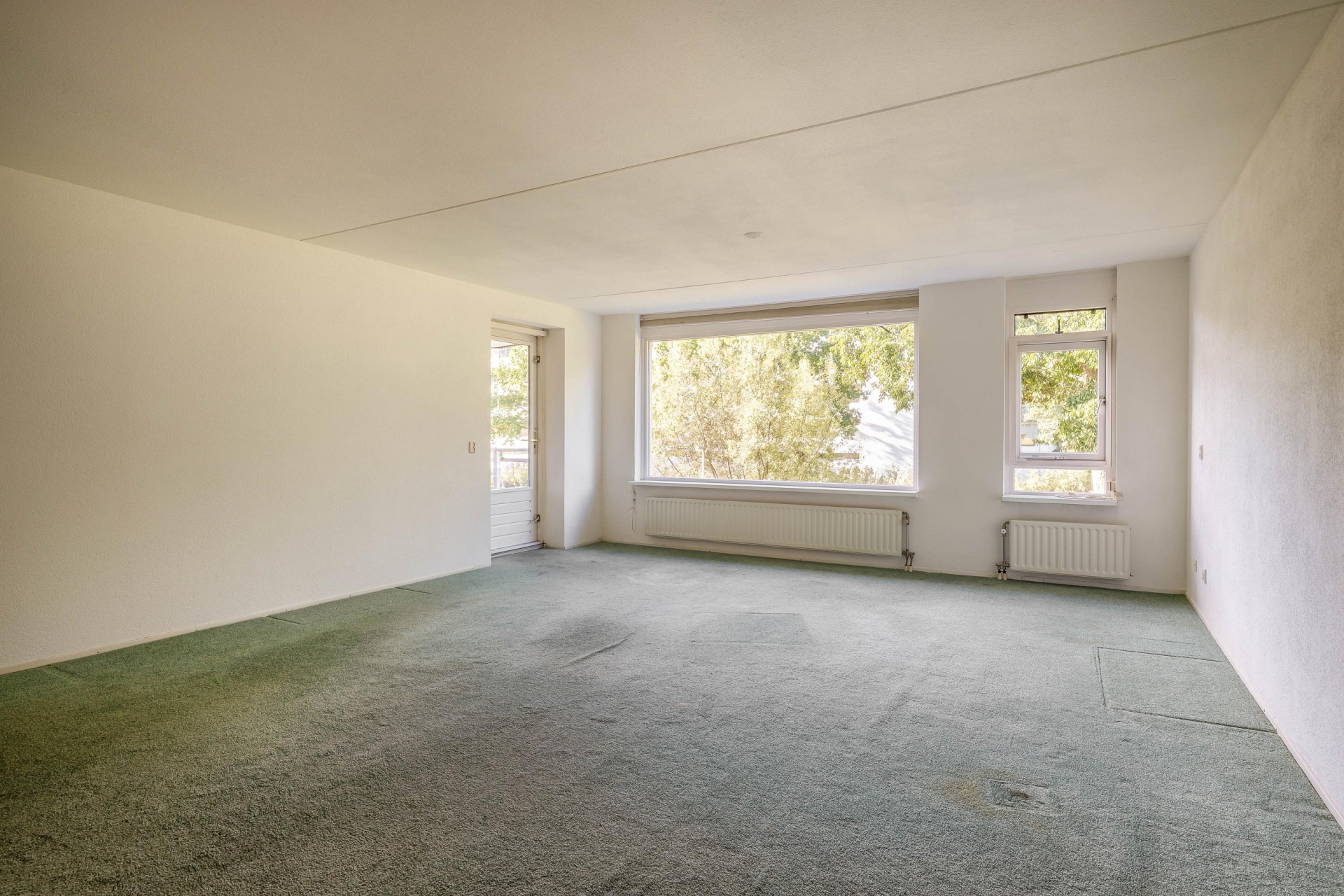De royale woonkamer met grote raampartijen zorgt voor volop daglicht en zicht op het omliggende groen. Je hebt hier ruimte genoeg voor zowel een gezellige zithoek als een ruime eethoek. Vanuit de woonkamer stap je zo het balkon op: zonnig, beschut en gelegen op het zuidwesten.