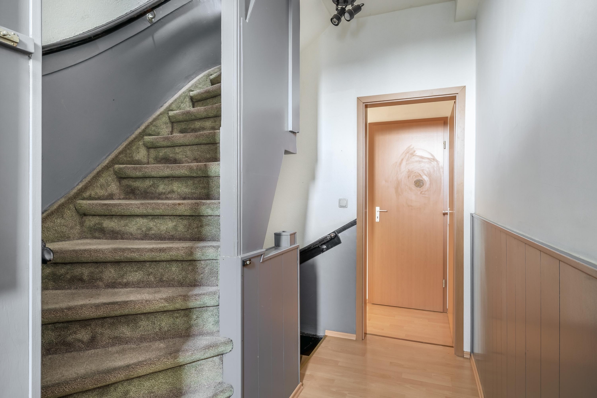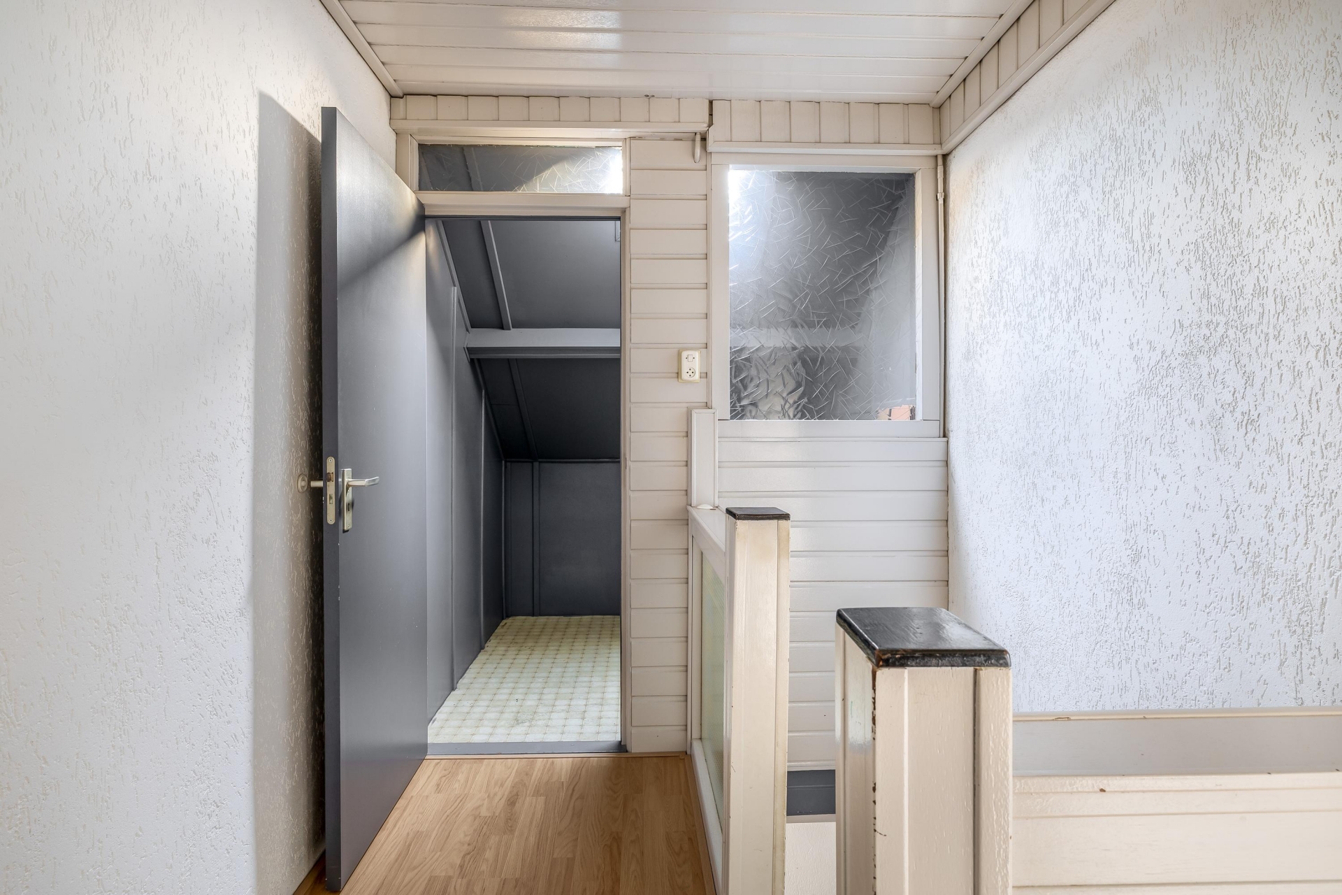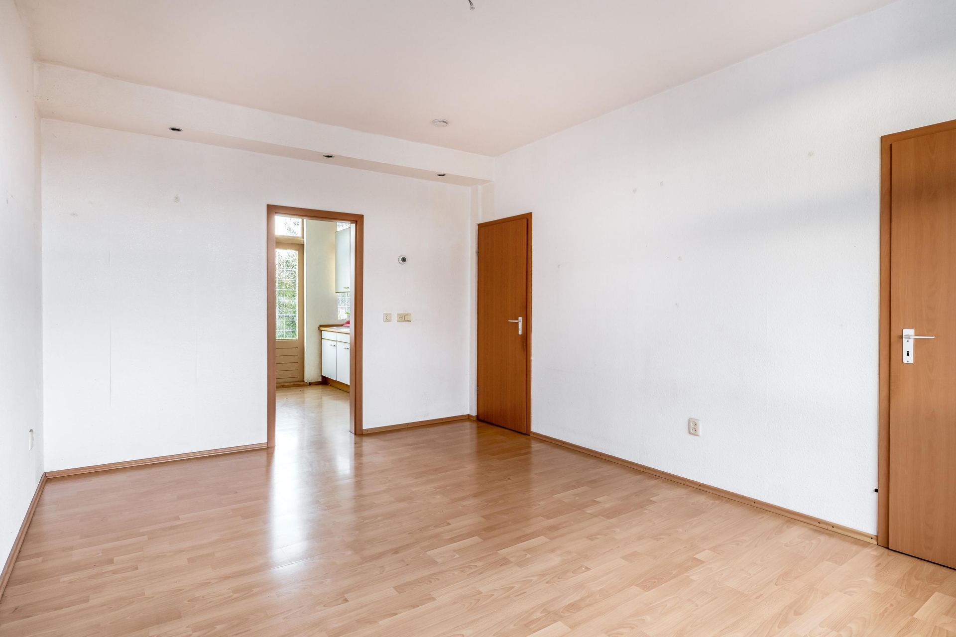 De woonkamer valt direct op door de grote ramen die zorgen voor veel daglicht en een prachtig uitzicht op het water en groen. Dankzij de ruime indeling is er plek voor een royale zithoek én een eethoek. De laminaatvloer en de trapopgang zijn verzorgd afgewerkt, waardoor het geheel een warme en moderne uitstraling krijgt.