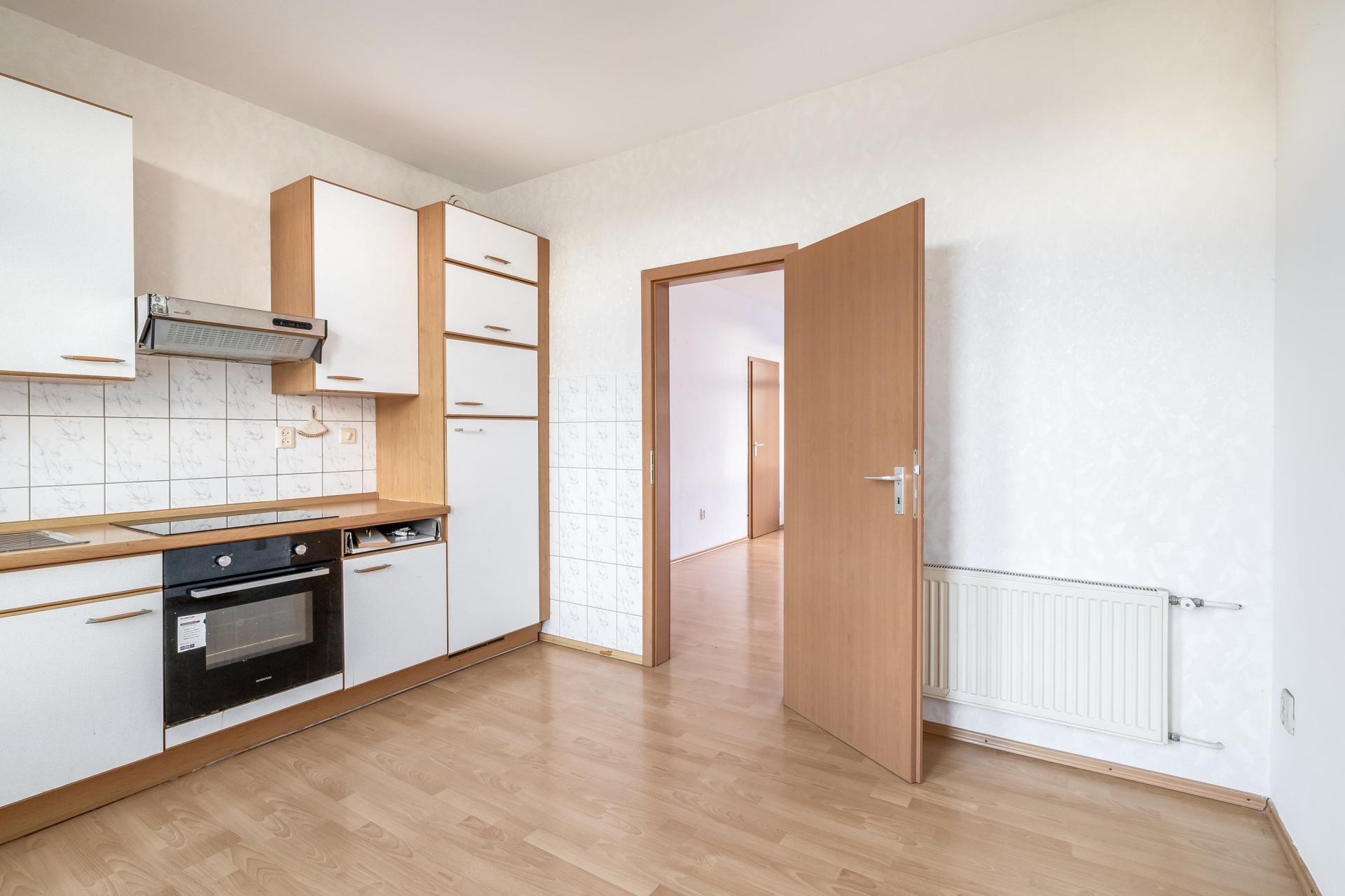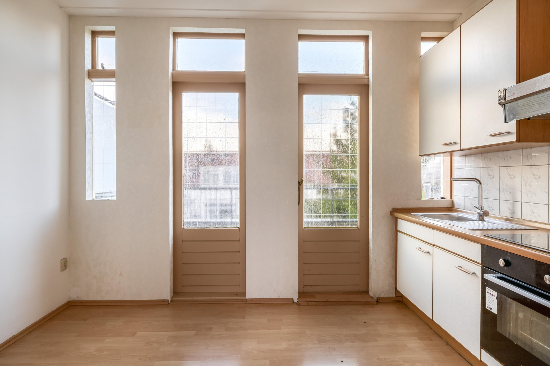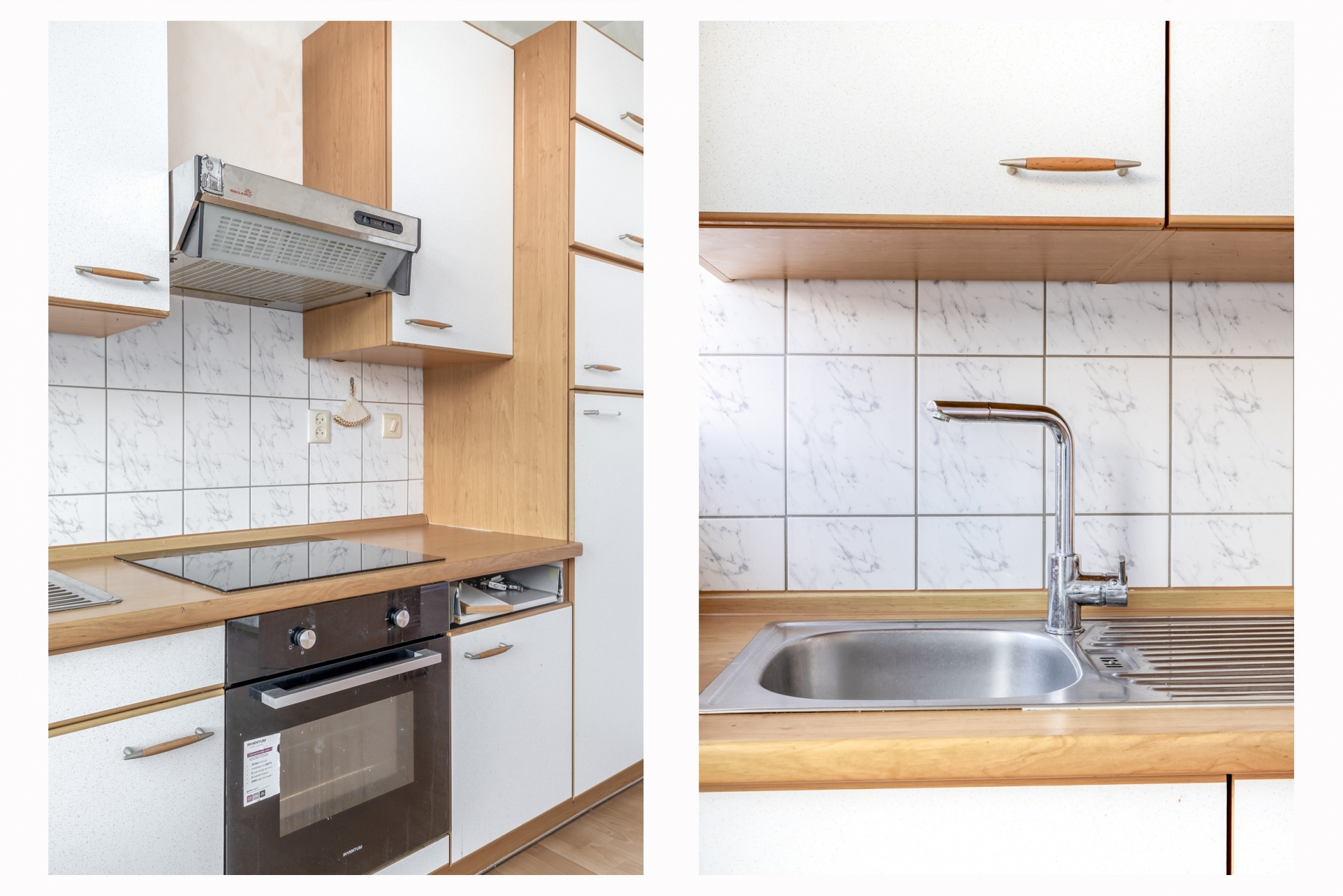 De aparte keuken is praktisch ingedeeld, met veel bergruimte en alles wat je nodig hebt binnen handbereik, waaronder een inductiekookplaat. Vanuit de keuken loop je zo het royale balkon op, een fijne plek om te genieten van de middag- of avondzon en rustig even buiten te zitten. Zo vormt de keuken een praktische en aangename ruimte, met een mooie verbinding naar het buitenleven.