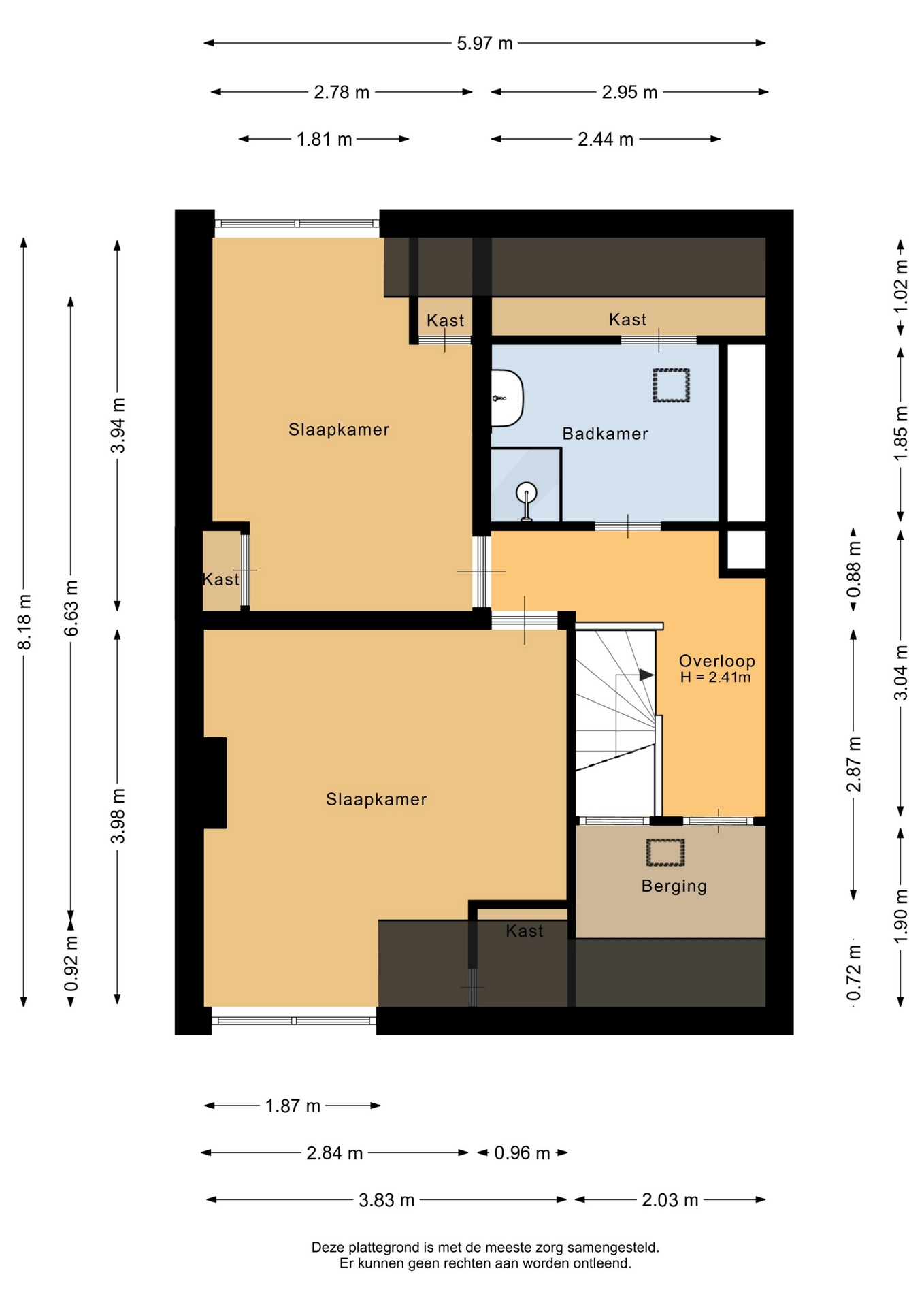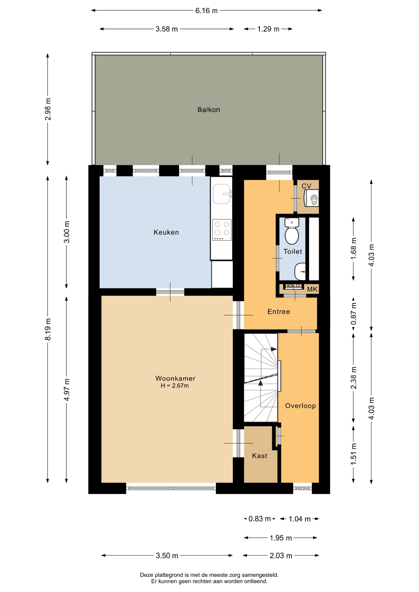 “Deze informatie is door ons met de nodige zorgvuldigheid samengesteld. Onzerzijds wordt echter geen enkele aansprakelijkheid aanvaard voor enige onvolledigheid, onjuistheid of anderszins, dan wel de gevolgen daarvan. Alle opgegeven maten en oppervlakten zijn indicatief.”