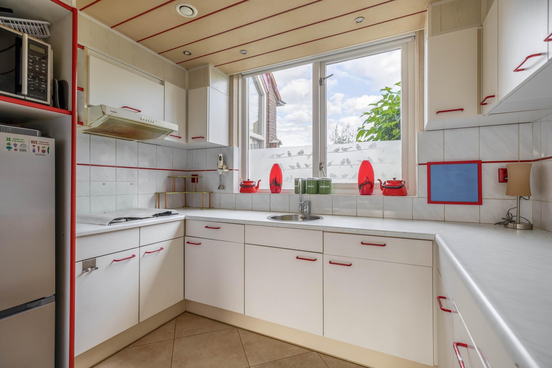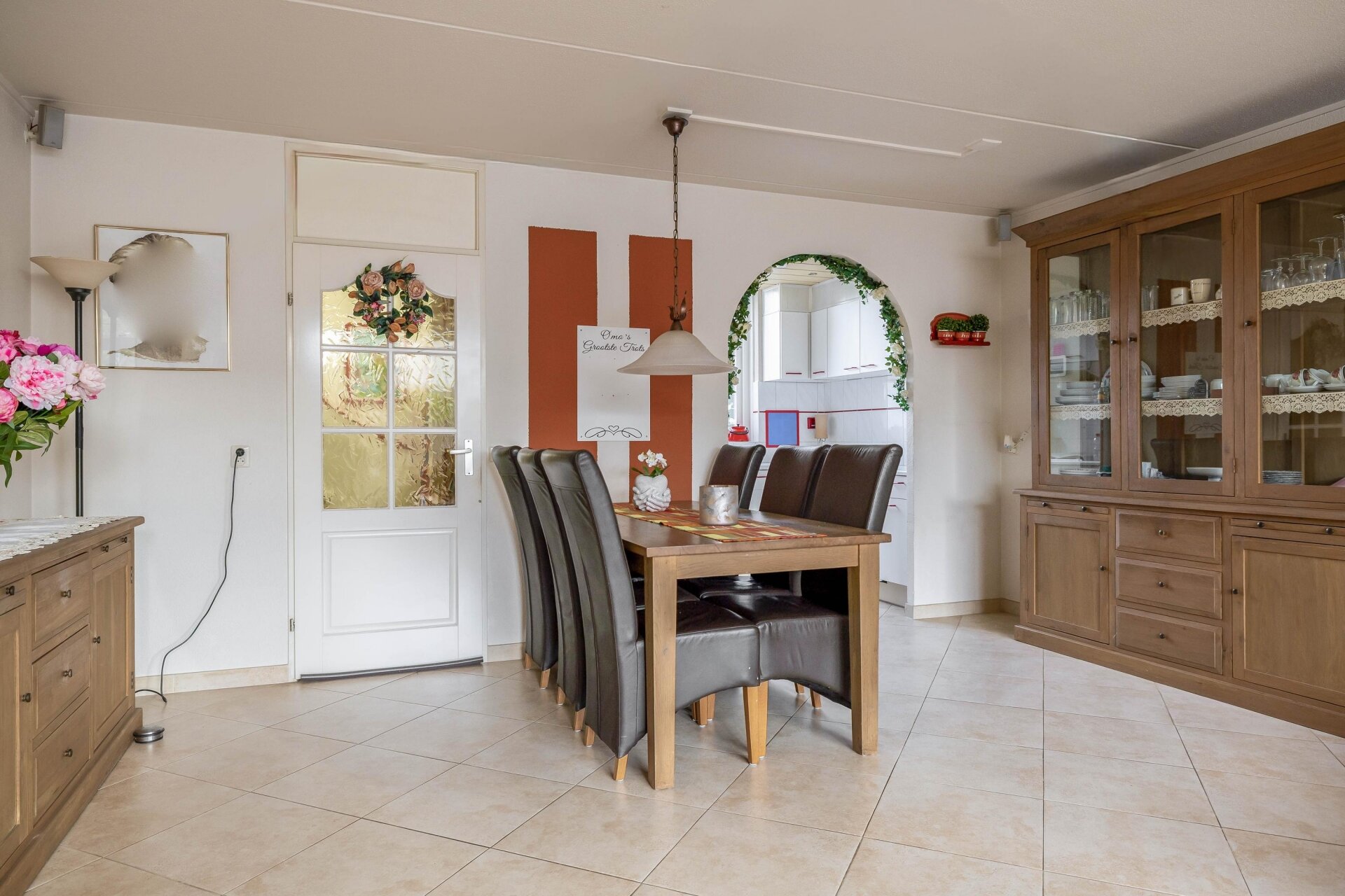 Bij binnenkomst valt direct de ruimte in de woonkamer op. Dankzij de uitbouw aan de achterzijde is er een royale leefruimte ontstaan, met voldoende plek voor zowel een comfortabele zithoek als een grote eettafel. Grote raampartijen zorgen voor een fijne lichtinval en een directe verbinding met de tuin. De half open keuken aan de voorzijde is praktisch ingericht en biedt alles wat je nodig hebt voor dagelijks kookgemak. De begane grond is neutraal afgewerkt, waardoor je hier met relatief eenvoudige ingrepen je eigen stijl kunt toevoegen.