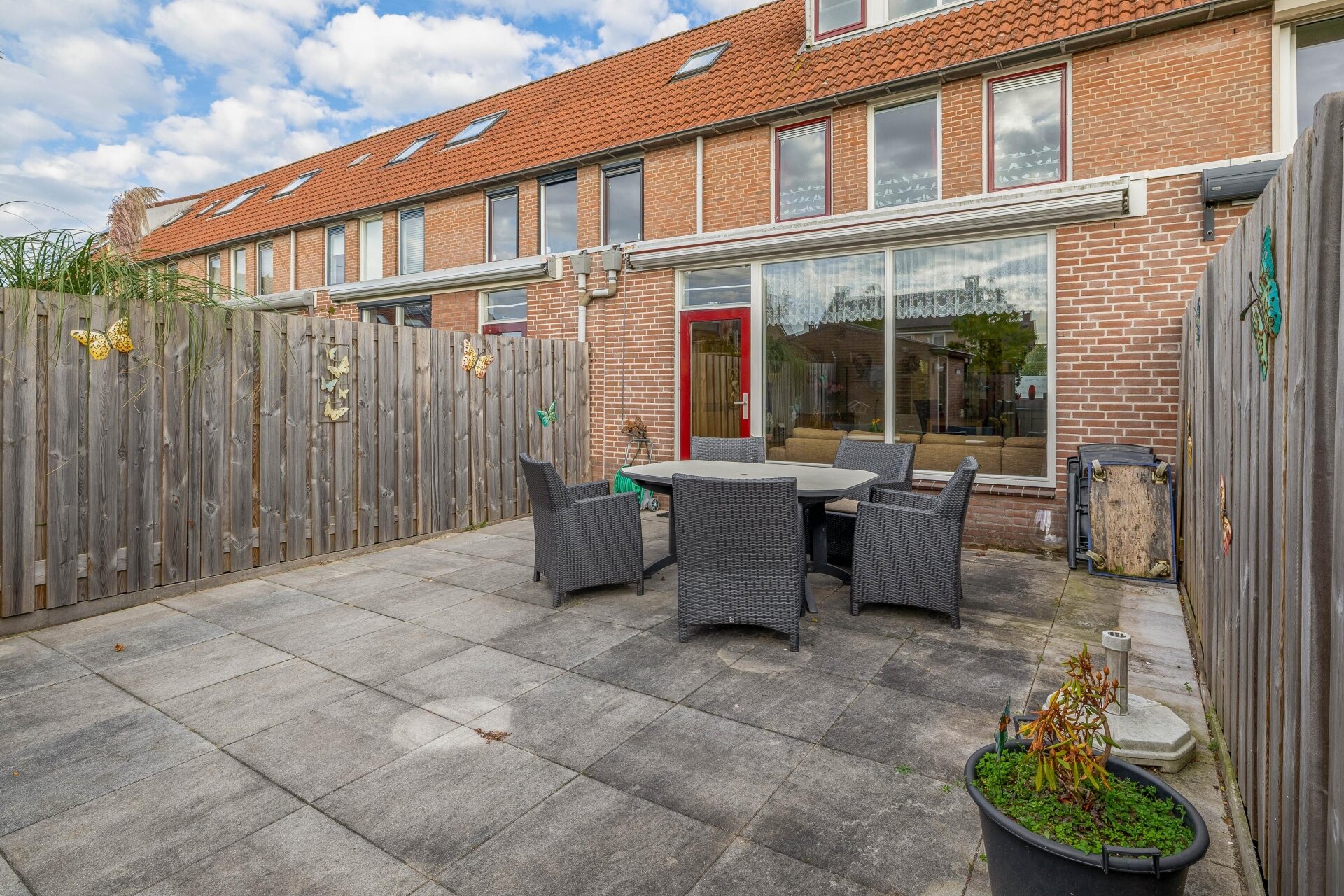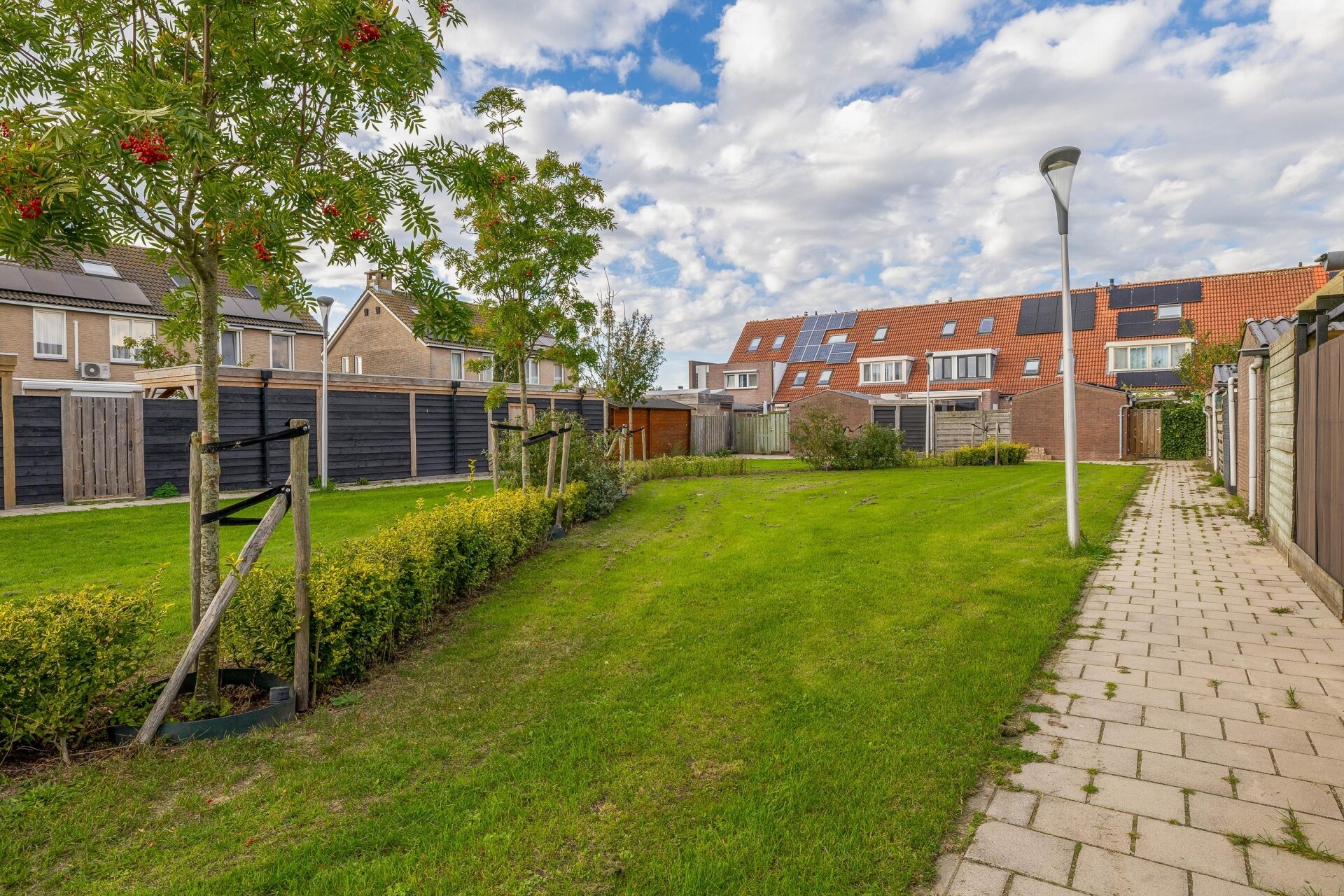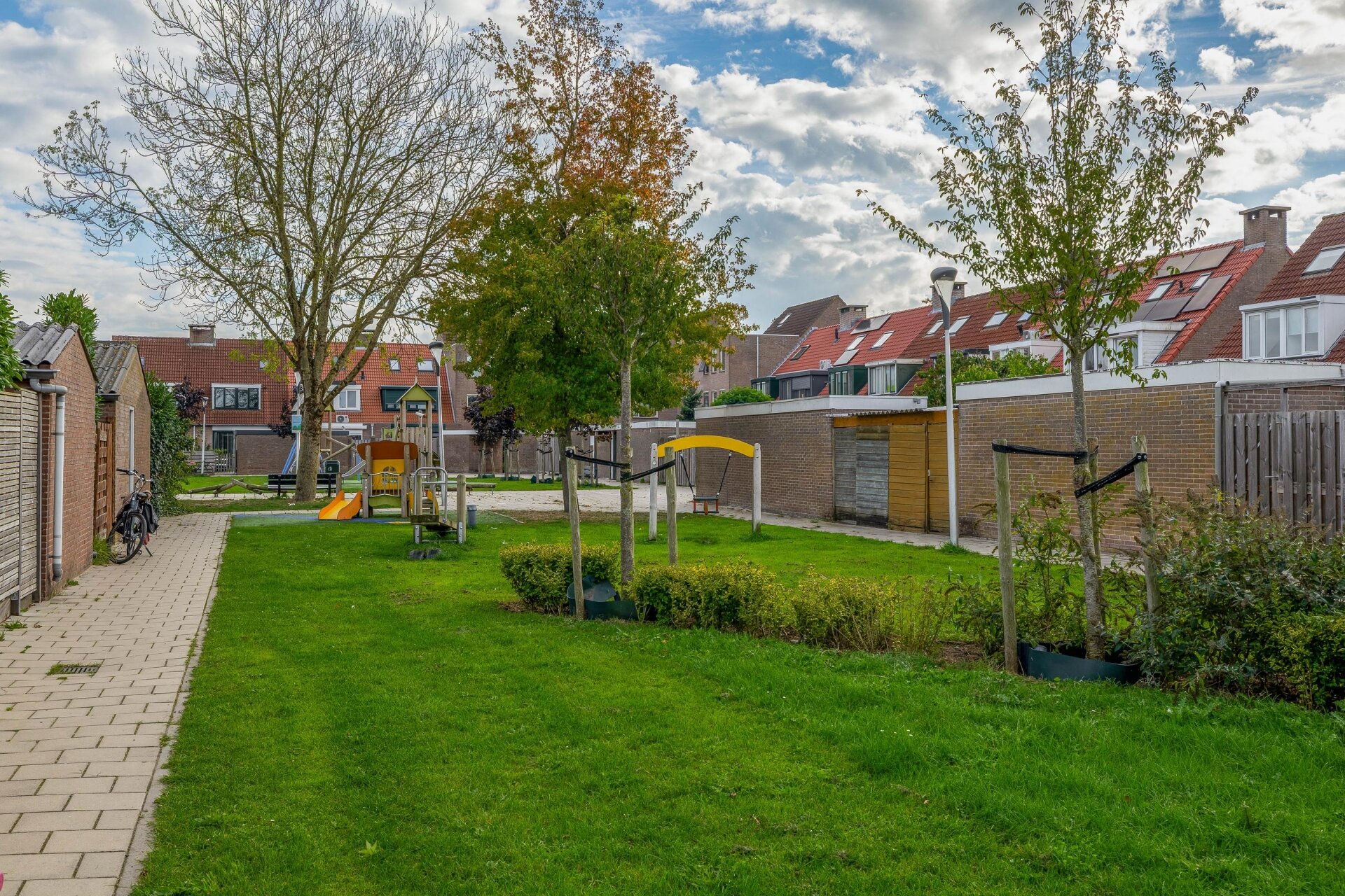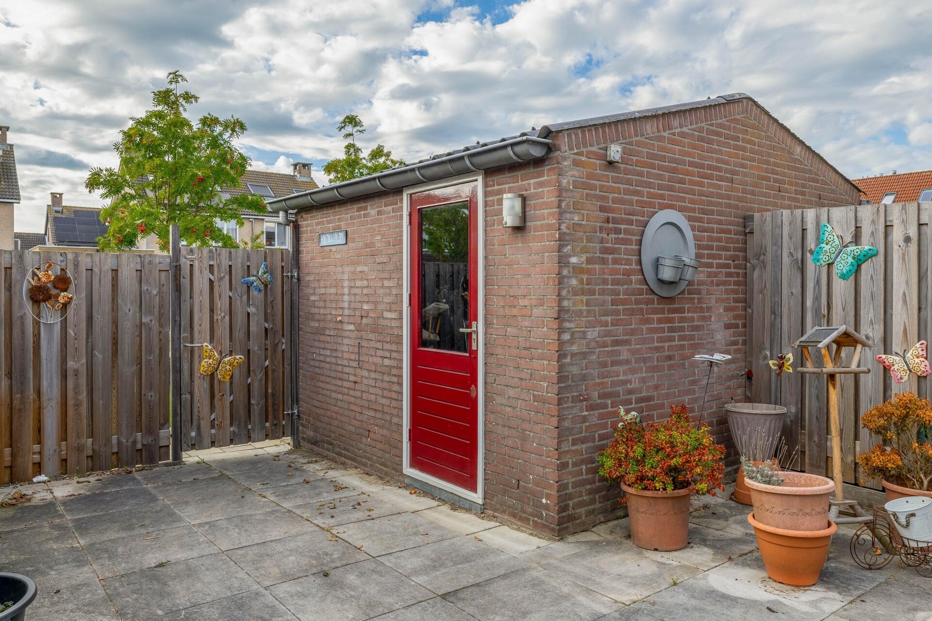 Een groot pluspunt van dit huis is de zonnige achtertuin. Dankzij de westelijke ligging geniet je hier volop van de middag- en avondzon. De tuin is onderhoudsvrij aangelegd met bestrating. Achter in de tuin staat een stenen berging voor fietsen en tuingereedschap, en via de handige achterom ben je zo weer op straatniveau. De tuin biedt voldoende ruimte voor een loungeset, een trampoline of een kleine moestuin – net wat bij jouw wensen past.