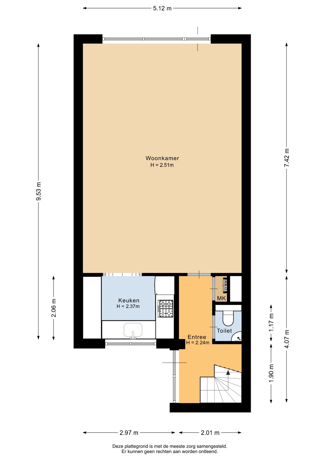 “Deze informatie is door ons met de nodige zorgvuldigheid samengesteld. Onzerzijds wordt echter geen enkele aansprakelijkheid aanvaard voor enige onvolledigheid, onjuistheid of anderszins, dan wel de gevolgen daarvan. Alle opgegeven maten en oppervlakten zijn indicatief.”