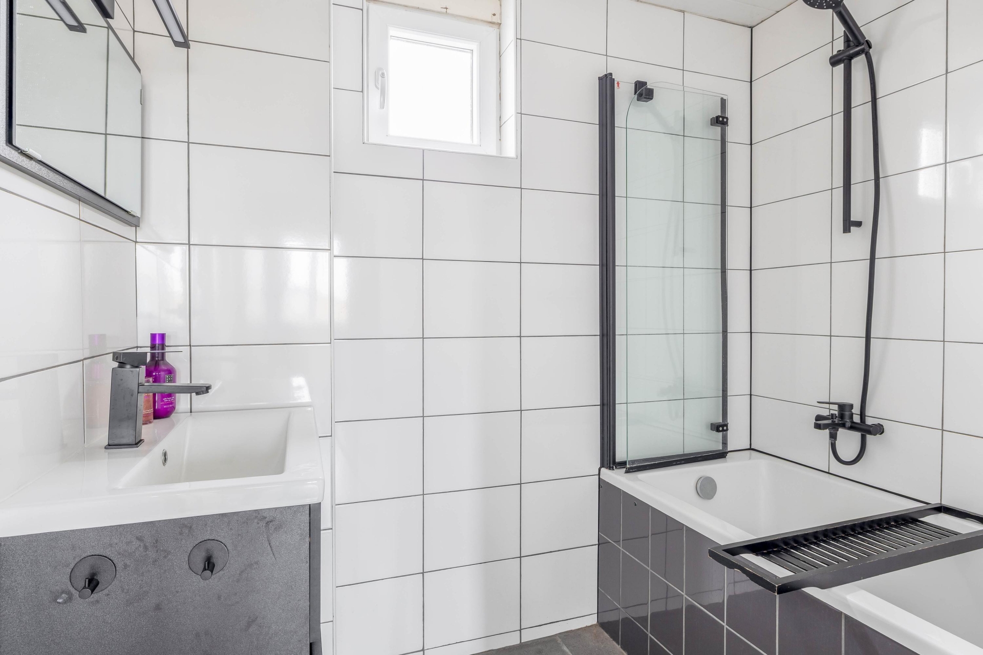 De badkamer ligt centraal op de verdieping en is voorzien van een douche en wastafel. De indeling is praktisch en alles wat je nodig hebt is aanwezig.