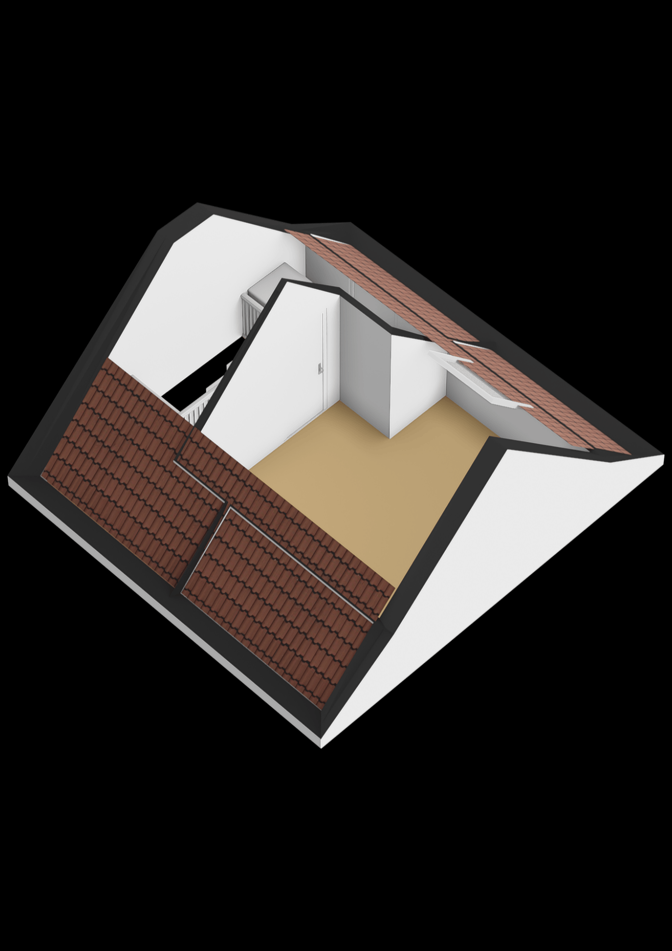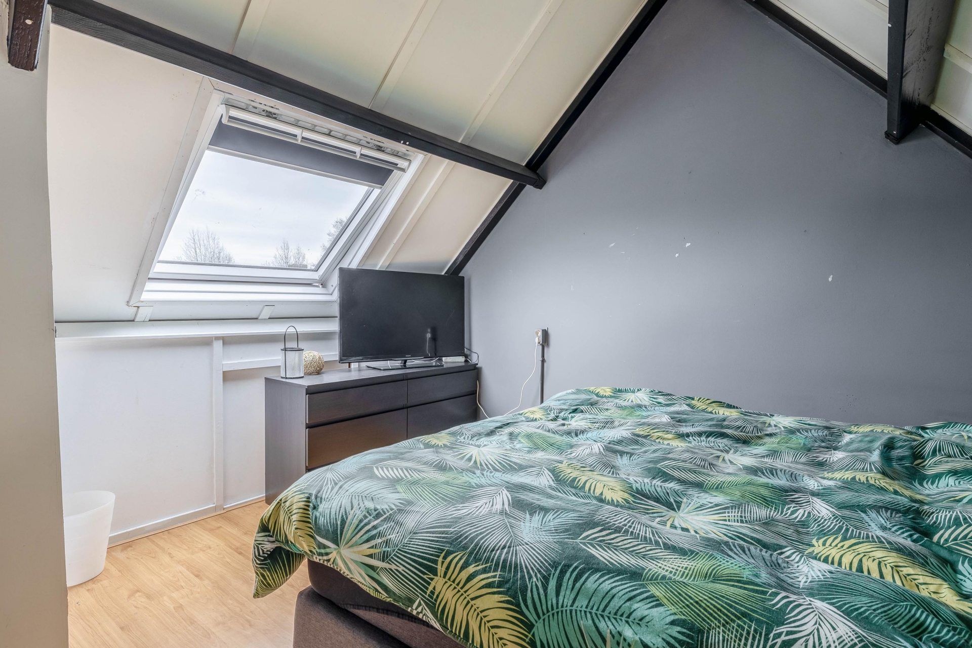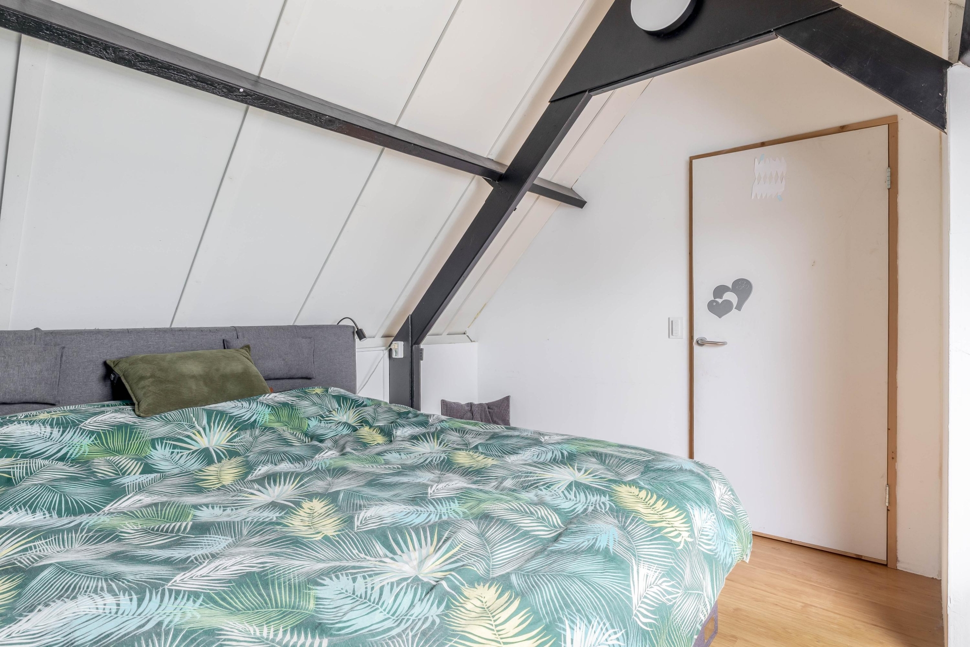 De tweede verdieping is een echte aanvulling op het huis. Hier vind je een ruime zolderkamer die uitstekend te gebruiken is als vierde slaapkamer, werkruimte of hobbykamer. Dankzij de slimme indeling en de bergruimte achter de knieschotten is dit een volwaardige en goed bruikbare verdieping.