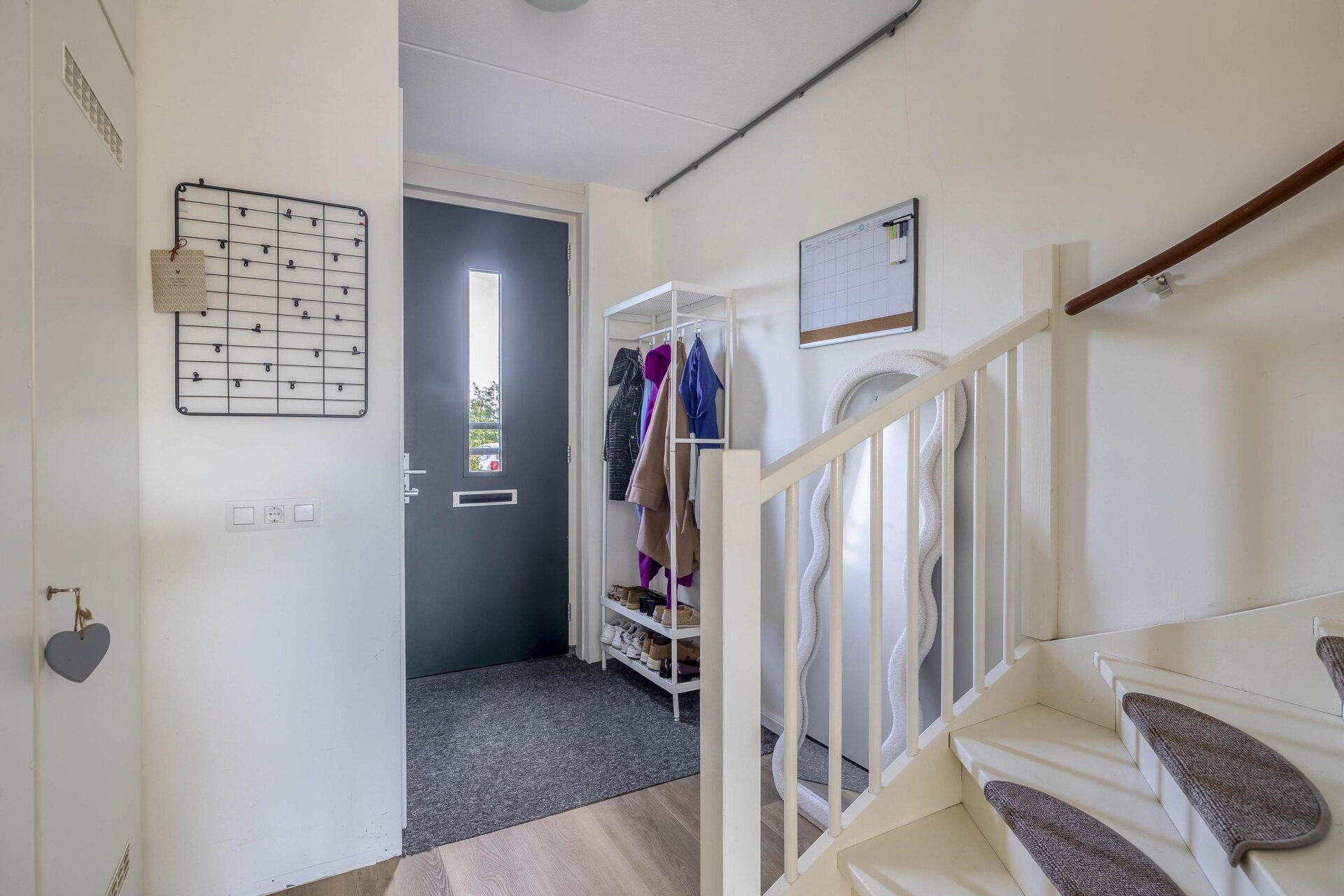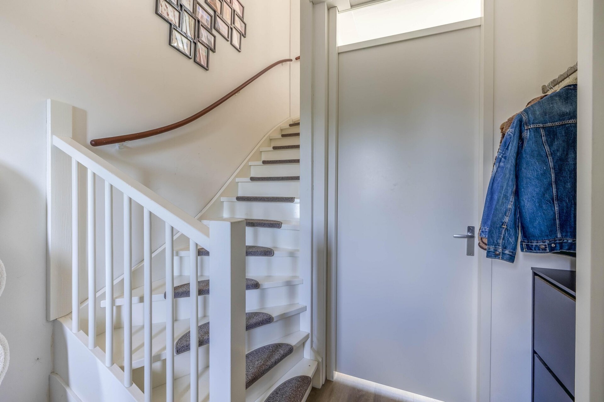 We komen binnen in de royale gang met toilet, meterkast en trapopgang naar de 1e verdieping.