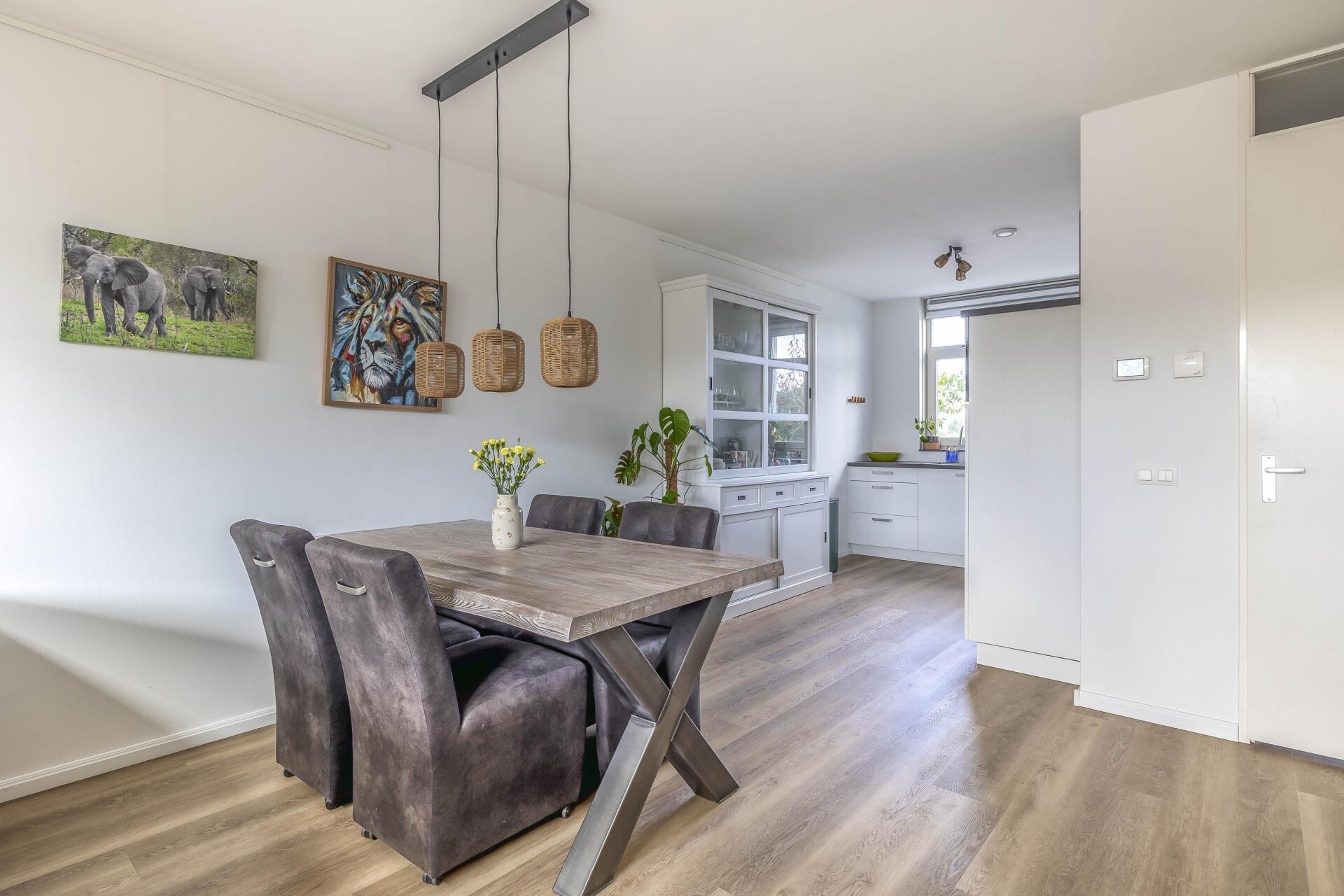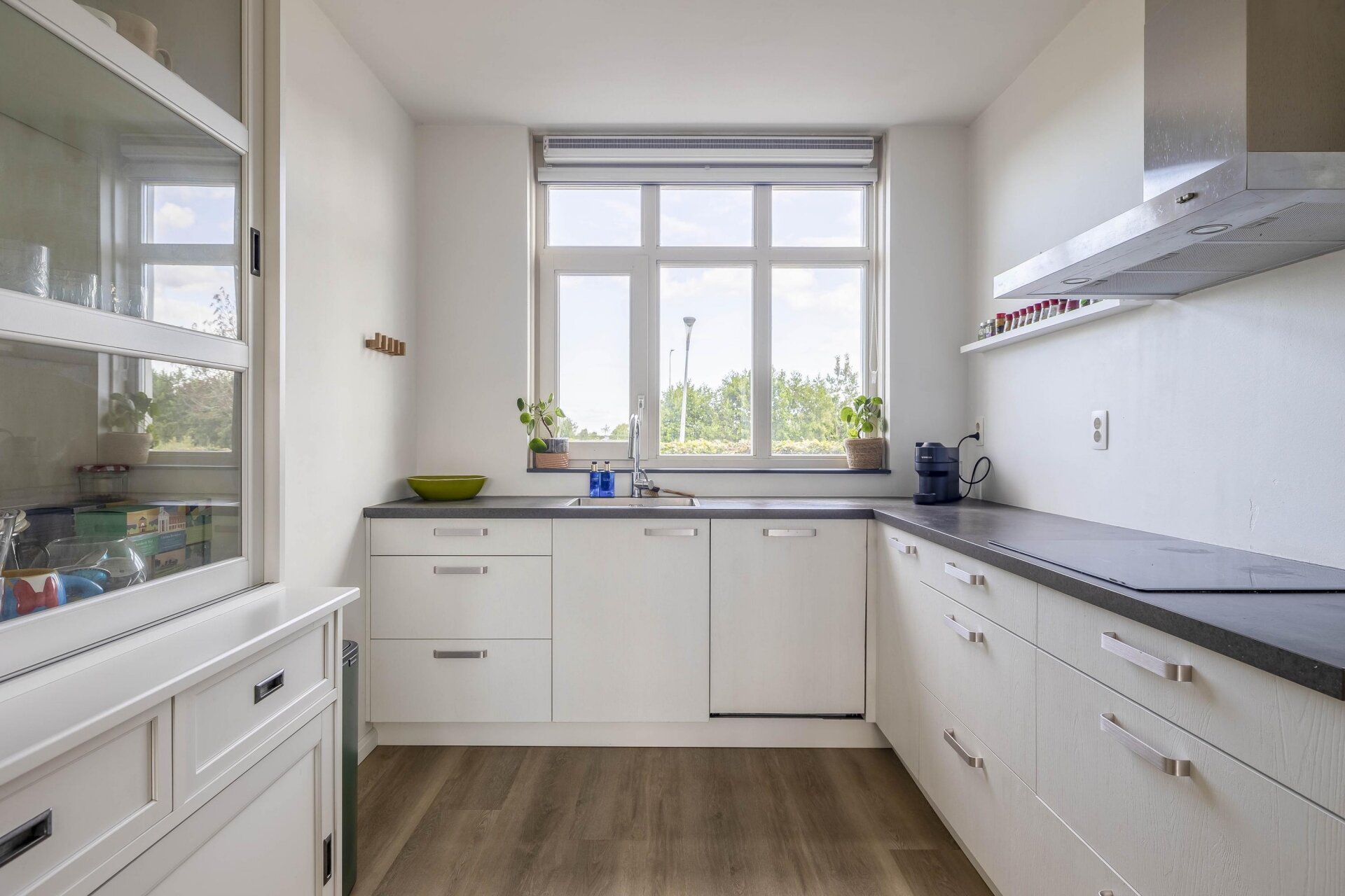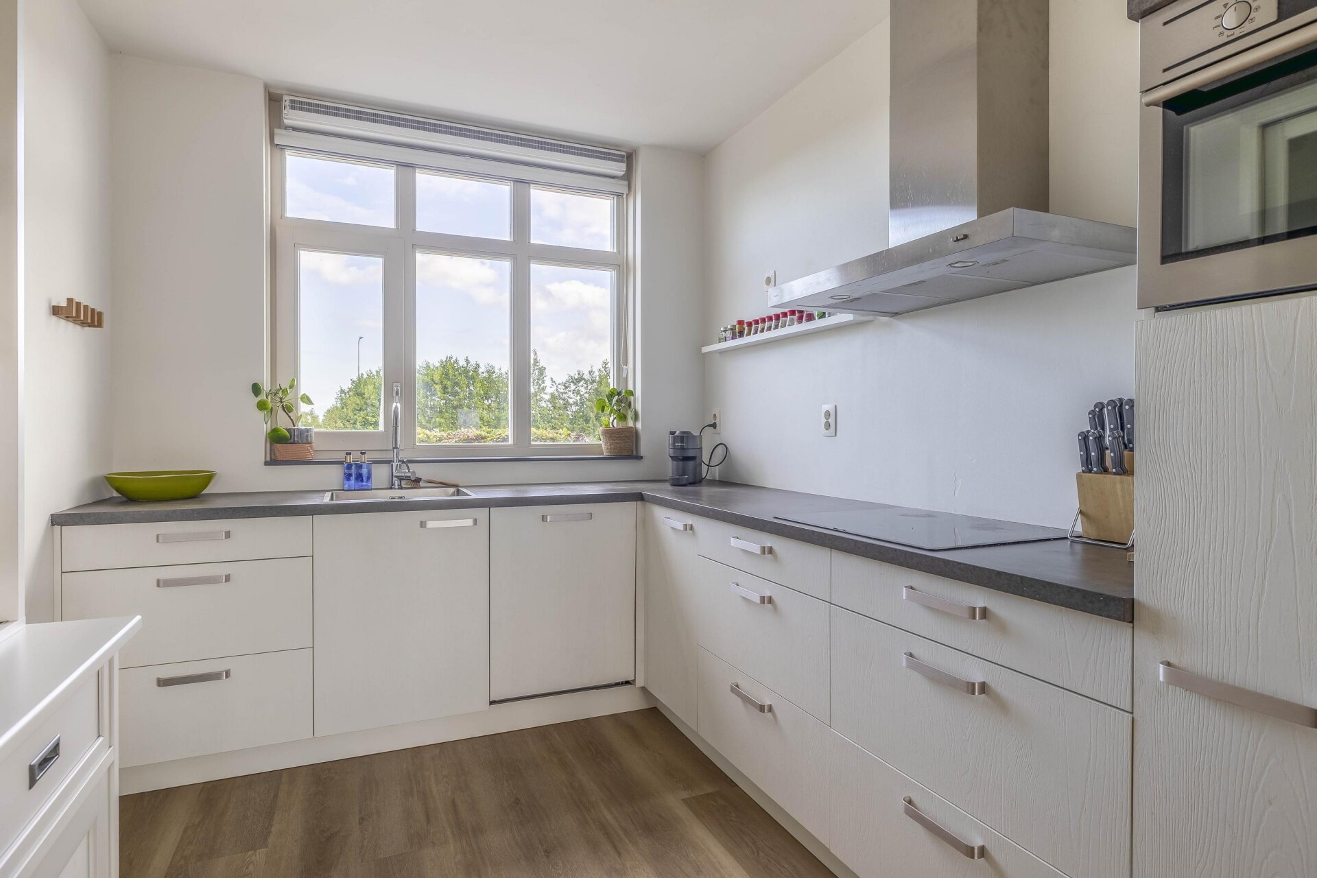 De uitgebouwde woonkamer aan de achterzijde van de woning is een hele fijne lichte plek. Dankzij de lichtkoepel en de openslaande deuren naar de tuin geeft dit een prettige verbinding met buiten. De zithoek is royaal genoeg voor een grote hoekbank en biedt tegelijk een knusse sfeer. De keuken ligt aan de voorzijde met zicht op de straat heeft een praktische indeling met voldoende werk- en bergruimte, ideaal voor wie van koken houdt en is voorzien van diverse inbouwapparatuur waaronder een vaatwasser, inductiekookplaat, koelvriescombinatie en combi oven.
