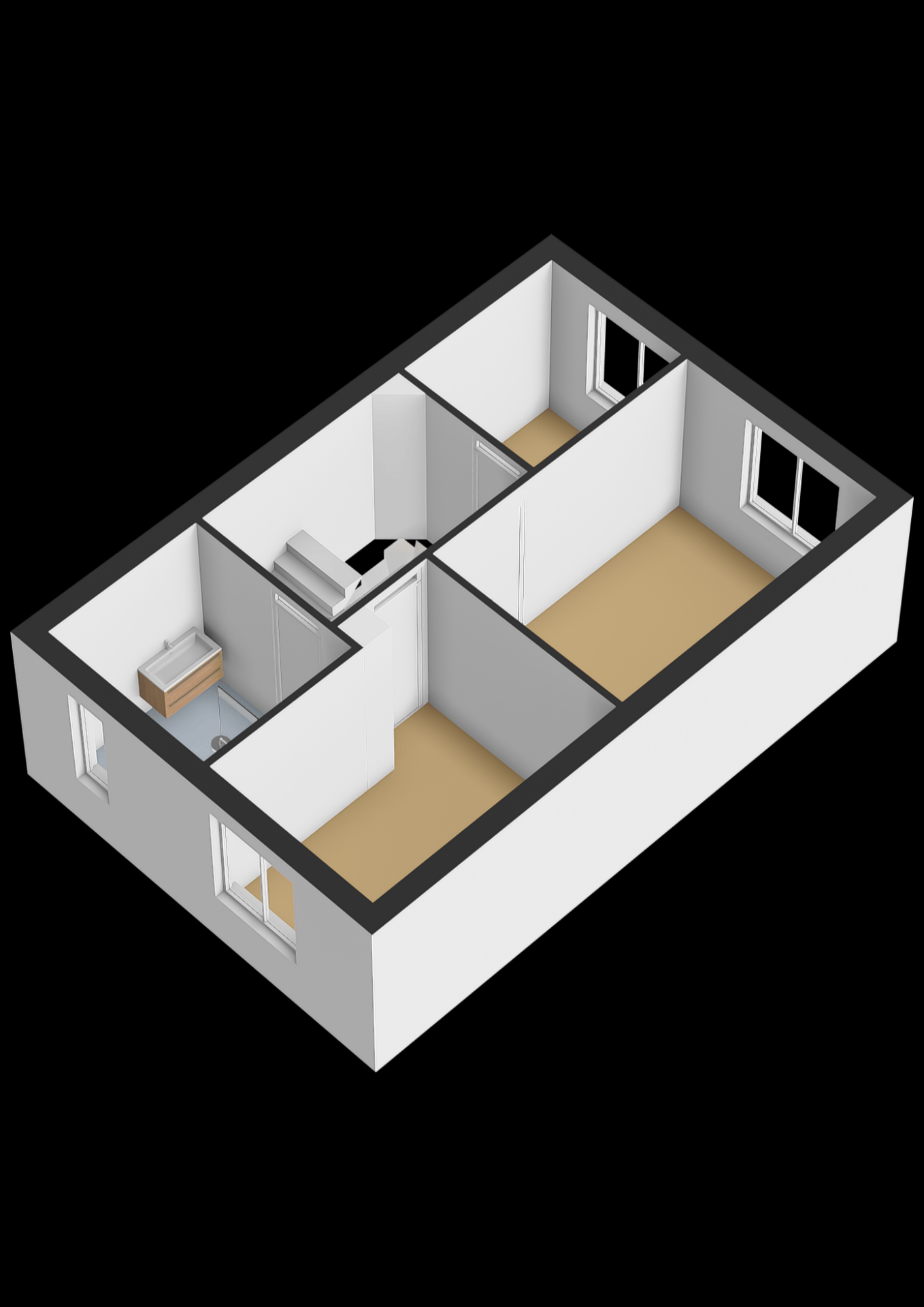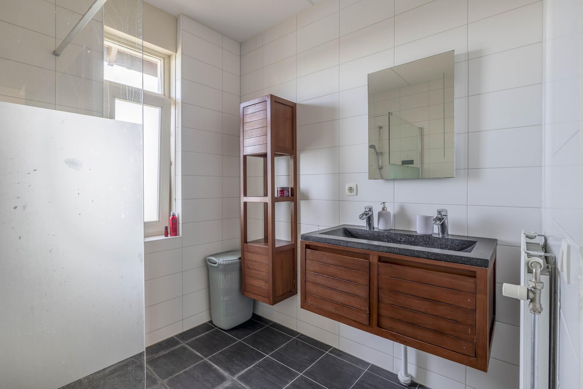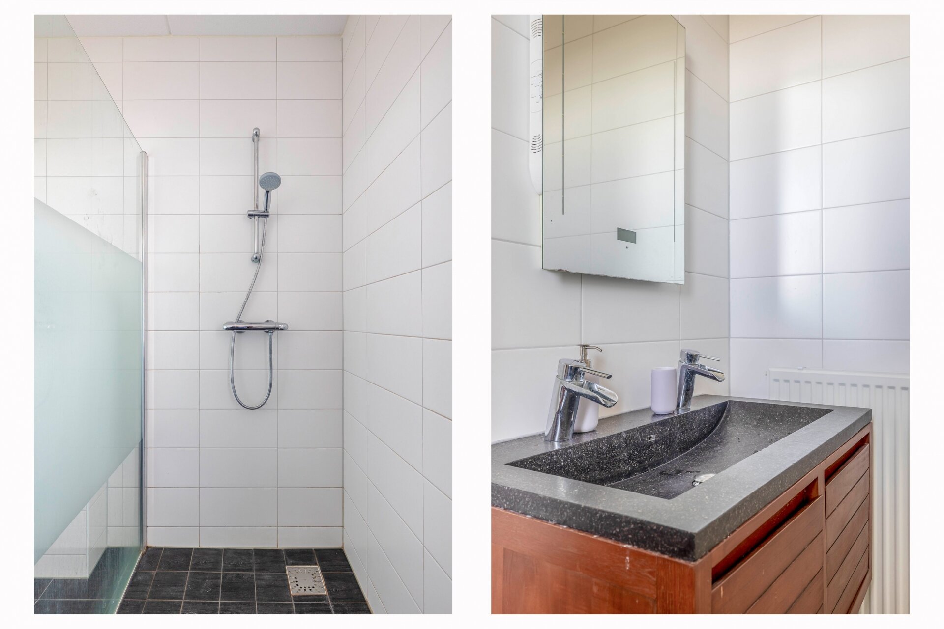 Op de 1e verdieping vind je 3 slaapkamers van goed formaat. De grootste kamer is ideaal als master bedroom, de andere twee zijn prima geschikt als kinderkamer of werkkamer. De getegelde badkamer is modern uitgevoerd en voorzien van een douche, dubbele wastafel met meubel en tweede toilet.