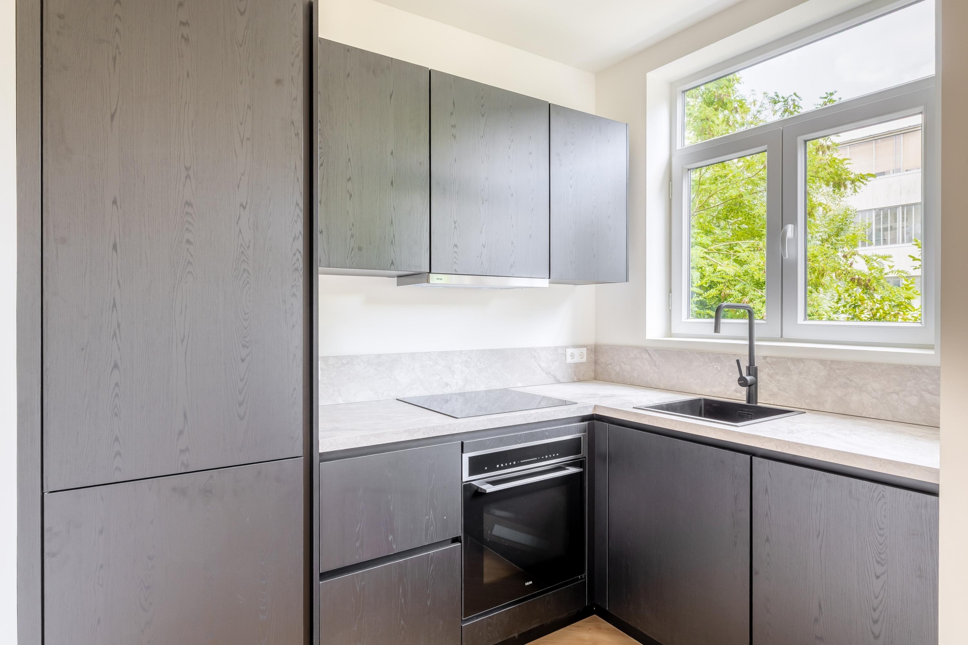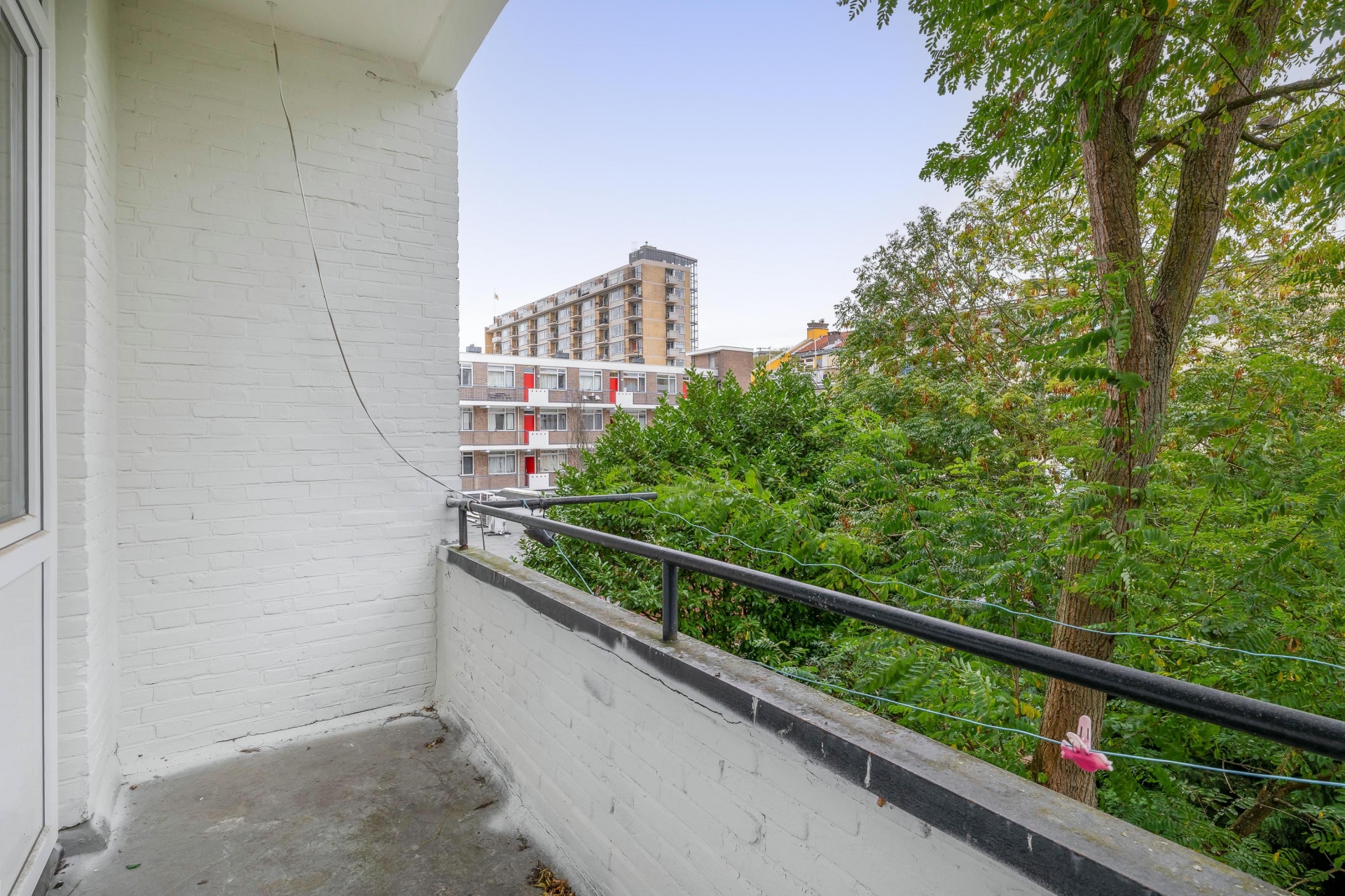 Aan de voorzijde ligt een frans balkon op het westen. Met de deur open, kun je nog van de laatste zonnestralen genieten. Aan de achterkant vind je een tweede balkon op het zuidoosten, perfect voor je eerste kop koffie in de ochtendzon.