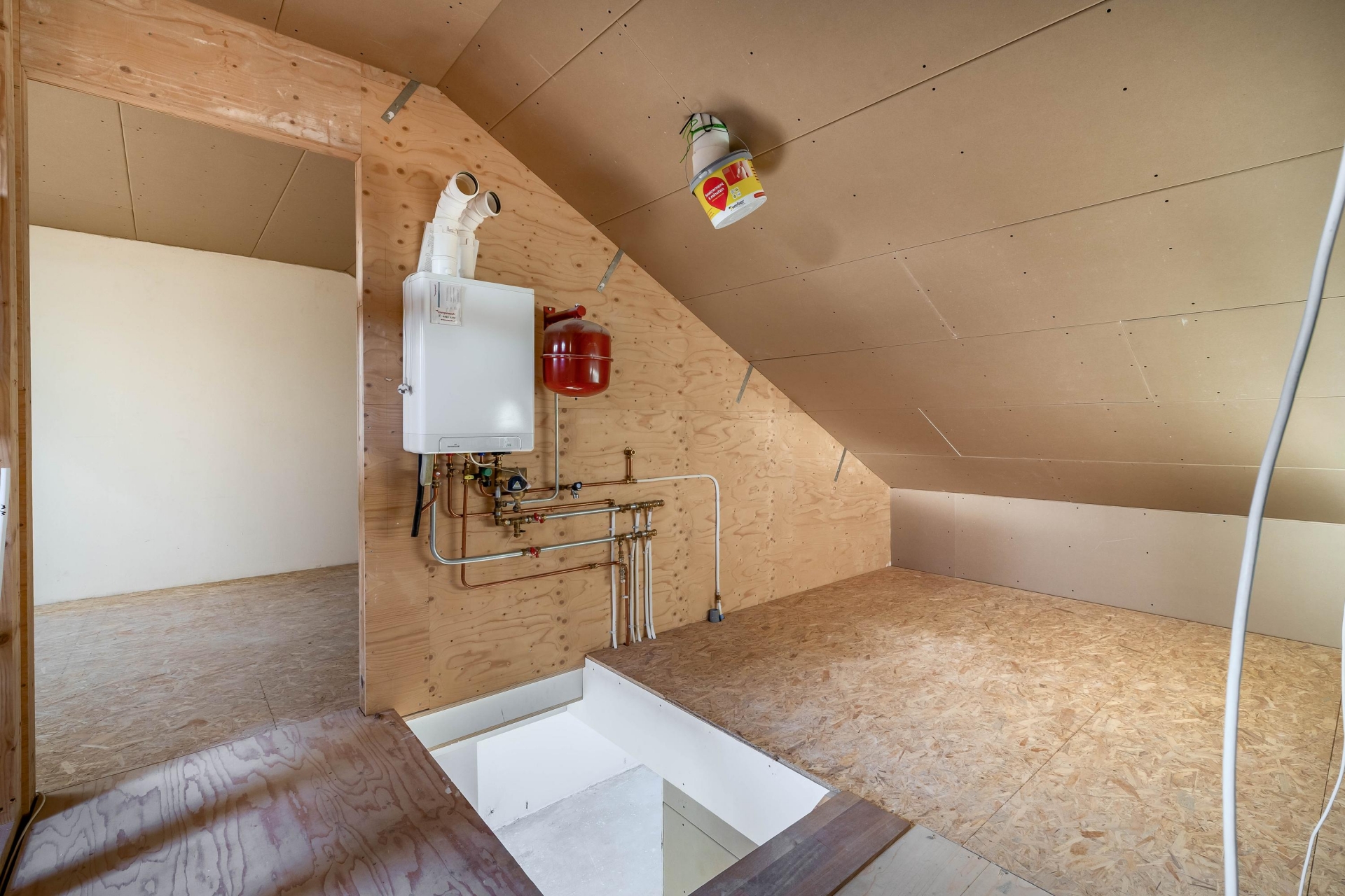 Via de trap bereikt u de bovengelegen verdieping met een ruime slaapkamer, een tweede kamer (ideaal als extra slaapkamer of werkkamer) en een overloop met CV-opstelling. De zolderverdieping biedt volop kansen: hier kan eenvoudig nog een volwaardige slaapkamer én eventueel een werk- of wasruimte worden gerealiseerd. Dit maakt de woning bijzonder geschikt voor gezinnen of thuiswerkers.