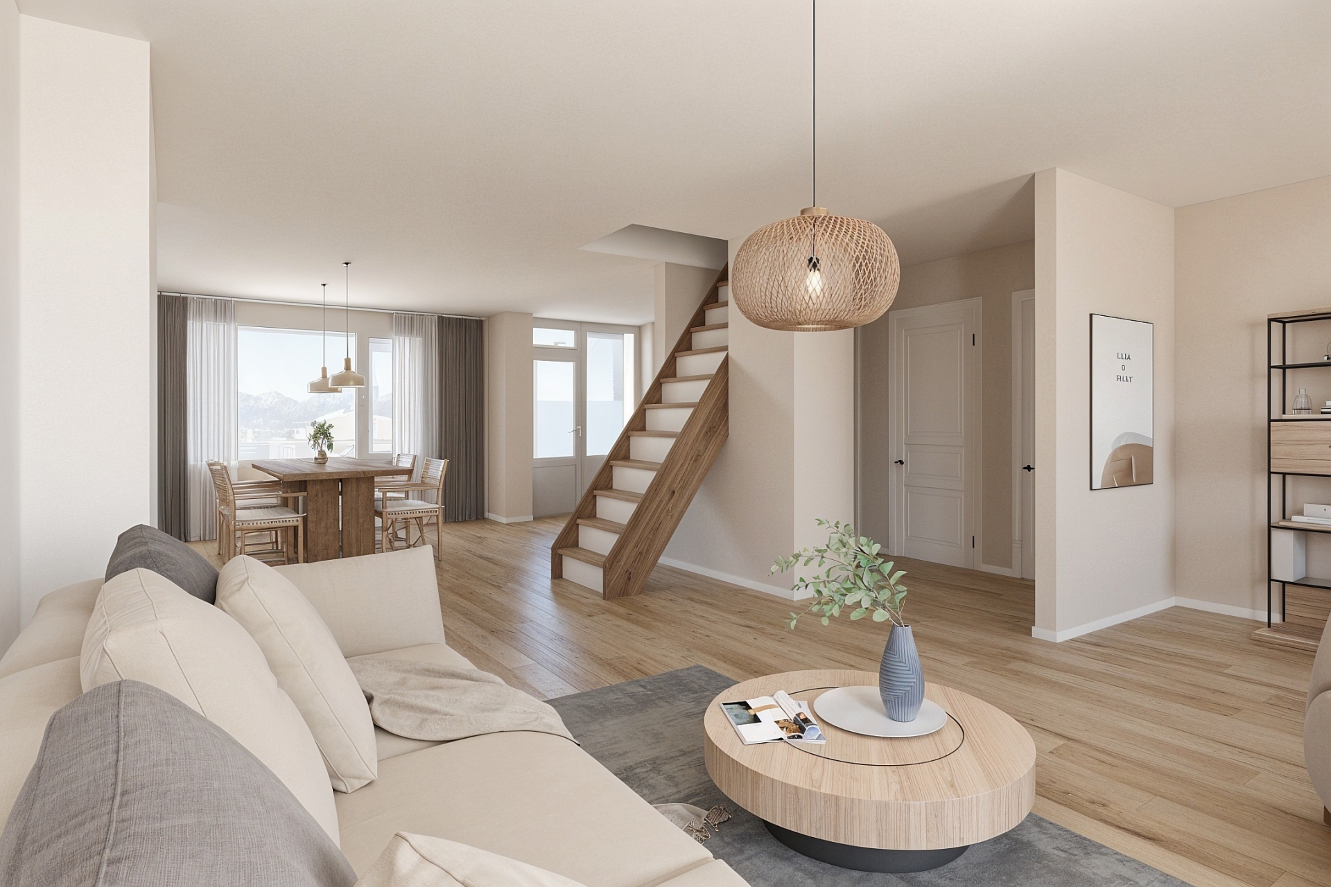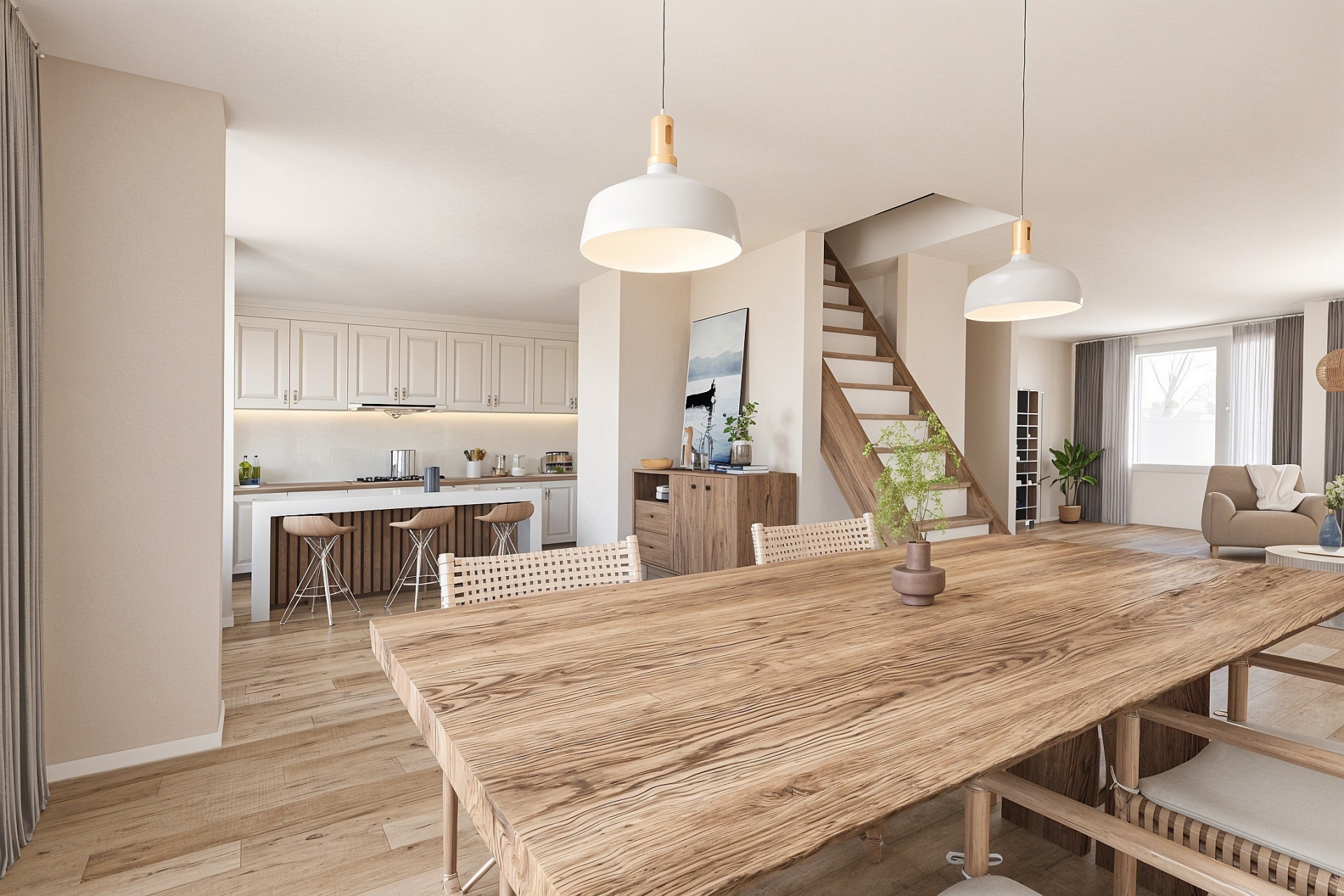 De woning beschikt over een grote, open woonverdieping met volop mogelijkheden voor een royale woonkamer en aparte eetkamer. Vanuit de woonkamer heeft u toegang tot twee balkons, aan zowel de voor(NW)- als achterzijde(ZO). De keuken is eenvoudig, maar biedt een uitstekende basis voor een moderne upgrade. Daarnaast vindt u hier een separaat toilet.