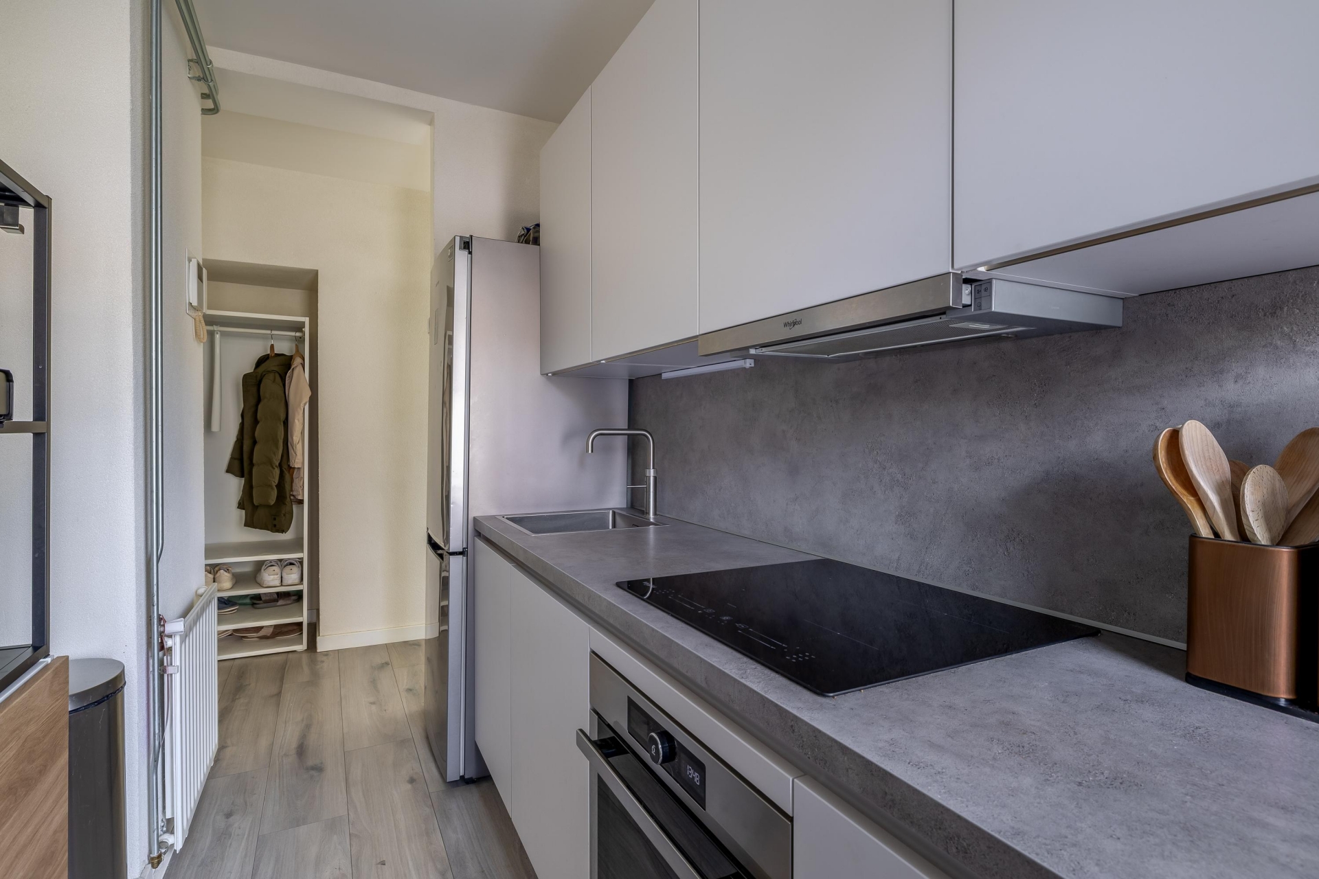 De indeling is praktisch en overzichtelijk, met een fijne doorloop naar de rest van het appartement. Alles is logisch ingedeeld, waardoor het huis prettig aanvoelt en optimaal wordt benut.