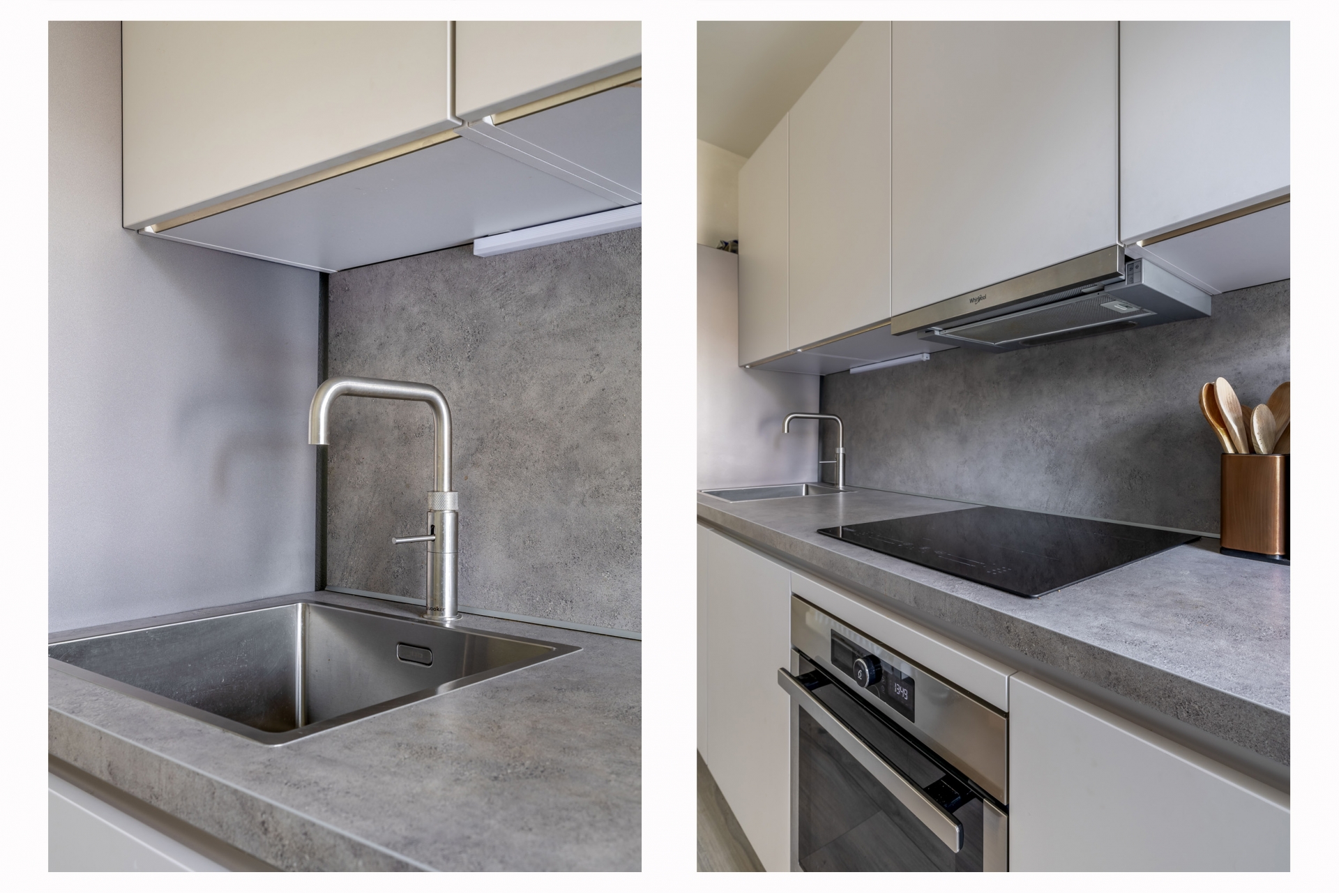 De keuken is in 2023 vernieuwd en uitgevoerd in een moderne, neutrale stijl. Hier heb je alles bij de hand om lekker te koken: een strak werkblad, inbouwapparatuur en voldoende kastruimte. Vanuit de keuken heb je direct toegang tot de tuin, wat het extra praktisch maakt.