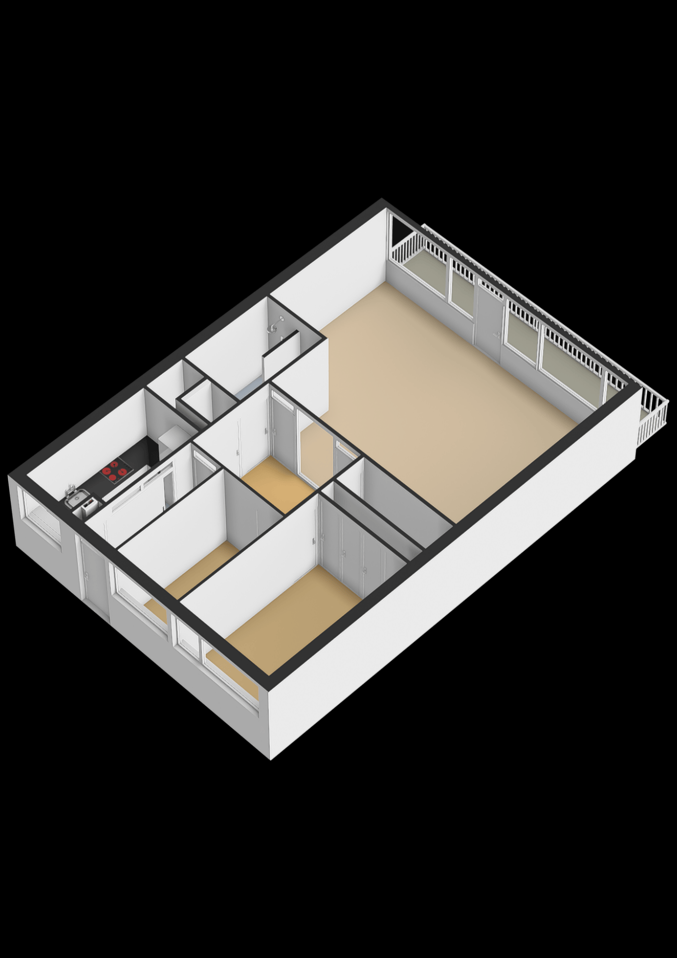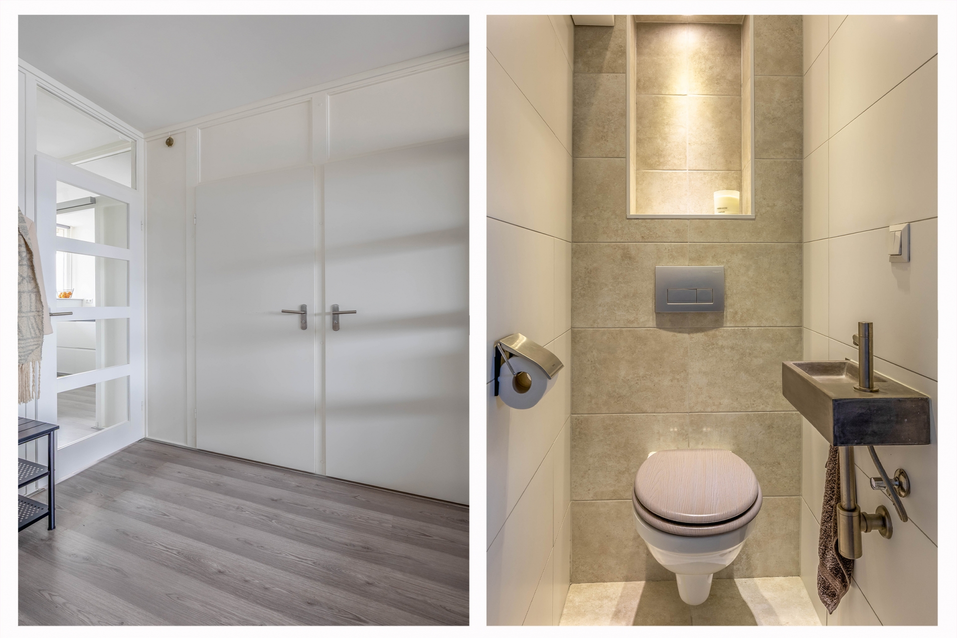 Het appartement beschikt over twee slaapkamers aan de voorzijde, van circa 6 m² en 10 m². De grootste kamer heeft bovendien een praktische vaste kast. In de hal bevindt zich nog een extra berging, waardoor je aan opbergruimte geen gebrek hebt.