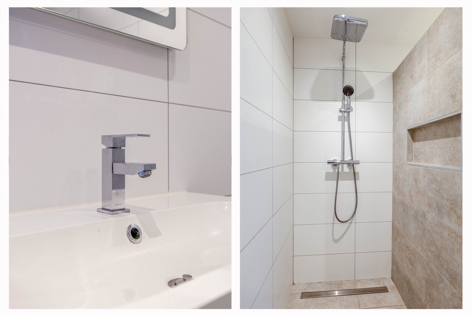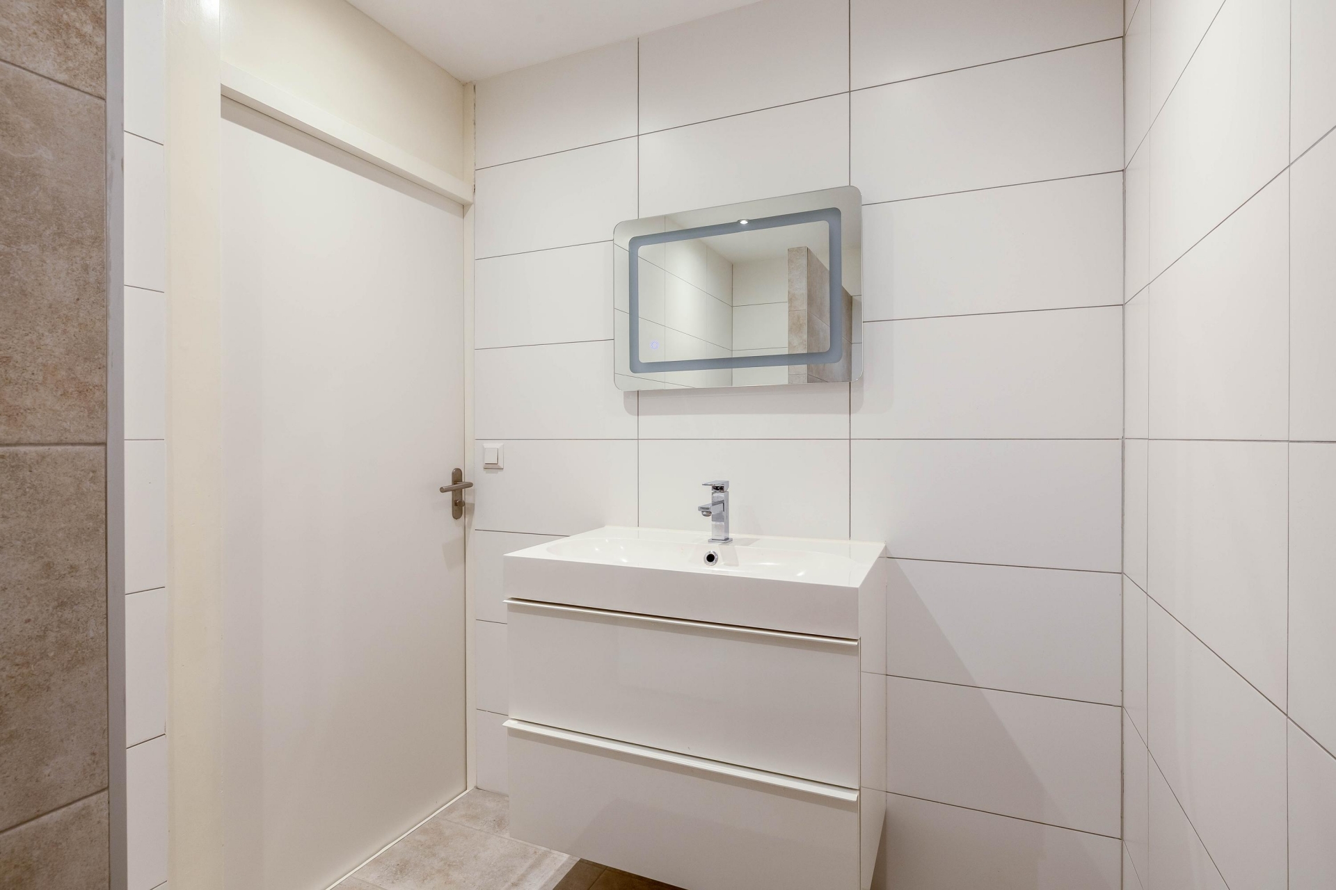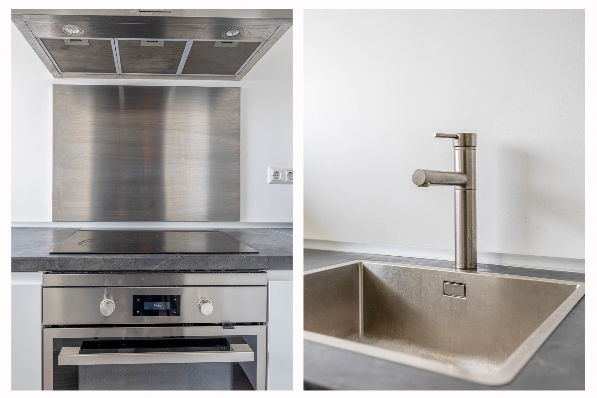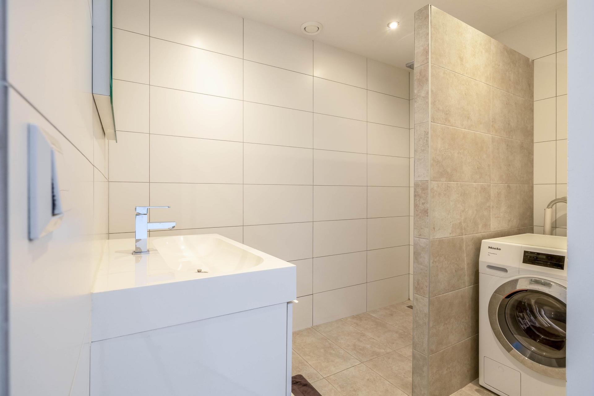 De moderne keuken heeft een matte, rustige uitstraling en is uitgerust met handige werkbladen en alle benodigde inbouwapparatuur. Ook de badkamer sluit naadloos aan op deze stijl: luxe betegeld en voorzien van een inloopdouche, wastafelmeubel en aansluiting voor de wasmachine. Alles is strak afgewerkt en direct gebruiksklaar.