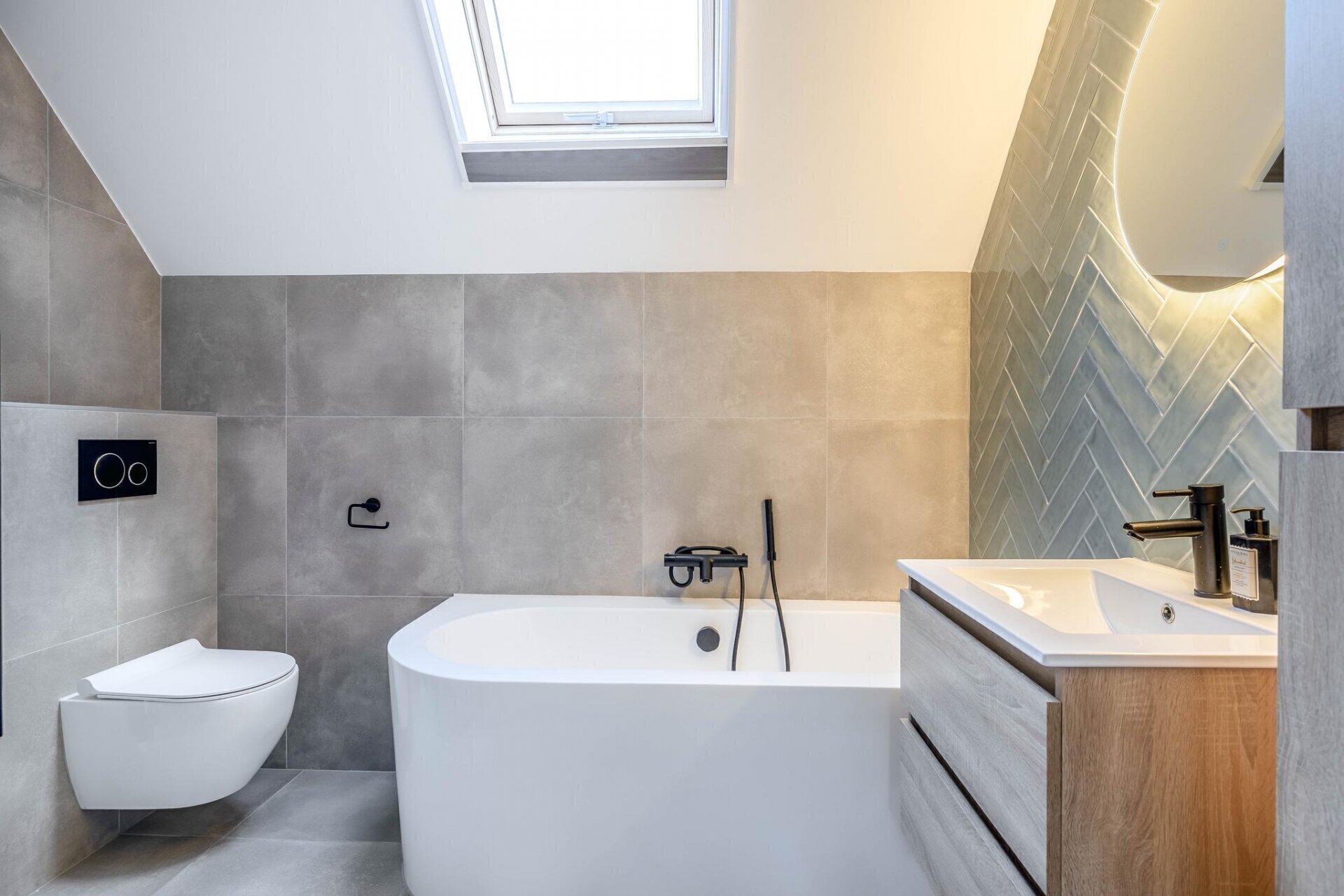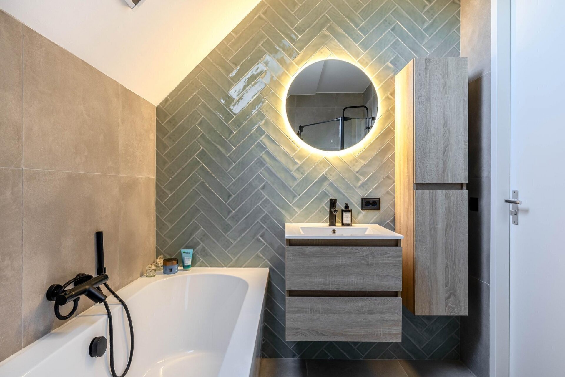 Vanuit de overloop is er toegang tot alle vertrekken op deze verdieping. De gehele verdieping is strak afgewerkt met gestucte wanden en mooie laminaatvloer. Aan de achterzijde van de woning bevinden zich de eerste twee slaapkamers welke beschikken over een grootte van ca. 14m2 en 8m2. Aan de voorzijde de derde slaapkamer met een grootte van respectievelijk 11m2 met daaraan grenzend de badkamer. Deze moderne badkamer is volledig betegeld en is voorzien van een tweede toilet, inloopdouche, wastafelmeubel en ligbad!