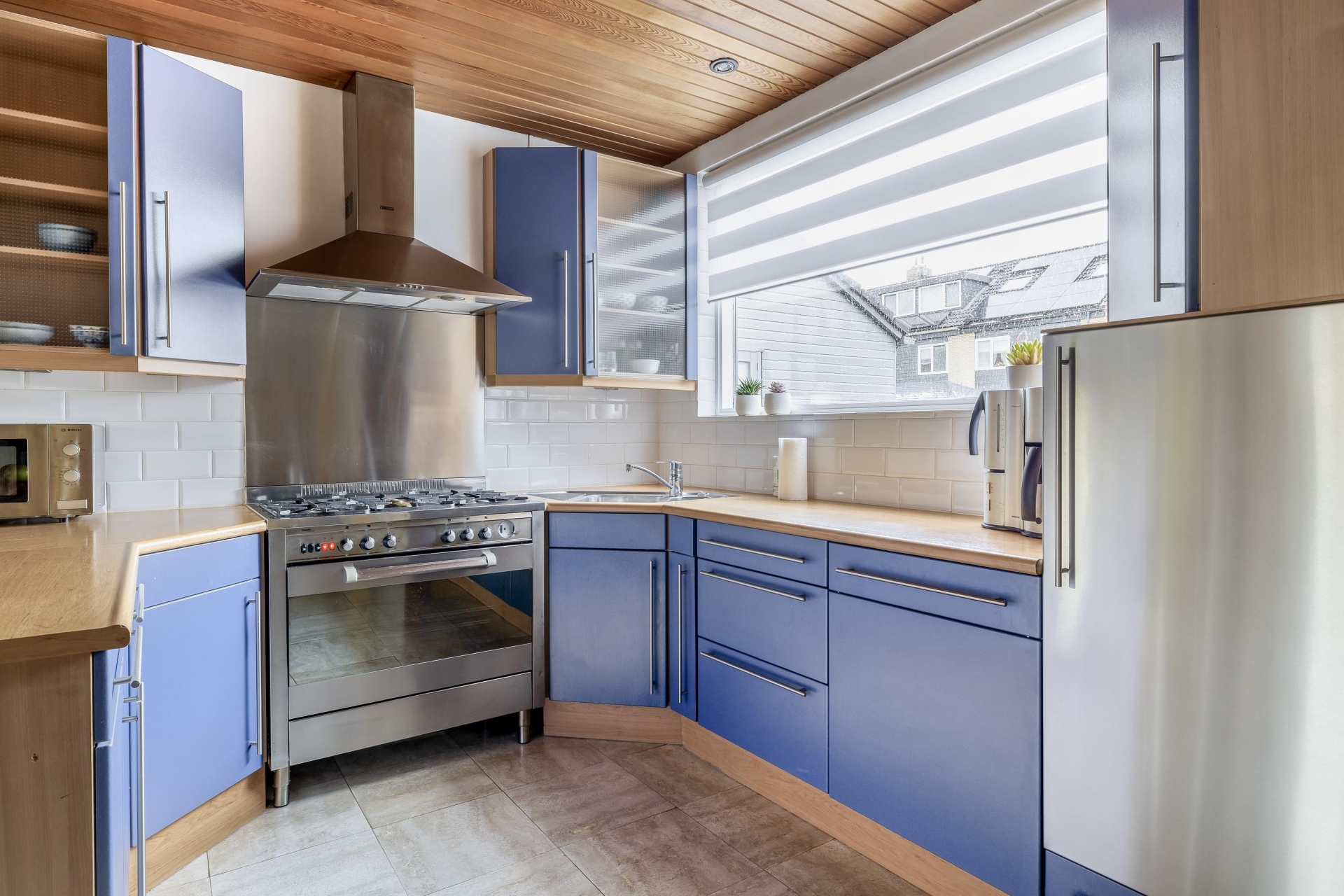 Met een woonoppervlakte van maar liefst 129 m² en drie (voorheen 4) slaapkamers is er ruimte genoeg voor het hele gezin. En er zijn, met name op de tweede verdieping nog volop uitbreidingsmogelijkheden voor wellicht toch nog een extra slaapkamer. De woonkamer is royaal en het gevoel van ruimte wordt versterkt door het plafond van Meranti hout. Speciaal geïmporteerd uit Canada om te kunnen werken met hele lengtes.