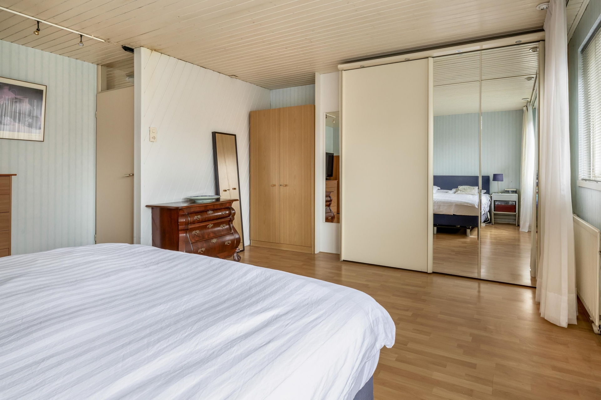 De masterbedroom aan de achterzijde bestond voorheen uit twee slaapkamers en deze situatie is eenvoudig weer terug te brengen.