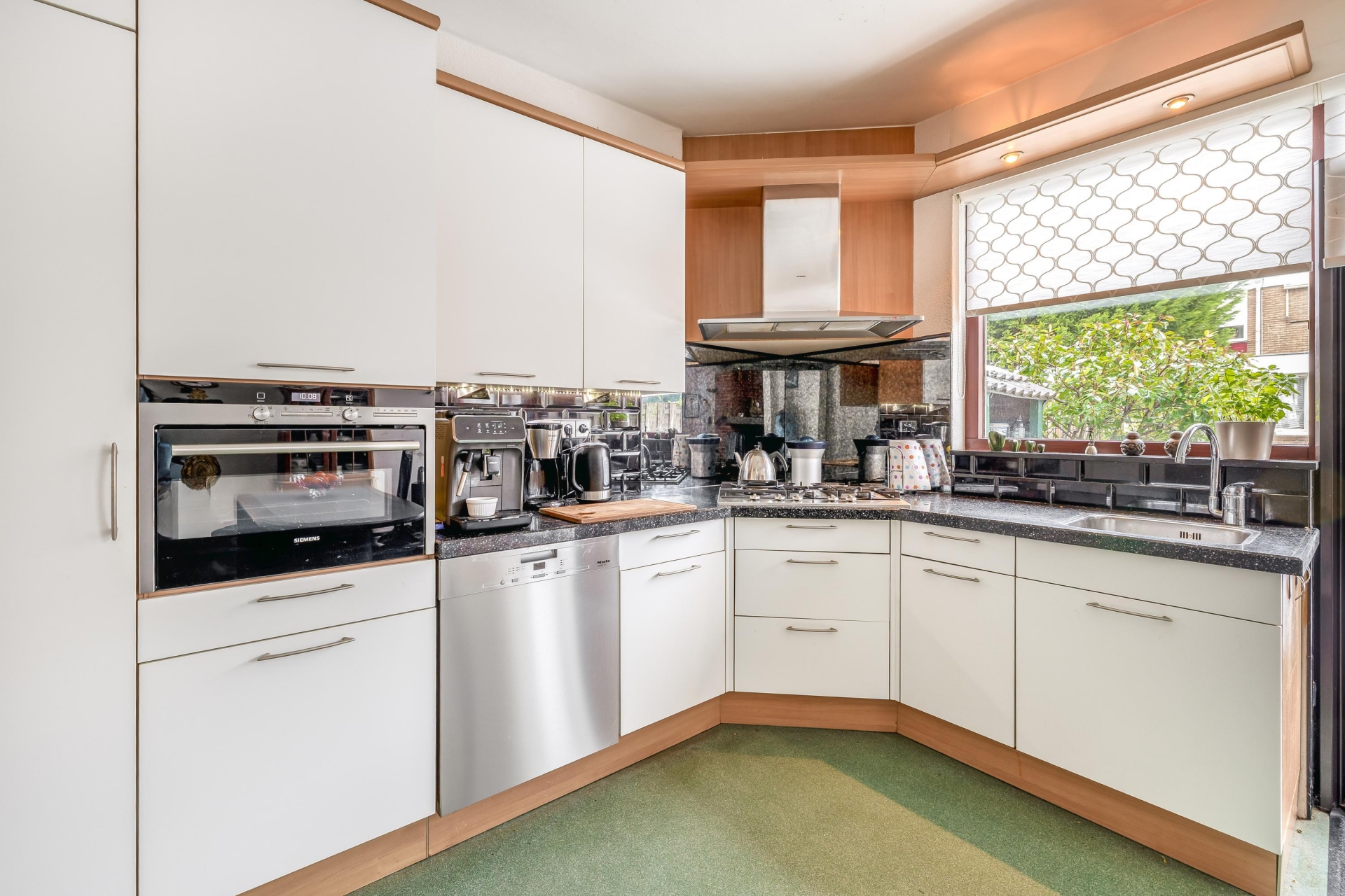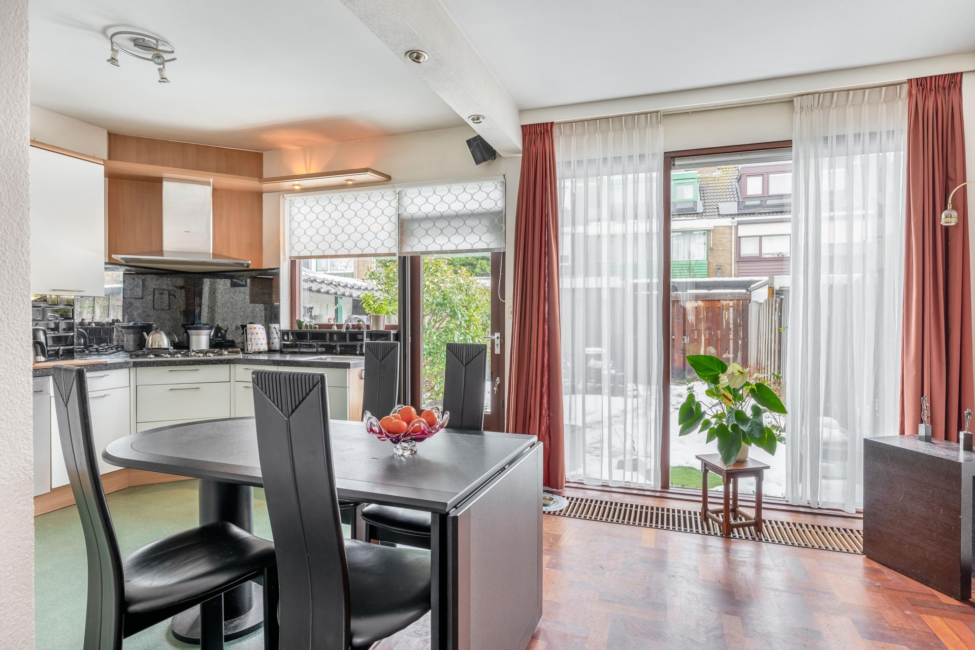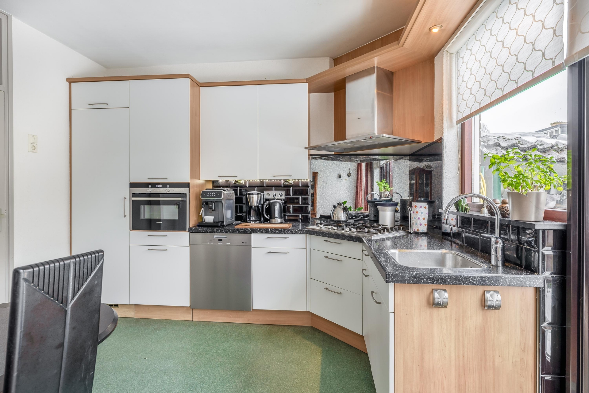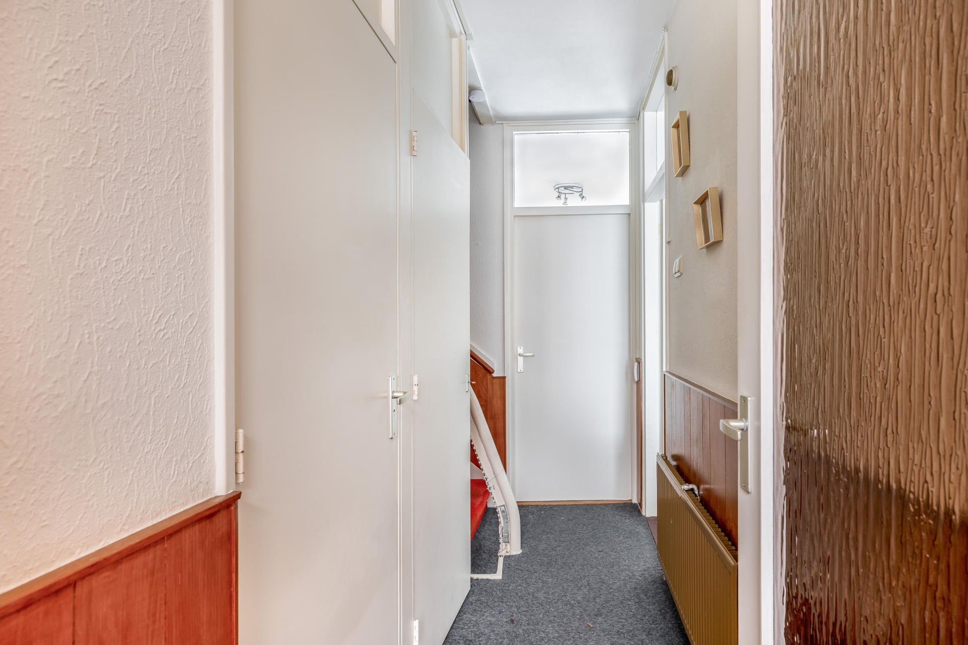 Via de voortuin toegang tot de woning. De hal met tochtportaal beschikt over een vernieuwde meterkast, toiletruimte met fonteintje en een trapkast. De lichte doorzonwoonkamer heeft een massieve parketvloer, gashaard en open keuken met een ruim keukenblok in L-opstelling. De keuken is voorzien van diverse inbouwapparatuur waaronder een koelkast, 5-pits kookplaat afzuigkap, (combi)oven, vatwasser en keukenboiler. Via de keuken is er toegang tot de fijne achtertuin, voorzien van een stenen berging uitgerust met elektra.