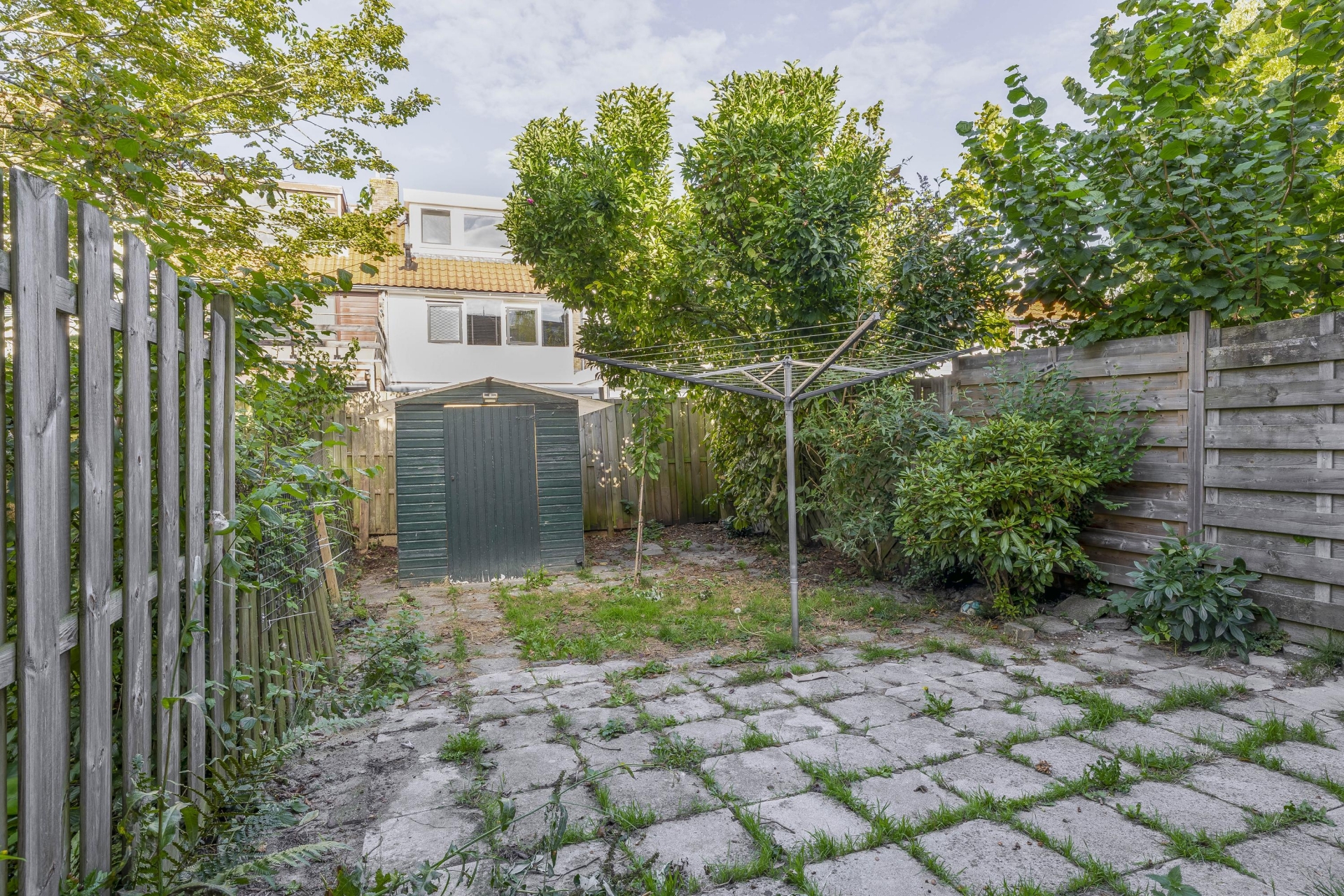 De achtertuin ligt op het noordwesten. Ondanks de ligging kun je hier – zeker in de middag en avond – prima van de zon genieten. De tuin biedt volop ruimte om naar eigen smaak in te richten, of je nu gaat voor onderhoudsarm, groen of juist kindvriendelijk.
