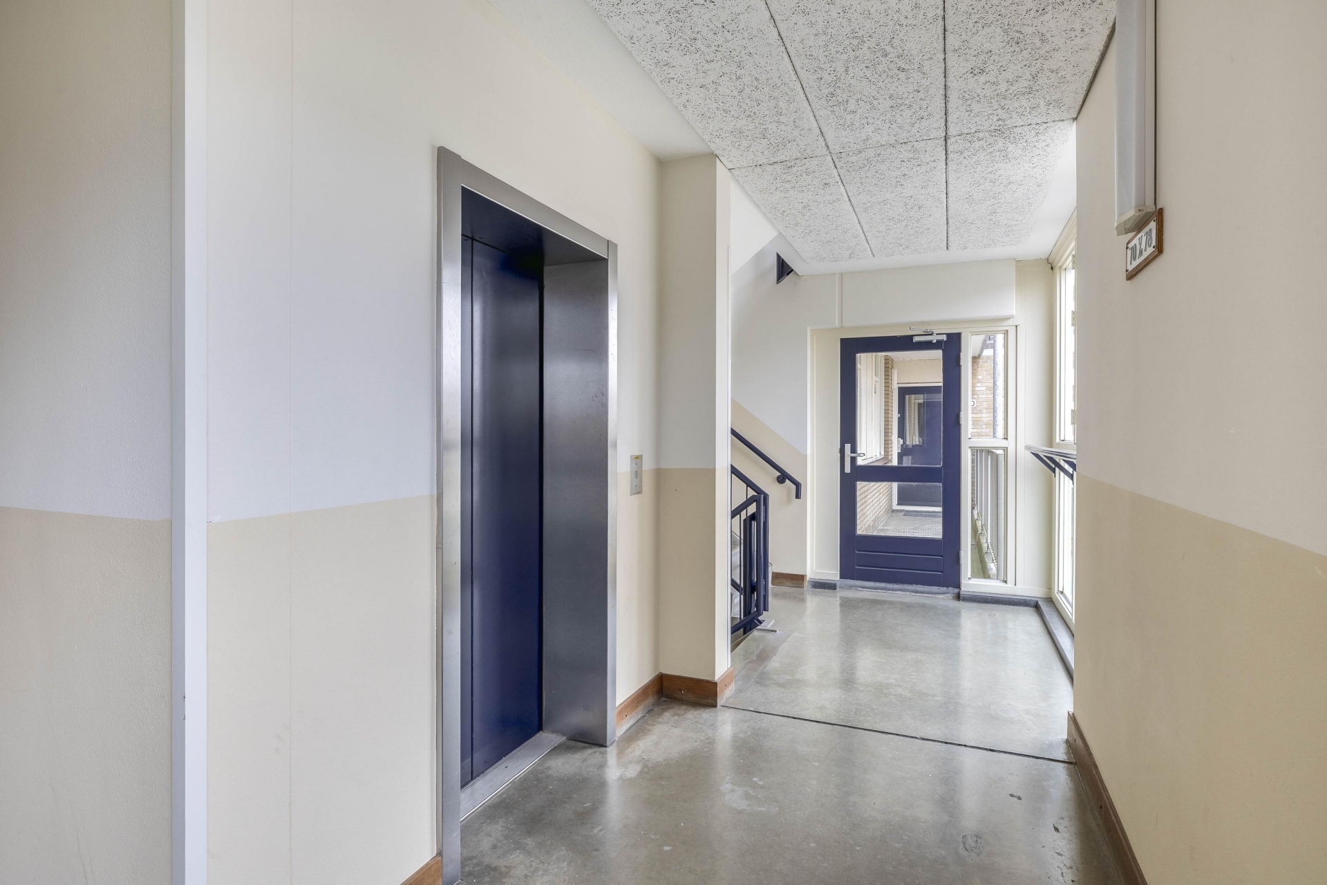 Afgesloten entree met bellentableau en brievenbussen. Vanuit hier heeft u toegang tot de bergingen, het trappenhuis en de lift.